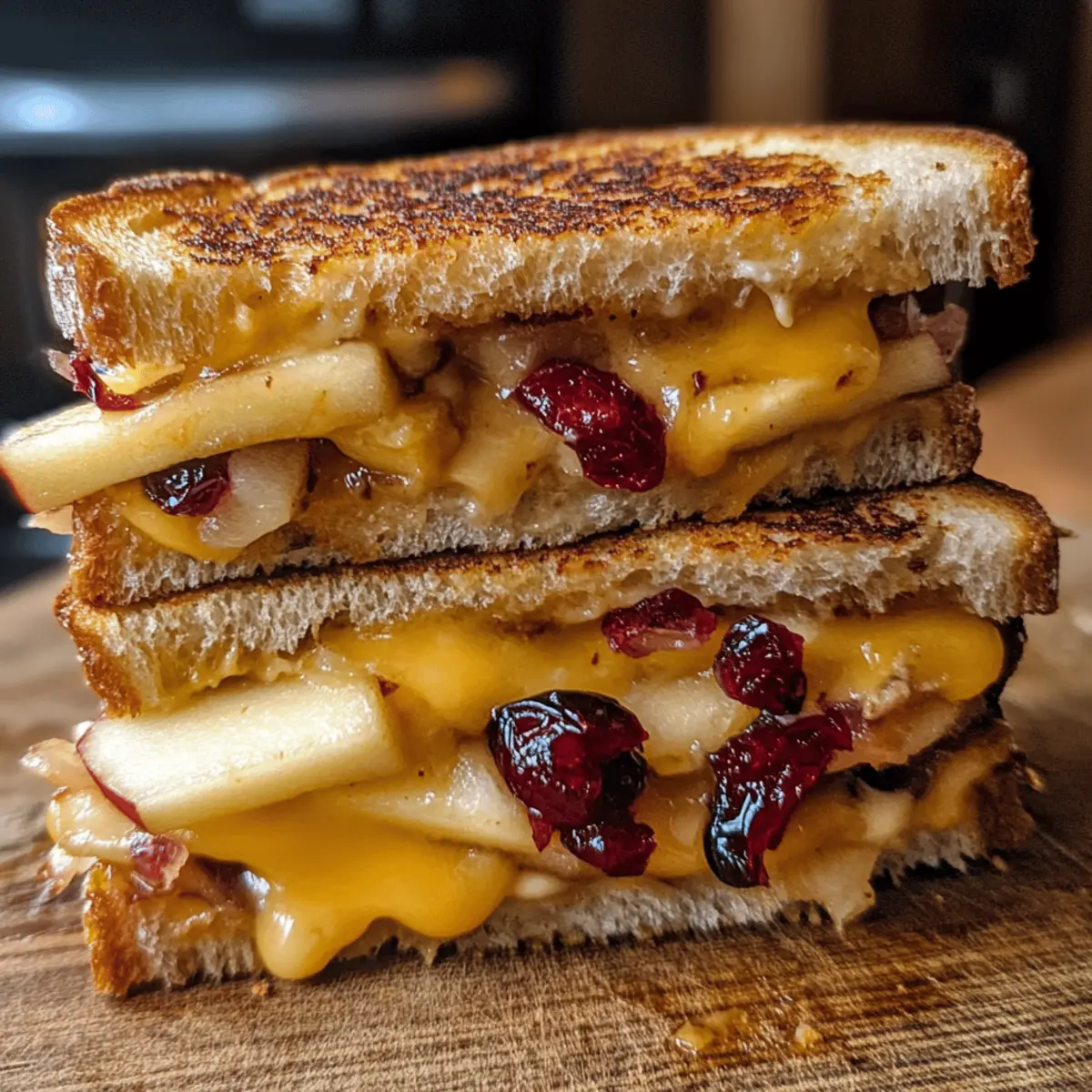 As I stood in my kitchen, the rich aroma of melted cheese mingled with the sweet, crisp notes of fresh apples, creating a moment of pure delight. My latest creation, the Apple and Cranberry Grilled Cheese, is not just a sandwich; it’s a transformative experience that brings together comforting and vibrant flavors. This recipe is a quick and easy way to elevate your lunch or impress guests at your next gathering. Plus, it’s customizable—perfect for any dietary preferences! With under 30 minutes of prep time, you can whip up this vegetarian delight filled with gooey sharp cheddar, tart cranberries, and crunchy apple slices. Are you ready to indulge in a twist on a classic comfort food that will leave everyone asking for seconds? Why Is This Grilled Cheese Special? Uniqueness: This Apple and Cranberry Grilled Cheese offers a delightful twist on a classic, blending sweet apples and tart cranberries with rich cheddar. Customizable: Easily adapt this recipe! Try different cheeses like brie or gouda, or swap in whole grain or gluten-free bread for your needs. Quick and Easy: Ready in under 30 minutes, it’s the perfect solution for busy weekdays or spontaneous gatherings. Comforting: The warm, melted cheese paired with fresh, crunchy ingredients creates a cozy bite that everyone will love, making it a hit at any table. Crowd-Pleaser: Whether served as a casual lunch or an elegant appetizer, it’s sure to impress your guests! Pair with a side salad for a complete meal or enjoy solo—your taste buds will thank you! Apple and Cranberry Grilled Cheese Ingredients For the Sandwich • Sourdough Bread – Provides a sturdy base for your grilled cheese; feel free to substitute with whole grain or gluten-free bread to suit dietary needs. • Sharp Cheddar Cheese – Offers that creamy, robust flavor; alternatively, use brie, gouda, or mozzarella for delicious variations. • Fresh Apples (Granny Smith) – Adds a crunchy sweetness; swap them out for other apple types or even pears for a unique twist. • Dried Cranberries – Brings tartness and a chewy texture; consider using cranberry sauce or fresh cranberries based on availability. • Unsalted Butter – Ensures a golden-brown and rich crust; for a dairy-free option, use vegan butter or non-stick cooking spray. • Optional Herbs (e.g., thyme) – Elevates flavor complexity; try adding cinnamon for warmth or walnuts for added crunch. Now you’re all set to create this delightful Apple and Cranberry Grilled Cheese that will transform your ordinary lunch into an extraordinary experience! Enjoy the journey from preparation to indulging in this comforting dish! Step‑by‑Step Instructions for Apple and Cranberry Grilled Cheese Step 1: Prepare Ingredients Start by thinly slicing your fresh apples and sharp cheddar cheese, aiming for about 1/8-inch thickness for the apples to ensure they soften nicely. If your dried cranberries seem a bit too firm, soak them in hot water for a few minutes to plump them up. Gather your sourdough bread, butter, and any optional herbs you may want to add for an extra flavor kick. Step 2: Butter Bread Generously spread unsalted butter on one side of each slice of sourdough bread, making sure to coat it evenly for the perfect golden crust. This will help achieve that irresistible crispy texture when the sandwich is grilled. Lay the breads buttered-side down on a clean cutting board or plate, ready for assembly. Step 3: Assemble Sandwich On the unbuttered side of one slice, layer a generous portion of sharp cheddar cheese, followed by the sliced apples and a sprinkle of dried cranberries. Adding another layer of cheese on top will ensure a gooey texture once melted. Finally, place the other slice of bread on top, buttered-side facing out, to create a tidy sandwich ready for cooking. Step 4: Cook Sandwich Heat a nonstick skillet over medium heat and place the assembled Apple and Cranberry Grilled Cheese in the pan. Cook for about 3-5 minutes until the bottom slice is golden brown and crisp—check regularly to avoid burning. You should start to smell the savory aroma of melting cheese mingled with the sweetness of the apples! Step 5: Finalize Cooking Carefully flip the sandwich over using a spatula, making sure to keep it intact. Lightly press down with the spatula as it cooks on the second side for an additional 3-4 minutes. You’re looking for both sides to be crispy and the cheese inside to be fully melted, which should be evident from the gooey texture peeking out. Step 6: Serve Once achieved, remove the sandwich from the skillet and allow it to sit for a minute. This rest period helps prevent any cheese spillage upon slicing. Cut the sandwich diagonally for a lovely presentation, and serve it alongside your favorite chips or a fresh salad to make a delightful meal out of this Apple and Cranberry Grilled Cheese! Make Ahead Options These Apple and Cranberry Grilled Cheese sandwiches are perfect for meal prep enthusiasts looking to save time on busy weeknights! You can slice the apples and cheese up to 24 hours in advance, storing them in an airtight container in the refrigerator to maintain their freshness and prevent browning. Additionally, you can assemble the sandwiches, wrap them tightly in plastic wrap, and refrigerate for up to 3 days. When you’re ready to cook, simply remove the wraps, heat them in a skillet over medium heat, and follow the usual cooking instructions, ensuring a golden-brown crust and perfectly melted cheese. This way, you’ll enjoy delicious, homemade comfort food with minimal effort! Expert Tips for Apple and Cranberry Grilled Cheese Cheese Quality Matters: Choose high-quality sharp cheddar for optimal flavor; it balances well with the apples and cranberries. Thin Apple Slices: Slice apples thinly to ensure they soften and meld nicely with the creamy cheese during cooking. Watch the Heat: Use medium heat to prevent burning the bread while ensuring the cheese melts evenly for a perfe
