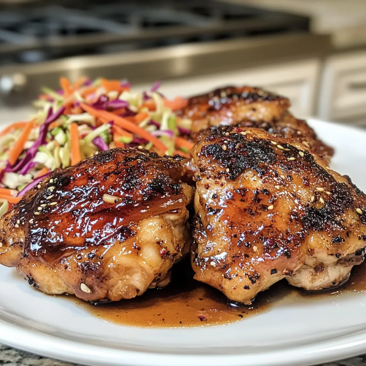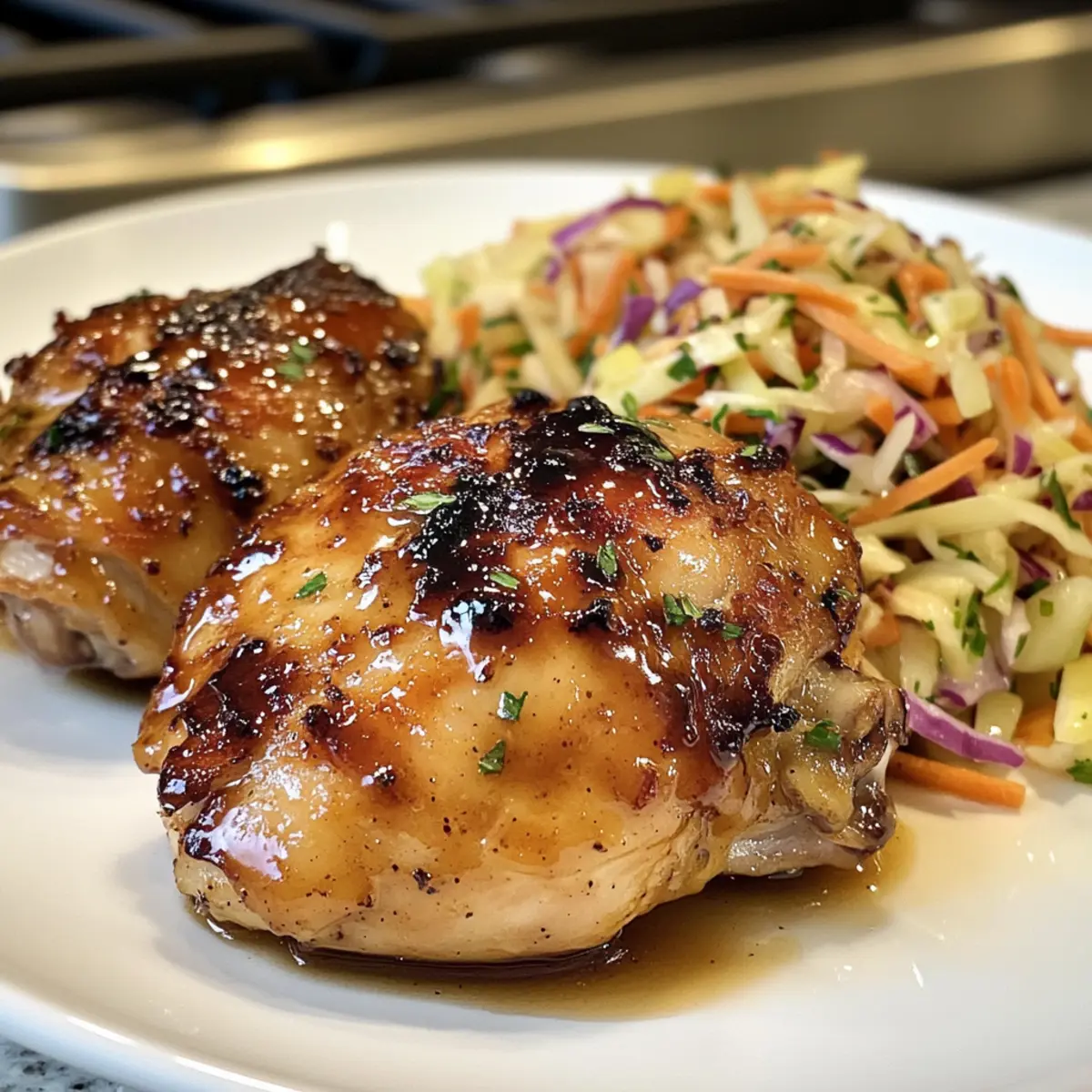 As the crisp autumn air weaves through the trees, the unmistakable scent of apple cider wafts from my kitchen, instantly transporting me to cozy family gatherings of years past. Sticky Apple Cider Chicken with Crisp Autumn Slaw shines as a perfect reflection of fall’s bounty. This delightful dish not only satisfies cravings for comfort food but also boasts the added perk of being gluten-free, making it accessible for all. With juicy, caramelized chicken enveloped in a rich glaze that dances between sweet and tangy, paired with a refreshing slaw bursting with crunch, it’s a meal that promises to inspire your home-cooking spirit. Wondering how you can personalize this dish to fit your taste? Let’s dive in! Why Does This Recipe Shine? Savor the flavors of autumn with this Sticky Apple Cider Chicken, a dish that truly brings the season to your table. Customize easily with flexible ingredients—swap chicken parts or get creative with slaw components to suit your style. Healthful and gluten-free, this meal is perfect for everyone at your gathering. Time-saving preparation ensures you can whip up a cozy dinner without stress. Textural delight comes from the tender chicken glazed to perfection paired with a crisp, refreshing slaw, creating a satisfying balance. Indulge in the goodness of fall-inspired meals that effortlessly transition from weekday dinners to festive feasts! For more satisfying chicken options, check out my Hot Orange Chicken and Cheesy Garlic Chicken. Apple Cider Chicken Ingredients For the Chicken • Apple Cider – Provides sweetness and acidity; essential for the glaze. Substitute with apple juice for a milder flavor. • Honey – Adds extra sweetness and helps achieve that sticky glaze; can be replaced with maple syrup for a unique twist. • Dijon Mustard – Contributes tanginess and depth to the glaze; yellow mustard can be a milder alternative. • Minced Garlic – Enhances the flavor complexity; fresh minced ginger can be used for a different aromatic note. • Chicken Thighs – Juicy and flavorful, they’re vital for this dish; you can opt for chicken breasts if you prefer a leaner protein. • Salt & Pepper – Essential for boosting flavor; adjust to your personal taste. For the Slaw • Cabbage (shredded) – The base of your slaw, adding crunch; feel free to use green or purple cabbage based on your preference. • Carrots – Provide sweetness and vibrant color to the slaw; sliced radishes can be swapped in for a pepperier bite. • Apples (thinly sliced) – Add a sweet and crisp element; pears can also work in this dish for a delightful change. • Apple Cider Vinegar – Infuses acidity into the slaw dressing; white vinegar or lemon juice can serve as substitutes. • Celery Seeds – Contribute a crunchy texture and distinctive flavor; you can omit if they’re not on hand. • Fresh Herbs (Parsley/Chives) – Introduce brightness and freshness; other herbs like cilantro could make a nice alternative. This scrumptious Apple Cider Chicken with Crisp Autumn Slaw shines brightly at any table, delivering warmth and joy. Happy cooking! Step‑by‑Step Instructions for Apple Cider Chicken with Crisp Autumn Slaw Shines Step 1: Make the Glaze In a small saucepan, combine apple cider, honey, Dijon mustard, and minced garlic. Heat over medium heat, stirring occasionally for about 10 minutes until the mixture thickens and coats the back of a spoon. This rich glaze will add a sweet and tangy layer of flavor to your Apple Cider Chicken. Step 2: Cook the Chicken Meanwhile, heat a tablespoon of oil in a large skillet over medium-high heat. Season the chicken thighs generously with salt and pepper before placing them skin-side down in the hot skillet. Allow them to sear for about 6-8 minutes until golden brown, then carefully flip and cook for an additional 5 minutes until nearly cooked through. Step 3: Coat Chicken Once the chicken is nearly done, pour the prepared apple cider glaze over the tops, ensuring each piece is well-coated. Reduce the heat to medium-low and let the chicken simmer in the glaze for another 5-7 minutes. This will help the glaze caramelize and create a sticky, mouthwatering finish on your chicken. Step 4: Prepare the Slaw In a large bowl, combine shredded cabbage, grated carrots, and thinly sliced apples. In a separate small bowl, whisk together apple cider vinegar, salt, pepper, and celery seeds to create a bright dressing. Pour the dressing over the slaw mixture, tossing gently to combine before adding fresh herbs for an extra pop of flavor and color. Step 5: Serve Plate the sticky Apple Cider Chicken alongside the crisp autumn slaw, allowing the contrasting textures and flavors to shine. You can either layer the slaw under the chicken or serve it in a separate bowl for a delightful meal that perfectly showcases the essence of fall. How to Store and Freeze Apple Cider Chicken Fridge: Store leftovers in an airtight container for up to 3 days. Keep the chicken and slaw separate to maintain freshness and texture. Freezer: The sticky Apple Cider Chicken freezes well without the slaw, allowing for easy meals later. Wrap tightly in plastic wrap or use freezer bags for up to 2 months. Reheating: To reheat, thaw in the fridge overnight, then warm in a skillet over medium heat until heated through. Add a splash of apple cider for moisture if needed. Serving Freshness: For best texture and flavor, consume slaw fresh; dress it right before serving to avoid wilting. Expert Tips for Apple Cider Chicken Glaze Thickness: Ensure the glaze thickens sufficiently to coat the chicken well; too thin will lead to a mess on your plate. Marination Magic: For deeper flavor, marinate the chicken in part of the glaze for at least 30 minutes before cooking. Skillet Choice: Use a cast-iron skillet for better caramelization—this helps achieve that irresistible crispy exterior on the chicken. Keep Slaw Crisp: Dress the slaw right before serving to maintain its crunc