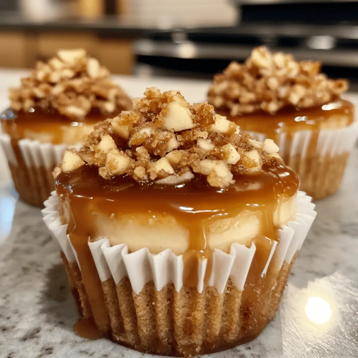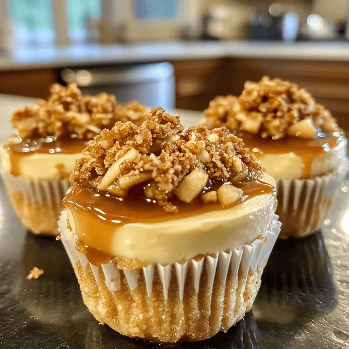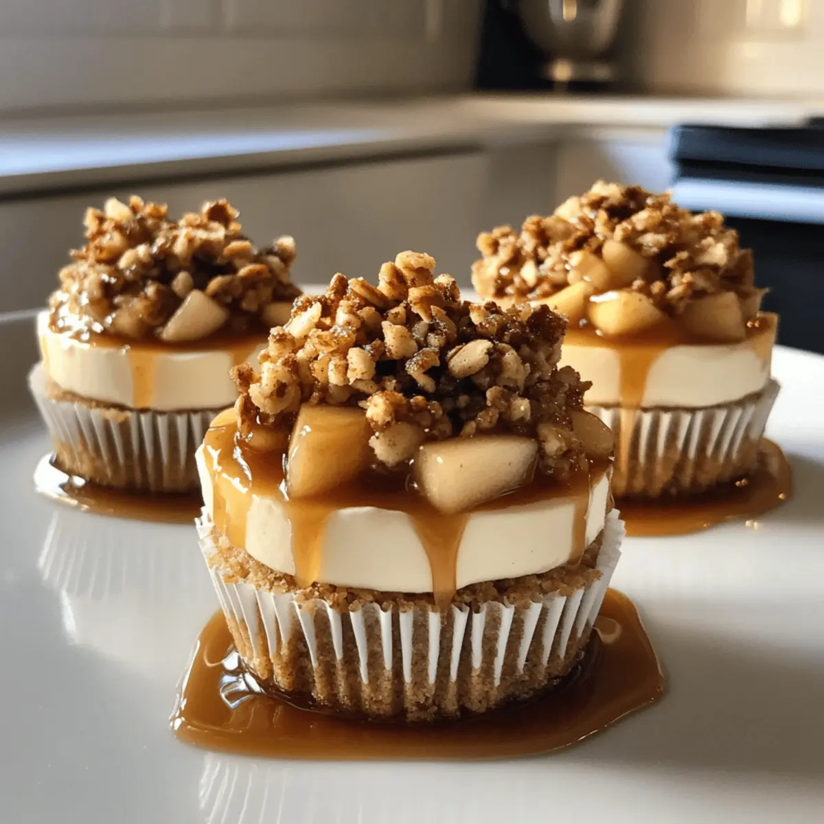 As I was cozying up in my kitchen, the scent of cinnamon wafted through the air, transporting me to those brisk fall afternoons when apple orchards brim with ripe fruit. That’s when I decided to whip up these delightful Apple Crisp Mini Cheesecakes. Combining the creamy charm of cheesecake with the warm, spiced goodness of apple crisp, they’re the perfect bite-sized fall dessert, whether you’re hosting friends or indulging in a sweet moment just for yourself. With an easy prep and a comforting crunch, this recipe is sure to become a seasonal favorite in your home. Ready to savor an autumn-inspired treat that captures the essence of the season? Let’s dive in! Why Are These Mini Cheesecakes Irresistible? Deliciously Unique: The Apple Crisp Mini Cheesecakes bring together two beloved desserts into one unforgettable bite-sized treat! Autumn Flavors Galore: Enjoy the warm embrace of cinnamon and spices, perfectly complementing creamy cheesecake and sweet apples for a delightful fall experience. Versatile Treat: Whether served warm or cold, these cheesecakes are equally perfect for parties or cozy evenings at home. Simple Prep: With straightforward ingredients and a quick assembly process, you’ll have these sweet delights ready in no time. If you’re a fan of easy recipes, check out my Mini Rolo Cheesecakes for another crowd-pleaser! Crowd Favorite: Every bite is a textural delight, combining a smooth, rich filling with a crunchy topping that appeals to everyone. Get ready to impress your guests and satisfy those sweet cravings with these cozy fall bites! Apple Crisp Mini Cheesecakes Ingredients For the Crust Graham Cracker Crumbs – Provides a sweet and crumbly base; try using digestive biscuits if you’re out of graham crackers. Sugar – Acts as a sweetener for the crust; using brown sugar will enhance the flavor richness. Cinnamon – Adds warmth to the crust; you can swap it with pumpkin pie spice for a fun twist. Unsalted Butter – Binds together the crust ingredients; coconut oil works as a dairy-free alternative. For the Topping All-Purpose Flour – Used for structure in both the crumb topping and cheesecake filling; gluten-free flour can be an excellent substitute. Light Brown Sugar – Adds sweetness and moisture to the topping; feel free to use white sugar, although it may change the flavor slightly. Quick-Cooking Oats – Creates crunchiness in the topping; substitute with rolled oats if you have them. Nutmeg – Enhances the apple filling’s flavor; omit or swap for cardamom if desired. For the Filling Fresh Apples – Gives tartness and sweetness; Granny Smith apples are ideal for this apple crisp mini cheesecakes recipe. Lemon Juice – Prevents browning of apples; you can leave it out if you don’t have any on hand. Cornstarch – Thicken the apple filling; you can use tapioca starch or arrowroot powder instead. Cream Cheese – Forms the creamy filling; try vegan cream cheese for a dairy-free option. Vanilla Extract – Infuses flavor into the cheesecake filling; almond extract can offer a unique twist. Egg – Provides structure to the cheesecake; for a vegan version, a flaxseed or chia seed mixture works well. For Serving Caramel Sauce – Enhances flavor with its sweetness; chocolate sauce is a delightful substitute if you want to switch things up. Now you’re all set to gather your ingredients and create these delectable Apple Crisp Mini Cheesecakes that will warm your heart this fall! Step‑by‑Step Instructions for Apple Crisp Mini Cheesecakes Step 1: Prepare the Pan & Oven Begin by lining a cupcake pan with cupcake liners to ensure easy removal of your mini cheesecakes. Preheat your oven to 325°F (163°C) to create the perfect baking environment. Visualize a warm and inviting atmosphere as the oven heats up, anticipating the delightful smell of autumn spices soon to fill your kitchen. Step 2: Make the Crust In a mixing bowl, combine graham cracker crumbs, sugar, and cinnamon until evenly blended. Melt your unsalted butter and pour it into the mixture, stirring until the crumbs are well-coated. Press this crumb mixture firmly into the lined cupcake cups, creating a solid base for your apple crisp mini cheesecakes. Chill the crusts in the refrigerator for about 10 minutes to firm up. Step 3: Prepare Crumb Topping Combine the flour, light brown sugar, quick-cooking oats, cinnamon, and nutmeg in a separate bowl. Pour in melted butter, mixing until the mixture resembles coarse crumbs. This delightful topping will add the perfect crunch to your cheesecakes. Let the crumb topping chill in the fridge for another 10 minutes, allowing it to become perfectly crispy when baked. Step 4: Make Cheesecake Filling In a large mixing bowl, beat the cream cheese until smooth and creamy, ensuring there are no lumps. Gradually add in sugar, vanilla extract, and flour, mixing thoroughly for a velvety texture. Finally, add an egg and mix until just combined, which will provide structure to your apple crisp mini cheesecakes. Set this mixture aside while you prepare the apple filling. Step 5: Prepare Apple Filling Chop your fresh apples into small, bite-sized pieces and toss them in a bowl with lemon juice, brown sugar, cornstarch, and nutmeg. This mixture will create a sweet and spiced apple filling that complements your cheesecake beautifully. The combination of textures and flavors ensures each bite of the apple crisp mini cheesecakes is a delightful experience. Step 6: Assemble Remove the chilled crusts from the refrigerator and spoon the cheesecake filling evenly into each crust, filling them about three-quarters full. Next, layer the apple filling on top, ensuring a generous amount covers each mini cheesecake. Finally, sprinkle the chilled crumb topping over the apples, creating a comforting crunch that will bake to perfection. Step 7: Bake Carefully place the cupcake pan in your preheated oven, baking for 28-30 minutes. You’ll know they are done when the cheesecakes
