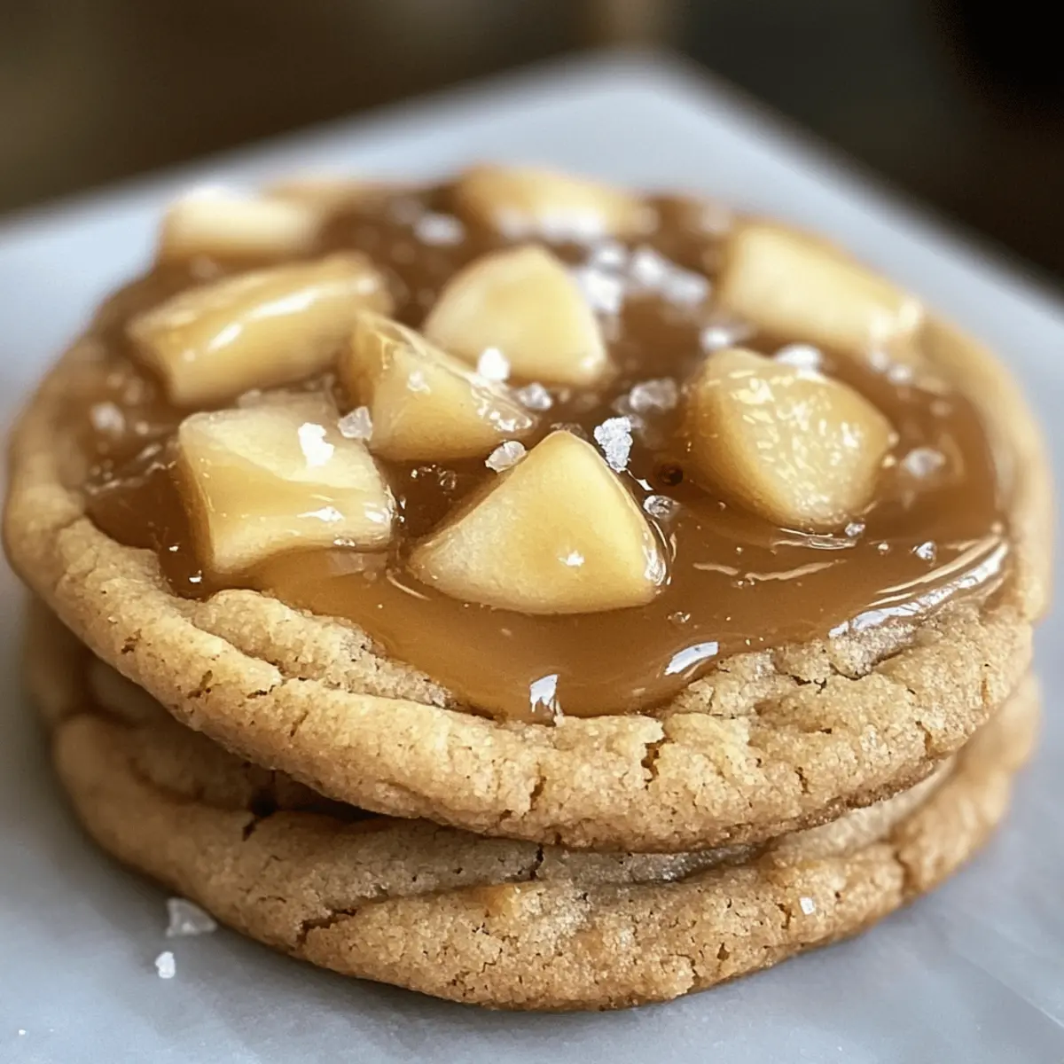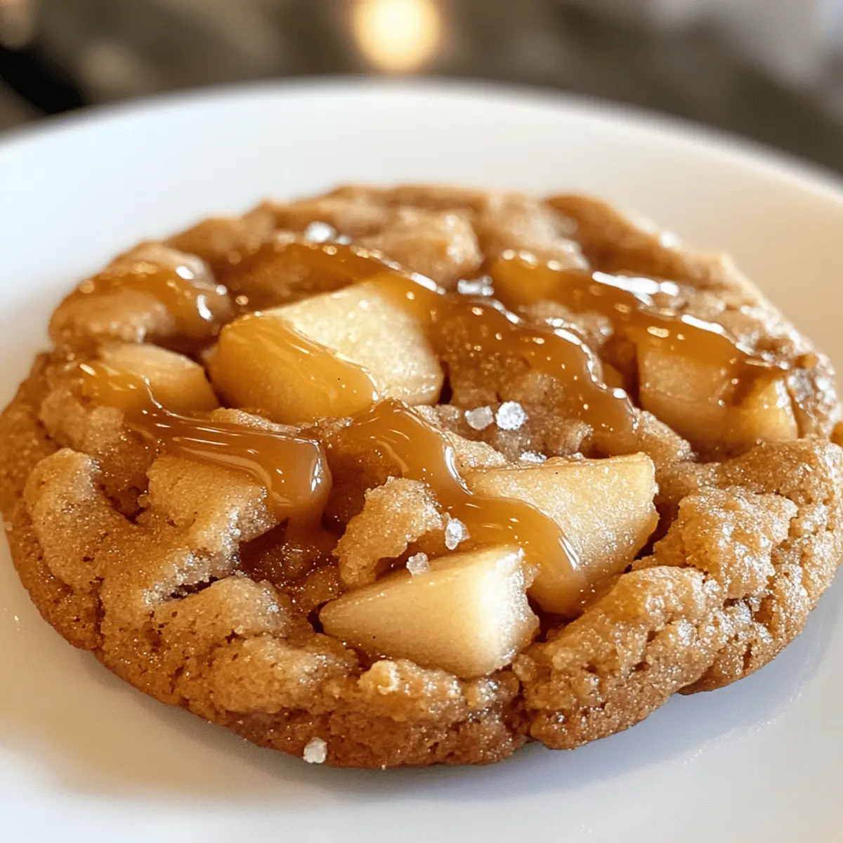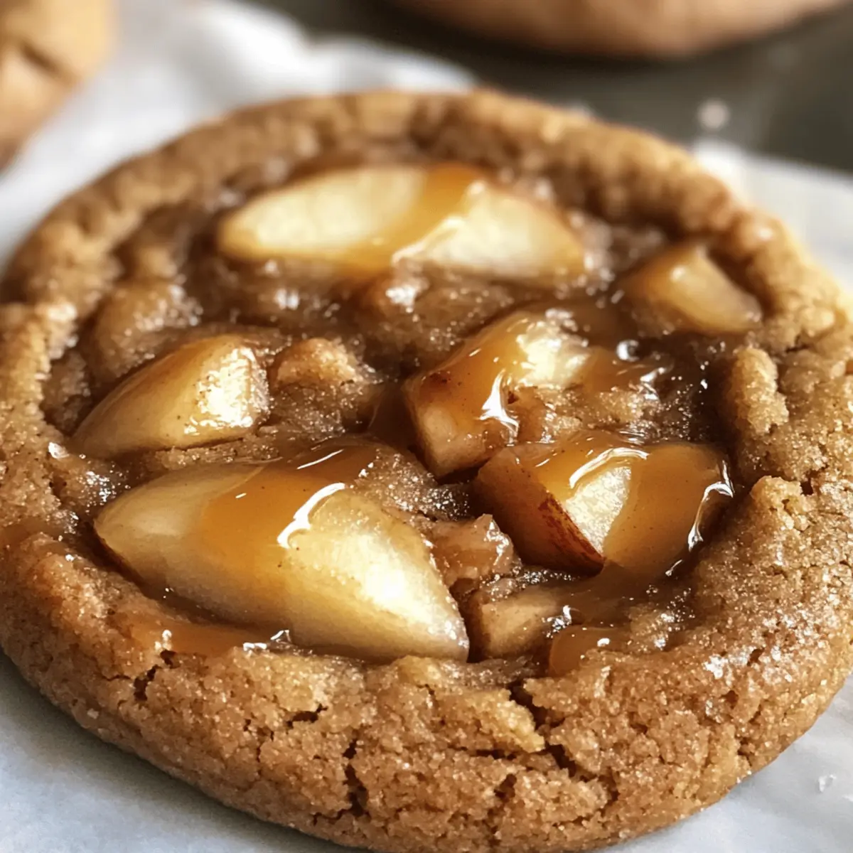 The aroma of brown butter wafting through the kitchen is one of those sensory moments that can make any fall day feel special. When I whip up these Brown Butter Apple Pie Cookies, it evokes not just the cozy essence of autumn, but a delightful nostalgia wrapped in a chewy, flavorful treat. These cookies beautifully blend the comforting flavors of traditional apple pie—think tender cinnamon-kissed apples—into a soft, indulgent cookie that’s incredibly easy to make. The bonus? They’re quick to whip up on a busy day and make for a perfect dessert to impress your friends at gatherings or simply to savor with a warm cup of tea. Ready to bake cookies that bridge the gap between a classic pie and your afternoon snack? Let’s dive in! Why are these Apple Pie Cookies irresistible? Indulgent Flavor: With nutty brown butter and cinnamon-kissed apples, these cookies offer a rich, autumn-inspired taste that’s hard to resist. Quick & Easy: They come together quickly, making them perfect for busy days when you need a comforting treat without a lot of fuss. Crowd-Pleasing Delight: Whether at a fall gathering or cozy night in, these cookies are sure to impress family and friends, much like my popular Bakery Style Cookies. Versatile Twist: Feel free to swap apples for pears or even try adding a dash of ground ginger for a unique spin on flavor! Perfectly Cozy: Serve them warm with a scoop of ice cream for an irresistible dessert that captures autumn’s essence beautifully. Enjoy the season with these unforgettable bites! Apple Pie Cookies Ingredients • Get ready to create a warm and cozy treat! For the Cookie Base Unsalted Butter – Adds a rich and nutty flavor essential for the brown butter. Granulated Sugar – Provides sweetness and helps achieve a delightful crispy exterior. Brown Sugar – Brings moisture and chewiness, enhancing the overall flavor profile. Eggs – Binds the ingredients and adds important moisture for that perfect chewy texture. Vanilla Extract – Elevates the overall sweetness and flavor of the cookies. All-Purpose Flour – Ensures the structure, giving the cookies their delightful thickness. Baking Powder – Acts as a leavening agent, resulting in a light and airy texture. Cornstarch – Provides that melt-in-your-mouth quality for a softer cookie. For the Flavoring Pumpkin Pie Spice – Infuses the cookies with those warm, cozy fall flavors that are so irresistible. Salt – Balances sweetness and enhances the flavor, especially paired with the salted caramel topping. Cinnamon – Essential for both cookie and filling, amplifying that cozy, autumnal essence. For the Apple Filling Apples – The star of the show! Provides natural sweetness; Honeycrisp or Granny Smith work best for balance. For the Topping Salted Caramel Sauce – Adds a decadently sweet and salty finish, making these apple pie cookies utterly indulgent. Drizzle generously for the best effect. Unleash the delight of these apple pie cookies and watch as everyone falls in love with their cozy flavors! Step‑by‑Step Instructions for Apple Pie Cookies Step 1: Prepare Ingredients Start by measuring all your ingredients accurately to ensure perfect Apple Pie Cookies. Dice the apples into small, uniform pieces, ideally about 1/4 inch, so they distribute evenly throughout the dough. This will create delightful bites of fruit in every cookie! Step 2: Brown the Butter In a medium saucepan, add the unsalted butter and melt it over medium heat. Stir continuously until the butter turns a golden brown and develops a nutty aroma, which typically takes around 4-5 minutes. Once browned, remove it from the heat and let it cool slightly before using; this will enhance the flavors of your cookies. Step 3: Mix Dry Ingredients While the butter cools, whisk together the all-purpose flour, baking powder, cornstarch, pumpkin pie spice, and salt in a large mixing bowl. Make sure the dry ingredients are well combined to ensure even distribution of flavor and texture in your delicious Apple Pie Cookies. Step 4: Combine Wet Ingredients In a stand mixer, beat the cooled brown butter, granulated sugar, and brown sugar together until smooth and creamy, about 2-3 minutes. Then, add the eggs and vanilla extract, mixing until everything is well combined and the mixture is light in color; this will create a luscious base for your cookies. Step 5: Incorporate Dry Ingredients Gradually add the dry mixture into the wet ingredients, mixing on low speed until just combined. Be careful not to overmix; the goal is a cohesive dough that maintains a soft consistency. This is where the character of your Apple Pie Cookies starts to take shape! Step 6: Add Apples Using a spatula, gently fold in the diced apples until they are evenly distributed throughout the dough. This step brings in the fresh, fruity flavor that mimics traditional apple pie, enhancing the overall texture and taste of your cookies. Step 7: Chill Dough Cover the mixing bowl with plastic wrap and refrigerate the dough for at least 30 minutes. Chilling allows the flavors to meld and the dough to firm up, which helps prevent spreading during baking and promotes a chewy texture in your Apple Pie Cookies. Step 8: Preheat Oven While the dough chills, preheat your oven to 350°F (175°C). Line a baking sheet with parchment paper to prevent sticking and ensure easy cleanup. This step is crucial to ensure your cookies bake evenly and develop that golden edge. Step 9: Scoop Cookies Once chilled, use a cookie scoop to portion out balls of dough onto the prepared baking sheet. Space them about 2 inches apart to allow for spreading. Aim for a height of about 1 inch for each cookie, ensuring they’ll turn out soft and thick. Step 10: Bake Bake the cookies in the preheated oven for 10-12 minutes, or until the edges are golden but the centers look slightly underbaked. This will result in a soft, chewy texture that is characteristic of these delightful Apple Pie Cookies. Step 11: Cool and 