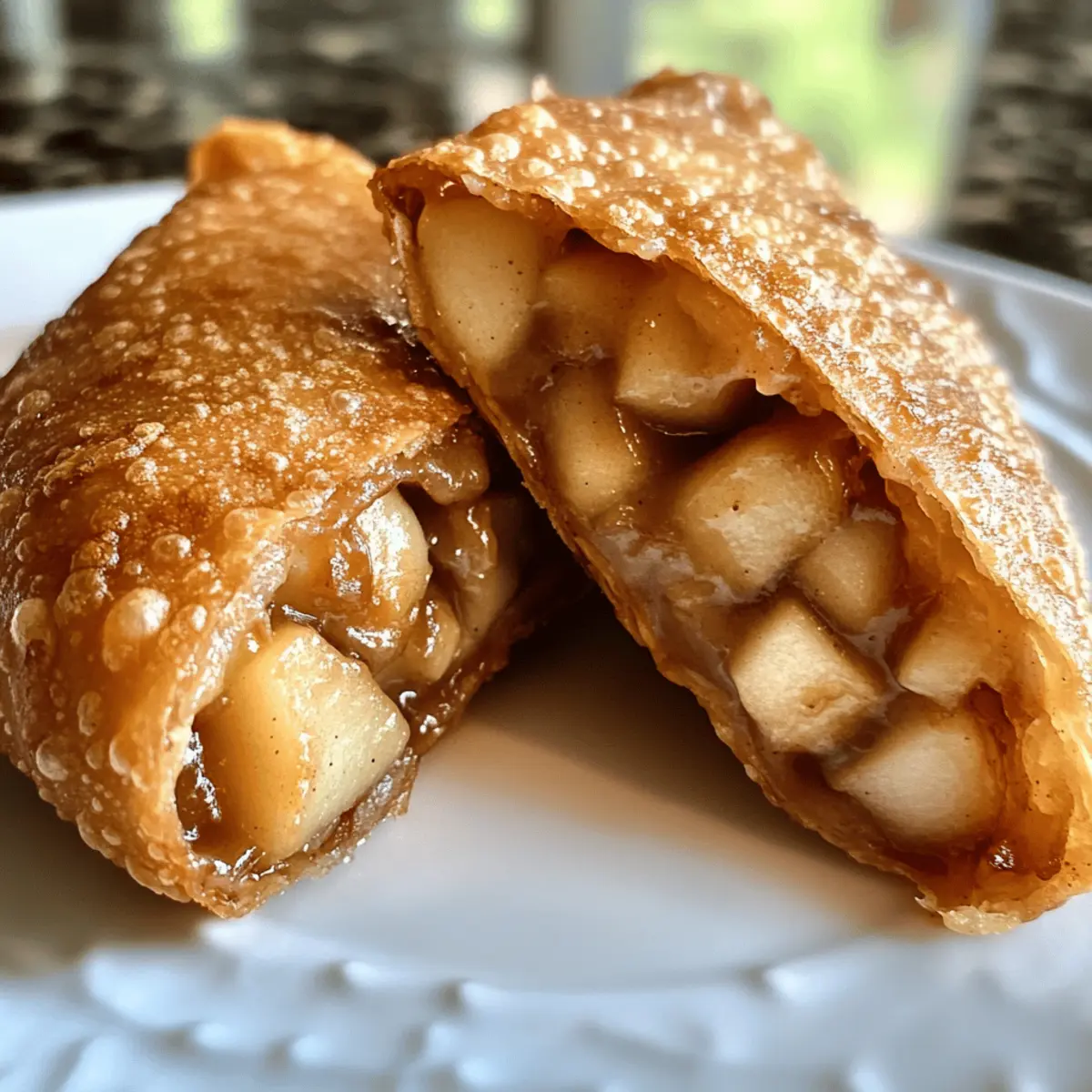 The aroma of cinnamon and warm apples wafts through the kitchen as I fry up these delightful Apple Pie Egg Rolls. It’s a cozy reminder of autumn evenings spent indulging in sweet treats, but with a fun, modern twist. These crispy, golden bites are not only incredibly quick to whip up—ready in under 30 minutes—but they also make a perfect handheld dessert for any gathering. Imagine sinking your teeth into that crunchy shell, only to discover a warm, gooey apple pie filling inside, maybe drizzled with caramel for that extra touch of sweetness. Whether you’re hosting friends or just treating yourself, these egg rolls are a sure-fire crowd-pleaser that can be customized to suit your cravings. Want to spice them up a bit? Let’s get started and see how these tasty morsels can elevate your dessert game! What Makes These Egg Rolls Special? Quick Preparation: In under 30 minutes, you can whip up these delightful treats that are perfect for last-minute dessert cravings. Crispy Delight: The combination of a golden, crispy shell and a gooey apple filling creates an irresistible texture that will have everyone reaching for seconds. Versatile Flavors: While I love the classic apple filling, feel free to get adventurous by swapping in cherry or blueberry for a different twist! Crowd-Pleasing: These Apple Pie Egg Rolls are an impressive treat for gatherings, sure to impress friends and family alike. Pair them with a scoop of vanilla ice cream for an unforgettable dessert experience, just like you’d enjoy with our Hawaiian Pineapple Carrot cake! Effortless Fun: They are great for parties and easy to customize, inviting creativity in both flavor and presentation. Apple Pie Egg Rolls Ingredients For the Egg Rolls: • Egg Roll Wrappers – These provide a crispy exterior; you can substitute with wonton wrappers if desired. • Canned Apple Pie Filling – This is the star for your filling, adding sweetness and flavor; homemade filling can enhance freshness. • Vegetable Oil – Essential for frying, ensuring those egg rolls get nice and crispy; make sure it’s hot before adding the rolls. For the Filling: • Brown Sugar – Adds a caramelized sweetness to the filling; feel free to adjust to suit your taste! • Ground Cinnamon – This spice infuses warmth into the filling; increase the amount for a more pronounced flavor. Optional Toppings: • Walnuts – Adding crunch and flavor; can be omitted or replaced with your preferred nut. • Caramel Sauce – For drizzling over the egg rolls, adding sweetness and a touch of elegance—perfect for your Apple Pie Egg Rolls! Step‑by‑Step Instructions for Apple Pie Egg Rolls Step 1: Prepare the Filling Start by heating a skillet over medium heat. In a mixing bowl, combine canned apple pie filling with brown sugar and ground cinnamon, stirring well to mix the flavors. Allow this delicious blend to sit for about 5 minutes, letting the spices infuse while you prepare your egg roll wrappers. Step 2: Assemble the Egg Rolls Lay out your egg roll wrappers on a clean surface, with a corner pointing towards you. Spoon about 2 tablespoons of the prepared apple pie filling onto the center of each wrapper. Top it with a sprinkle of the streusel topping mixture for added texture and sweetness. Make sure not to overfill; this will keep them sealed properly. Step 3: Seal the Egg Rolls Melt some butter and brush it along the edges of each wrapper to help seal them together. Fold the corners in towards the center and roll tightly from the bottom, ensuring the filling is secure inside. Press the edges firmly to remove any air, making sure they are well-sealed to prevent any leaks while frying. Step 4: Heat the Oil In a deep skillet, heat about 2 inches of vegetable oil over medium-high heat. To check if the oil is ready, drop in a small piece of leftover wrapper; it should sizzle immediately. The ideal frying temperature is around 350°F (175°C), which will create that perfect golden-brown crust on your Apple Pie Egg Rolls. Step 5: Fry the Egg Rolls Carefully lower each egg roll into the hot oil, allowing only a few at a time to prevent overcrowding. Fry for about 3-4 minutes, turning occasionally, until they are golden brown and crispy on all sides. Keep an eye on them so they don’t burn, ensuring a delightful crunch outside while the filling remains warm and gooey inside. Step 6: Drain and Serve Once golden brown, remove the egg rolls from the oil and place them on a plate lined with paper towels to drain any excess oil. While still warm, garnish with chopped walnuts for added crunch and drizzle with caramel sauce for a sweet finish. Serve your Apple Pie Egg Rolls immediately and enjoy the crispy, comforting flavors! Apple Pie Egg Rolls Variations Feel free to unleash your creativity and customize these scrumptious treats to match your taste and mood! Cherry Filling: Swap out the apple pie filling for cherry pie filling for a vibrant twist. This adds a tartness that perfectly balances the sweetness. Blueberry Delight: Replace the apple filling with blueberry for a unique, juicy burst of flavor. Blueberries provide a delightful pop with every bite! Nutty Crunch: Add crushed almonds or pecans to the filling for a delightful crunch. This extra texture transforms each bite into a nutty experience. Spiced Up: Incorporate a hint of nutmeg or allspice into the filling for added warmth. This subtle twist elevates the classic flavor profile beautifully. Chocolate Drizzle: For chocolate lovers, drizzle melted chocolate over the fried egg rolls. It’s a decadent addition that pairs wonderfully with the sweet filling. Sweetened Coconut: Mix shredded coconut into the apple filling for tropical flair. It adds a delightful chewiness and an enticing coconut flavor. Air-Fried Version: Try cooking these egg rolls in an air fryer for a healthier option. They’ll still come out crispy without the extra oil! Pair these delightful variations with a scoop of vanilla ice cream or