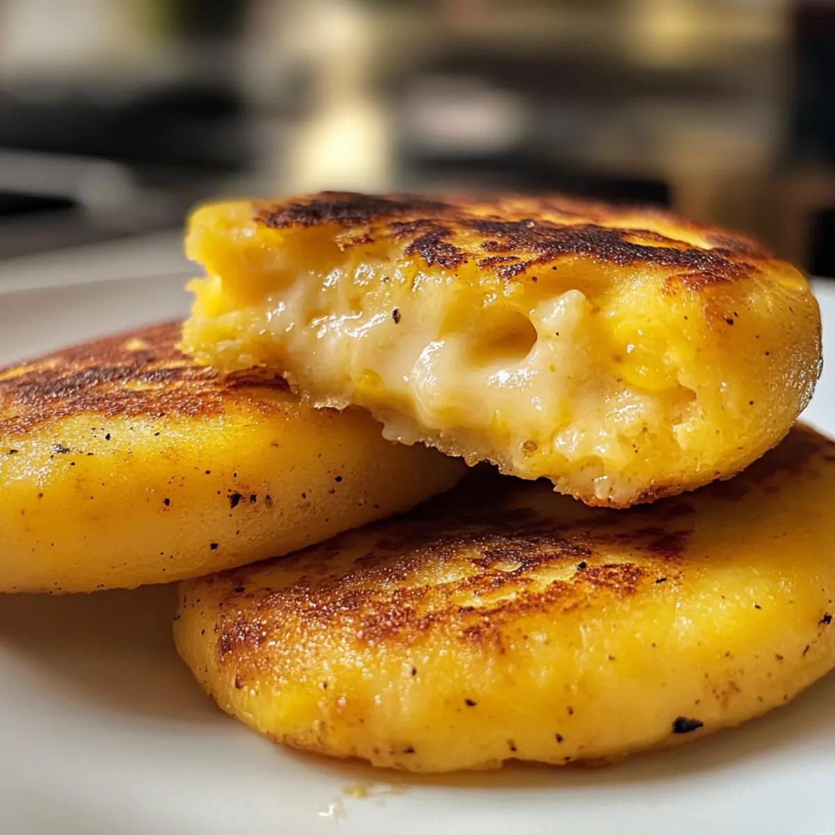 In the heart of Colombian kitchens, a culinary masterpiece is born: the Arepas con Queso. These savory corn cakes are a delightful fusion of crispy and soft textures, each bite revealing a gooey, cheesy center that will leave you craving more. The beauty of this dish lies in its versatility; whether enjoyed as breakfast, lunch, dinner, or a snack, these gluten-free treasures come together in just 40 minutes! With their quick preparation and irresistible cheesy goodness, Arepas con Queso are bound to become a beloved staple in your home. How about giving your taste buds a treat with these delightful bites? Why are Arepas con Queso a must-try? Deliciously Cheesy: A delightful blend of Cotija and mozzarella creates a rich, savory experience in every bite. Quick and Easy: With just 40 minutes from prep to plate, these arepas fit perfectly into your busy schedule. Gluten-Free: Made with masarepa, they cater to gluten-free diners while still satisfying everyone’s craving for comfort food. Versatile Snack: Perfect for breakfast, lunch, dinner, or appetizers, Arepas con Queso can suit any occasion—serve them with your favorite dips! Crispy and Soft: The contrast between the golden exterior and the warm, melty interior makes for a perfect texture combination that everyone will love. Cultural Delight: With roots in Colombian cuisine, they’re more than just a meal; they’re a taste of tradition celebrated worldwide. Arepas con Queso Ingredients • Discover the key components to create these cheesy treats! For the Dough Masarepa – Pre-cooked white cornmeal, a must for authentic texture. Sea Salt (or Kosher Salt) – Enhances flavor, ensuring your arepas taste delightful. Cotija Cheese – Adds a savory flavor and creaminess; feta works as a great substitute if needed. Butter – Softened for richness; stick to butter for traditional flavor. Warm Water – Helps hydrate the masarepa to form a nice dough; adjust as needed. For the Filling Shredded Mozzarella Cheese – Offers a gooey, melty center that enhances each bite; feel free to use any melting cheese. For Cooking Oil or Butter for Cooking – Used for frying the arepas; butter offers a richer taste while oil keeps them lighter. Step‑by‑Step Instructions for Arepas con Queso Step 1: Combine Ingredients In a medium bowl, mix 2 cups of masarepa, 1 teaspoon of salt, 1 cup of crumbled Cotija cheese, 2 tablespoons of softened butter, and about 1 and ¼ cups of warm water. Stir vigorously until the mixture is smooth and fully combined. You should achieve a dough-like consistency that is not too sticky; adjust the water accordingly if needed to prevent any dryness. Step 2: Knead Dough Once your mixture is well-blended, knead the dough gently for about 2-3 minutes until it becomes smooth and pliable. Cover the bowl with a clean kitchen towel and let the dough rest for 10 minutes. This resting period will help to relax the gluten-free dough, making it easier to shape the arepas without cracking. Step 3: Shape Arepas After resting, divide the dough into eight equal portions. Roll each portion into a ball and then flatten it into a disc approximately 5 inches in diameter. The edges should be smooth and slightly thicker than the center, ensuring a sturdy shell for your fillings. Set the shaped discs aside on a plate as you prepare to fill them. Step 4: Fill Arepas Take one disc and place about 2 tablespoons of shredded mozzarella cheese in the center. Cover it with another disc of dough, pressing gently to seal the mozzarella inside. Make sure to pinch the edges together firmly to prevent any leakage while cooking. Repeat this process until all arepas are filled. Step 5: Cook Arepas Heat 1-2 tablespoons of oil or butter in a skillet over medium-low heat or on an electric griddle set to 325°F. Once hot, carefully place 2-3 arepas in the skillet without overcrowding. Cook each side for 4-5 minutes until they turn a beautiful golden brown and develop a crisp crust; you should hear a sizzling sound while they cook. Step 6: Check Arepas for Doneness After about 5 minutes on each side, flip the arepas and cook until both sides are golden and crispy. You can press down gently with a spatula to ensure even cooking. If desired, you can check for doneness by slicing one open to reveal the gooey mozzarella inside; it should be thoroughly melted and delightfully stretchy. Step 7: Serve Warm Once all arepas are cooked, remove them from the skillet and place them on a paper towel-lined plate to absorb any excess oil. Serve warm, perhaps with a topping of extra cheese or a side of your favorite salsa. These Arepas con Queso are best enjoyed fresh for that irresistible crispy texture! Storage Tips for Arepas con Queso Room Temperature: Enjoy your Arepas con Queso fresh and warm. They can be left at room temperature for up to 2 hours before they need to be refrigerated. Fridge: Store leftovers in an airtight container in the fridge for up to 3 days, ensuring they stay moist and delicious for your next meal. Freezer: If you want to save some for later, freeze the cooled arepas individually wrapped in plastic, then placed in an airtight freezer bag. They can last up to 3 months. Reheating: For best results, reheat in a toaster oven or skillet to maintain their crispy texture. Avoid microwaving, as it can make them soggy and lose that delightful crunch. Make Ahead Options These Arepas con Queso are perfect for busy weeknights, allowing you to prep ahead for a quick and delicious meal! You can make the dough up to 24 hours in advance; simply mix the masarepa, salt, Cotija cheese, butter, and warm water, then knead and cover it in the refrigerator. Additionally, you can shape the arepas and fill them with mozzarella cheese up to 3 days ahead—just be sure to store them in an airtight container to maintain their quality. When you’re ready to enjoy, just heat oil or butter in a skillet and cook each side for 4-5 minutes until golden brown and crispy. This meal pr