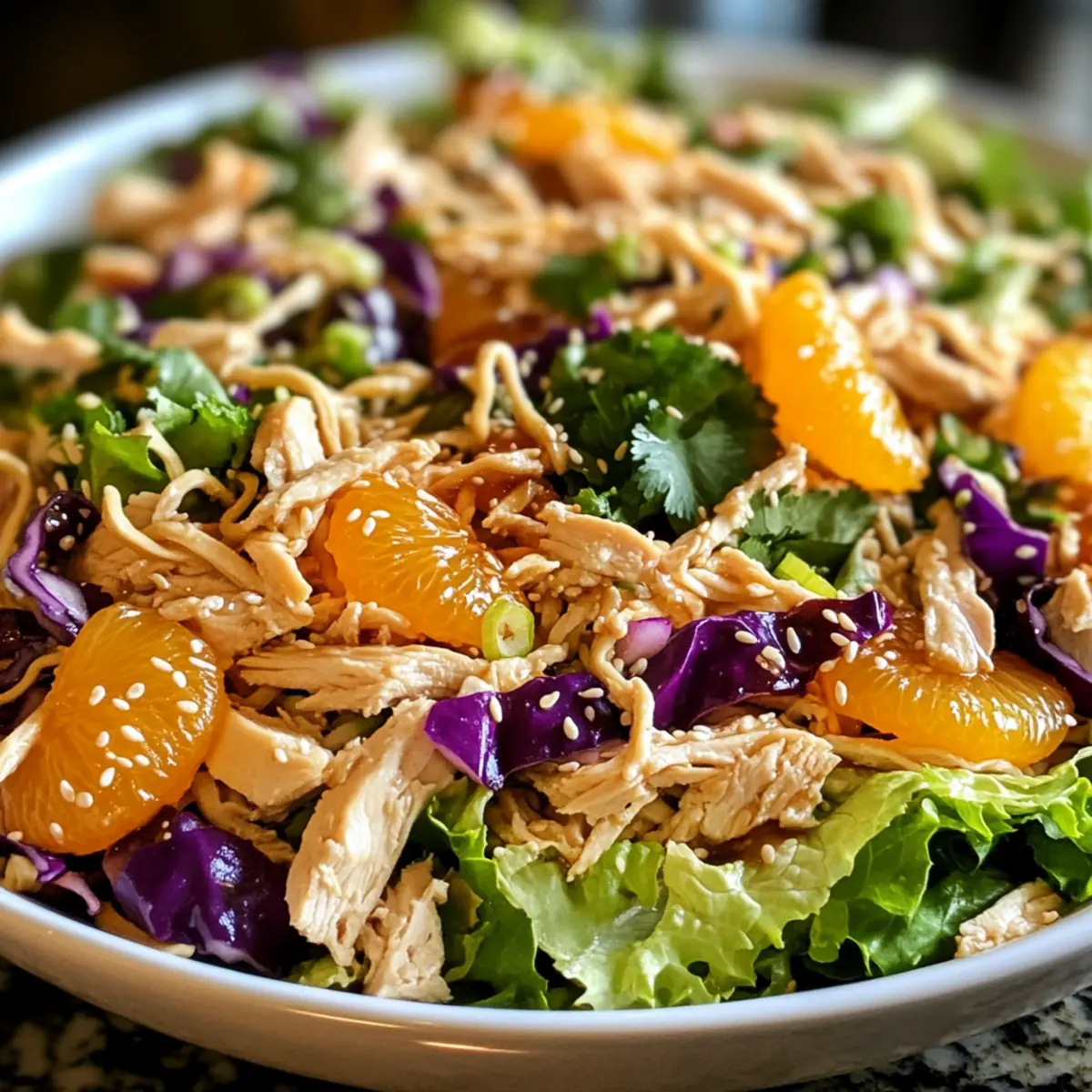 2. In a large mixing bowl, combine chopped lettuce, cabbage, chicken, carrots, and oranges. Toss gently.