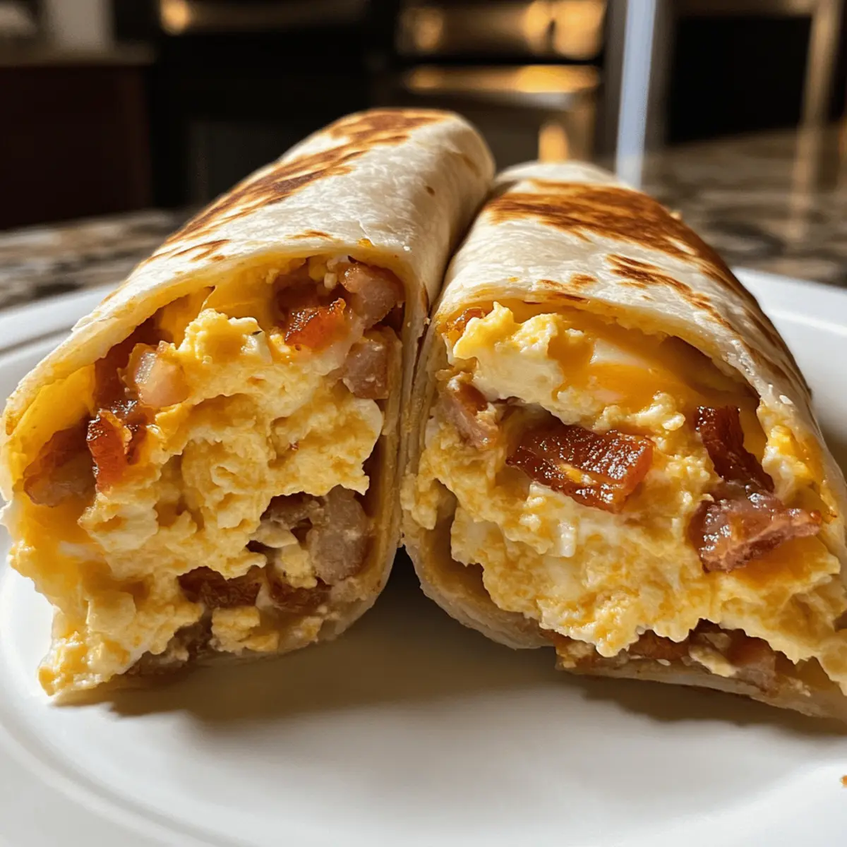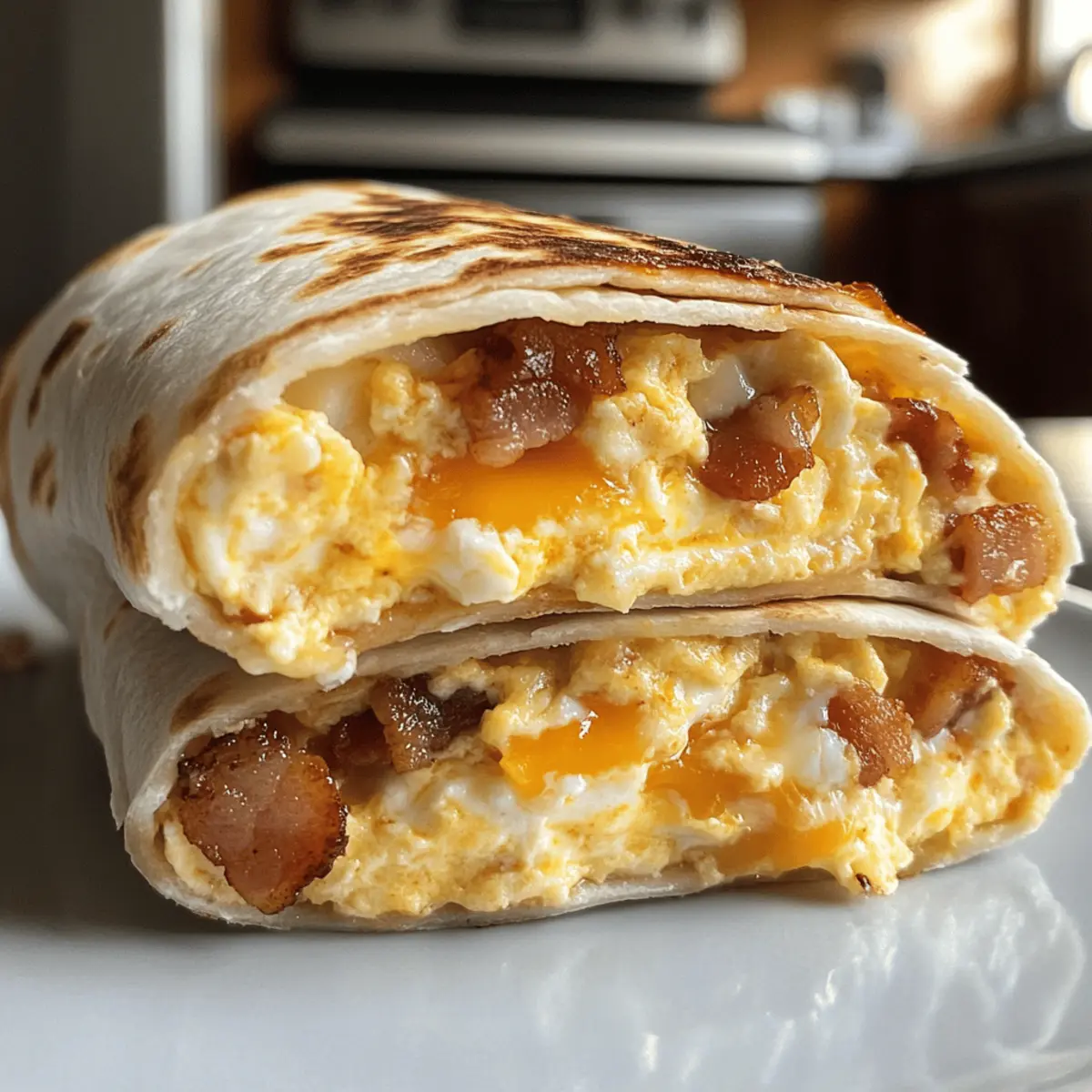 As I stood in my kitchen, the enticing aroma of sizzling bacon danced through the air, instantly transporting me to those lazy Sunday mornings filled with comfort and warmth. Today, I’m excited to share my favorite quick meal—Bacon Egg and Cheese Breakfast Burritos. Perfect for meal prep, these burritos make busy mornings a breeze, allowing you to customize them with your favorite toppings. Picture a crispy exterior cradling fluffy scrambled eggs, gooey cheese, and savory bacon, all wrapped snugly in a flour tortilla. Not only are they satisfying but this recipe is also a fantastic way to kickstart your day with a protein-rich breakfast. Are you ready to elevate your morning routine with this delicious, versatile twist on a classic? Why are breakfast burritos so popular? Quick and Easy: This Bacon Egg and Cheese Breakfast Burrito takes just minutes to prepare, making it a go-to for busy mornings. Customizable to Your Taste: Whether you prefer smoky sausage or fresh veggies, you can easily personalize this dish to suit your cravings. Crowd-Pleaser: Perfect for the whole family! Kids and adults alike will love the combination of crispy bacon, creamy cheese, and fluffy eggs, reminiscent of a hearty breakfast spread. Meal Prep Champion: These burritos freeze well, allowing you to prepare a batch ahead of time, so you can enjoy a satisfying breakfast on-the-go. Gourmet Touch: With the option to add hot sauce or guacamole, you can elevate your burrito experience even further for brunches or brunch gatherings. Try serving them alongside some crispy air-fried potatoes for a complete meal! Bacon Egg and Cheese Breakfast Burrito Ingredients Here’s what you’ll need to create these delicious burritos: For the Filling Bacon – Provides rich flavor and crunch; use thick-cut for the best results. Frozen Hash Browns – Offers convenience and crispy texture; choose a high-quality brand for enhanced flavor. Large Eggs – The main protein source; fresh eggs guarantee optimal taste. Half-and-Half – Creates a rich egg mixture; substitute with milk for a lighter option. Unsalted Butter – Essential for cooking eggs; avoid salted butter to control seasoning. Paprika – Adds a hint of spice; swap with cayenne for a bolder kick. Kosher Salt – Essential for flavor; adjust to taste preference. Freshly Ground Black Pepper – Adds warmth; white pepper can be used for subtlety. For the Wrap Large Flour Tortillas – Ideal for wrapping; ensure they are 10-12 inches for easy handling. Cheddar Cheese – Adds a sharp, creamy flavor; always shred your own for better melt. Mozzarella Cheese – Provides gooey stretchiness; great when combined with cheddar. For Serving Hot Sauce – Optional; choose your favorite to add an extra flavor kick. Get ready to embrace the magic of these Bacon Egg and Cheese Breakfast Burritos—perfectly packed with flavor and absolutely customizable to your liking! Step‑by‑Step Instructions for Bacon Egg and Cheese Breakfast Burritos Step 1: Cook the Bacon Begin by heating a cast-iron skillet over medium heat. Add thick-cut bacon in batches, frying for about 8 minutes or until they are crispy and golden. Once done, transfer the bacon to a plate lined with paper towels to drain any excess fat, allowing the crispy strips to rest while you use the flavorful drippings in the next step. Step 2: Cook the Hash Browns Using the same skillet, retain a couple of tablespoons of the bacon fat for added flavor. Heat it over medium heat, then add the frozen hash browns, cooking according to the package instructions. Aim for a crispy texture, which should take about 5-7 minutes. Once cooked, transfer the hash browns to a plate and get ready to create the creamy eggs next. Step 3: Cook the Eggs In a bowl, whisk together large eggs and half-and-half until well combined. Heat unsalted butter in the skillet over medium-low heat, then pour in the egg mixture. Gently stir with a spatula, cooking until soft curds form and the eggs are just set, usually around 4-5 minutes. Season with paprika, kosher salt, and freshly ground black pepper for added flavor, then remove from heat. Step 4: Assemble the Burritos Lay out large flour tortillas on a clean surface, starting to assemble each burrito. In the center of each tortilla, layer a portion of crispy hash browns, fluffy scrambled eggs, shredded cheddar, mozzarella cheese, and the crumbled bacon. Make sure to leave space on the edges to fold, ensuring each burrito is generously filled yet easy to wrap. Step 5: Grill the Burritos Brush the outside of each assembled burrito with reserved bacon fat for extra flavor. Return the skillet to medium heat and grill each burrito for about 2 minutes on each side, or until the tortillas are golden brown and crispy. Flip carefully to avoid any spills, and serve hot, optionally with your favorite hot sauce for an added kick! Make Ahead Options These Bacon Egg and Cheese Breakfast Burritos are perfect for meal prep enthusiasts! You can prepare the fillings—cooked bacon, scrambled eggs, and hash browns—up to 3 days in advance. Simply store them in airtight containers in the refrigerator. When you’re ready to assemble, warm the fillings slightly to prevent the tortilla from becoming soggy. Roll them up, grill, and enjoy a delicious breakfast in no time! For longer-term storage, you can freeze the assembled burritos in plastic wrap and foil for up to 3 months; just reheat in the oven or air fryer for best results. This way, you’ll always have a satisfying on-the-go meal ready to brighten your busy mornings! Expert Tips for Bacon Egg and Cheese Breakfast Burritos Choose Quality Ingredients: Always opt for thick-cut bacon and fresh large eggs. Quality ingredients result in a richer and more satisfying flavor profile for your breakfast burritos. Preheat Your Skillet: Ensure your skillet is well-heated before cooking. This helps to achieve that perfect crispy texture, especially for the bacon and hash browns. Don