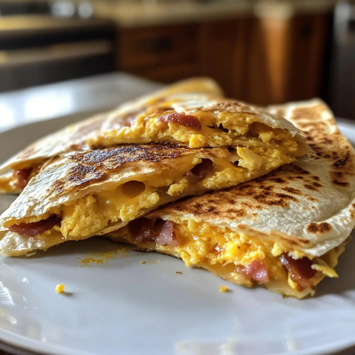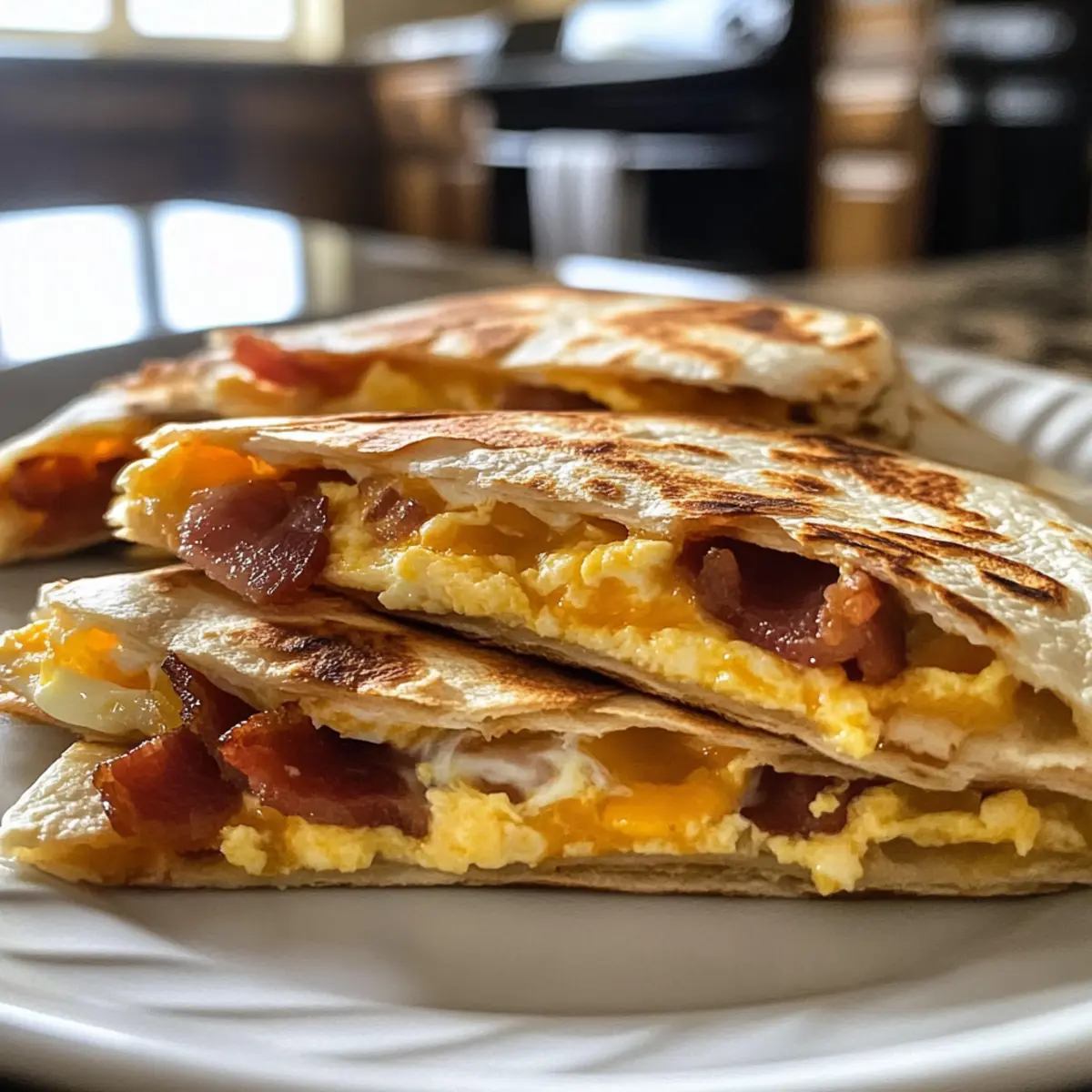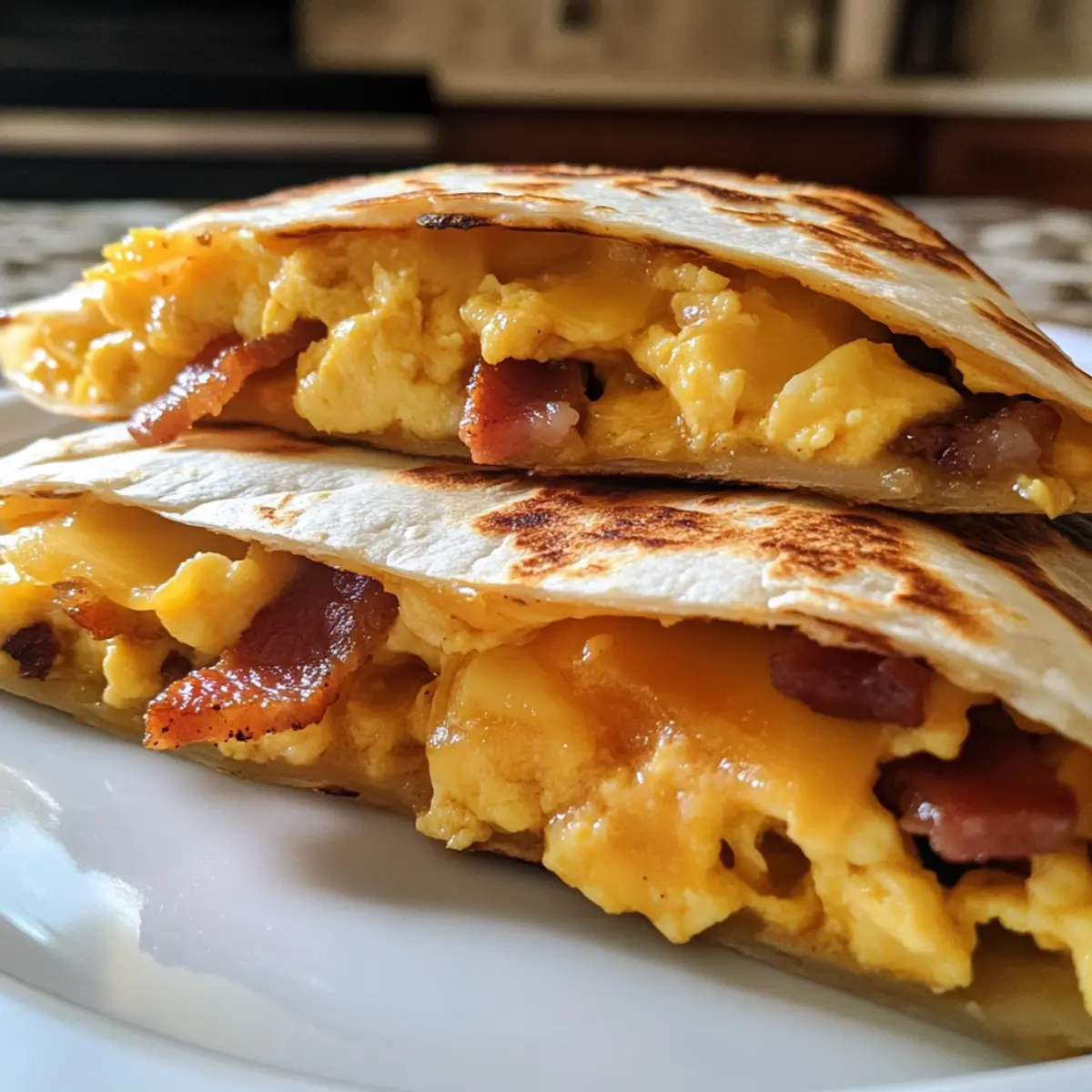 As I stood in the kitchen this morning, the enticing aroma of crispy bacon sizzling in the skillet caught my attention, promising a breakfast that would chase away any lingering sleepiness. These Bacon Egg Cheese Breakfast Quesadillas are a fantastic way to start your day, combining savory flavors and golden textures into a satisfying meal. Not only are they beginner-friendly and quick to prepare—ready in just 35 minutes—but they also provide the heartwarming comfort of a homemade breakfast that many fast food alternatives lack. Each bite is a delightful fusion of crispy tortilla, fluffy eggs, and gooey cheese that will leave you craving more. So, are you ready to elevate your morning routine with this scrumptious twist on breakfast? Why are Quesadillas a Breakfast Game Changer? Quick and Easy: These Bacon Egg Cheese Breakfast Quesadillas whip up in just 35 minutes, making them a perfect option for busy mornings or leisurely brunch catch-ups with loved ones. Flavor Fusion: Experience the irresistible combination of crispy tortillas, savory bacon, and gooey cheese that awakens your taste buds, all while adding a special touch to your routine! Customizable Delights: Feel free to mix and match ingredients! Add veggies, experiment with different cheeses, or even try a sprinkle of spices to make your quesadilla uniquely yours. Crowd-Pleaser: Not only do kids love them, but these quesadillas also impress adults, ensuring everyone goes home satisfied. Serve with a side of salsa or fresh fruit for a balanced meal! For a twist on flavor, check out ideas from my Baked Feta Eggs recipe, or try something sweet for dessert with my delicious Mini Rolo Cheesecakes. You’ll be the breakfast hero in no time! Bacon Egg Cheese Breakfast Quesadilla Ingredients • Dive into the essentials for this delicious breakfast treat! For the Quesadilla Large Flour Tortillas – The base of the quesadilla providing a crispy, golden exterior. Substitution Note: Can use corn tortillas for a gluten-free option. Bacon – Adds salty, smoky flavor and satisfying crunch. Substitution Note: Turkey bacon or vegan bacon can work for a lighter or plant-based option. Large Eggs – Create a fluffy, tender filling and add protein. Substitution Note: Can replace with egg substitutes for a lighter option. Salt and Pepper – Essential seasonings that enhance flavor. Notes: Adjust to taste depending on dietary restrictions. Shredded Cheddar Cheese – Provides creamy texture and rich flavor. Substitution Note: Try Monterey Jack, pepper jack, or mozzarella for variety. Butter – Used for cooking eggs and achieving golden tortillas. Note: Olive oil can be used for a dairy-free version. For Optional Toppings Hot Sauce – Adds a spicy kick to your quesadilla. Chopped Green Onions – Provides a fresh burst of flavor and color. Fresh Cilantro – Enhances presentation and offers a fragrant note. Elevate your breakfast game with these cozy Bacon Egg Cheese Breakfast Quesadillas! Step‑by‑Step Instructions for Bacon Egg Cheese Breakfast Quesadillas Step 1: Cook the Bacon In a large skillet, over medium heat, cook the bacon strips for about 5–7 minutes until they become crispy and golden brown. Keep an eye on them, turning occasionally for even cooking. Once done, transfer the bacon to a paper towel-lined plate to drain excess grease and crumble into bite-sized pieces. Step 2: Prepare the Eggs In the same skillet, reduce the heat to low, and add a tablespoon of butter to melt. While the butter is melting, crack 4 large eggs into a mixing bowl, adding a pinch of salt and pepper. Whisk until well combined, then pour the mixture into the skillet, gently scrambling them for about 3–4 minutes until the eggs are fluffy and just set. Step 3: Assemble the Quesadillas Take one large flour tortilla and lay it flat on a clean surface or a plate. Sprinkle half of the tortilla generously with shredded cheddar cheese, then layer with the scrambled eggs and crumbled bacon. Finally, fold the tortilla in half, pressing gently to secure the filling inside. Step 4: Cook Quesadillas In a clean non-stick skillet over medium heat, add a little butter or oil to prevent sticking. Place the assembled quesadilla in the skillet and cook for about 2–3 minutes on one side, until it turns a golden brown. Carefully flip the quesadilla and cook the other side for an additional 2–3 minutes until the cheese melts and the tortilla is crispy. Step 5: Slice and Serve Remove the cooked quesadilla from the skillet and let it rest for a minute. Using a sharp knife or pizza cutter, slice it into wedges for easy serving. Add optional toppings like hot sauce, chopped green onions, or fresh cilantro to elevate your Bacon Egg Cheese Breakfast Quesadillas experience! Make Ahead Options These Bacon Egg Cheese Breakfast Quesadillas are perfect for meal prep enthusiasts! You can prepare the bacon and scrambled eggs up to 24 hours in advance. To do this, cook the bacon until crispy, crumble it, and store it in an airtight container in the refrigerator. Likewise, scramble the eggs, let them cool, and refrigerate separately to maintain the fluffy texture. When you’re ready to enjoy your quesadillas, simply assemble them by placing the prepped ingredients between tortillas and cook as directed. This not only saves time on busy mornings but also ensures you can indulge in a hearty breakfast without any fuss! Bacon Egg Cheese Breakfast Quesadillas Variations Feel free to get creative with these delicious quesadillas, customizing the flavors to suit your taste buds! Veggie Boost: Add diced bell peppers, onions, or spinach to the eggs for extra nutrition and flavor. A splash of color can turn your breakfast from simple to spectacular! Spicy Twist: Incorporate jalapeños or a dash of hot sauce into the filling for a spicy kick. The heat will awaken your palate and energize your morning! Cheese Variety: Swap cheddar for Monterey Jack, pepper jack, or mozzarella to explore new di