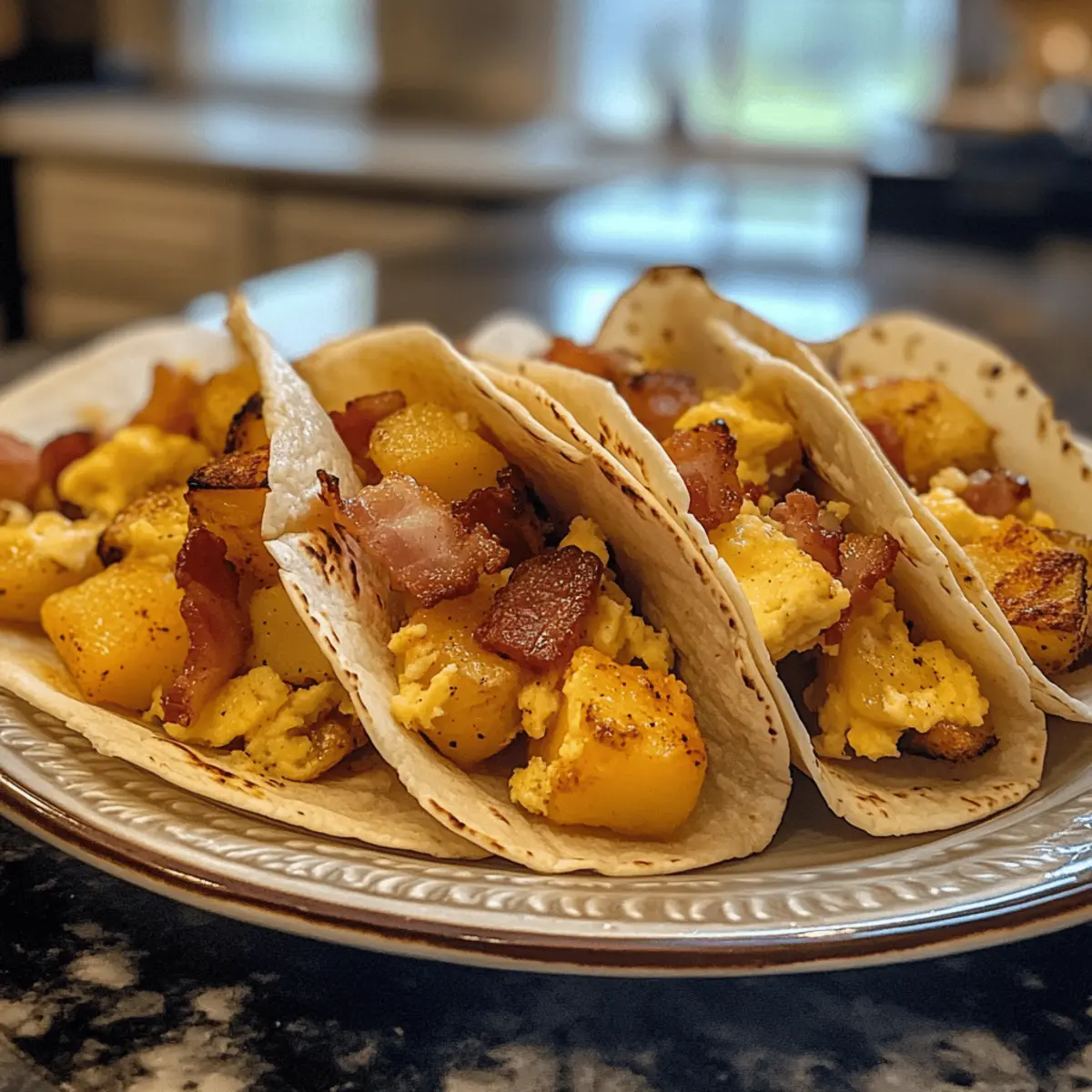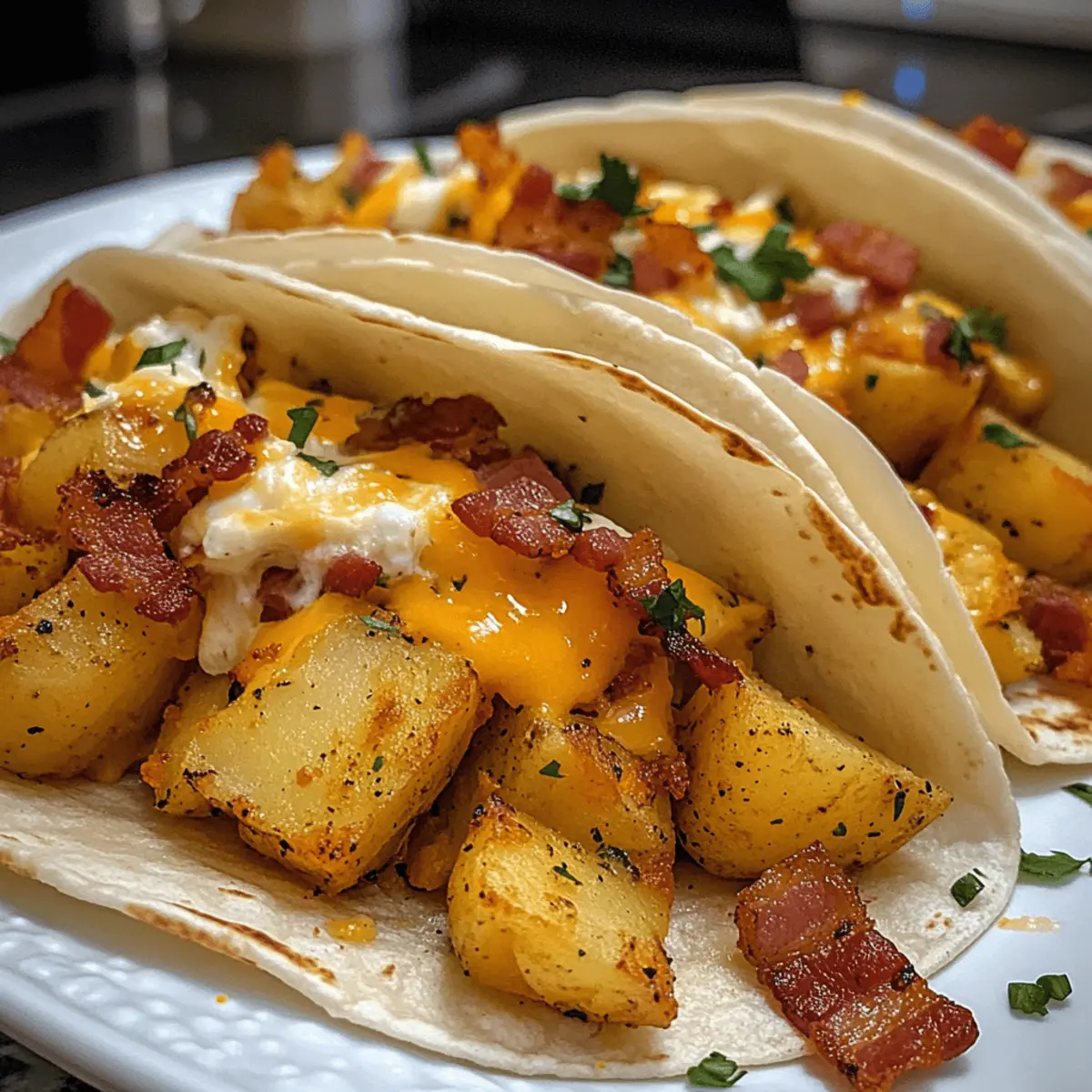 Baked Breakfast Tacos offer a delicious mix of crispy potatoes, fluffy eggs, and savory bacon for a perfect morning meal.