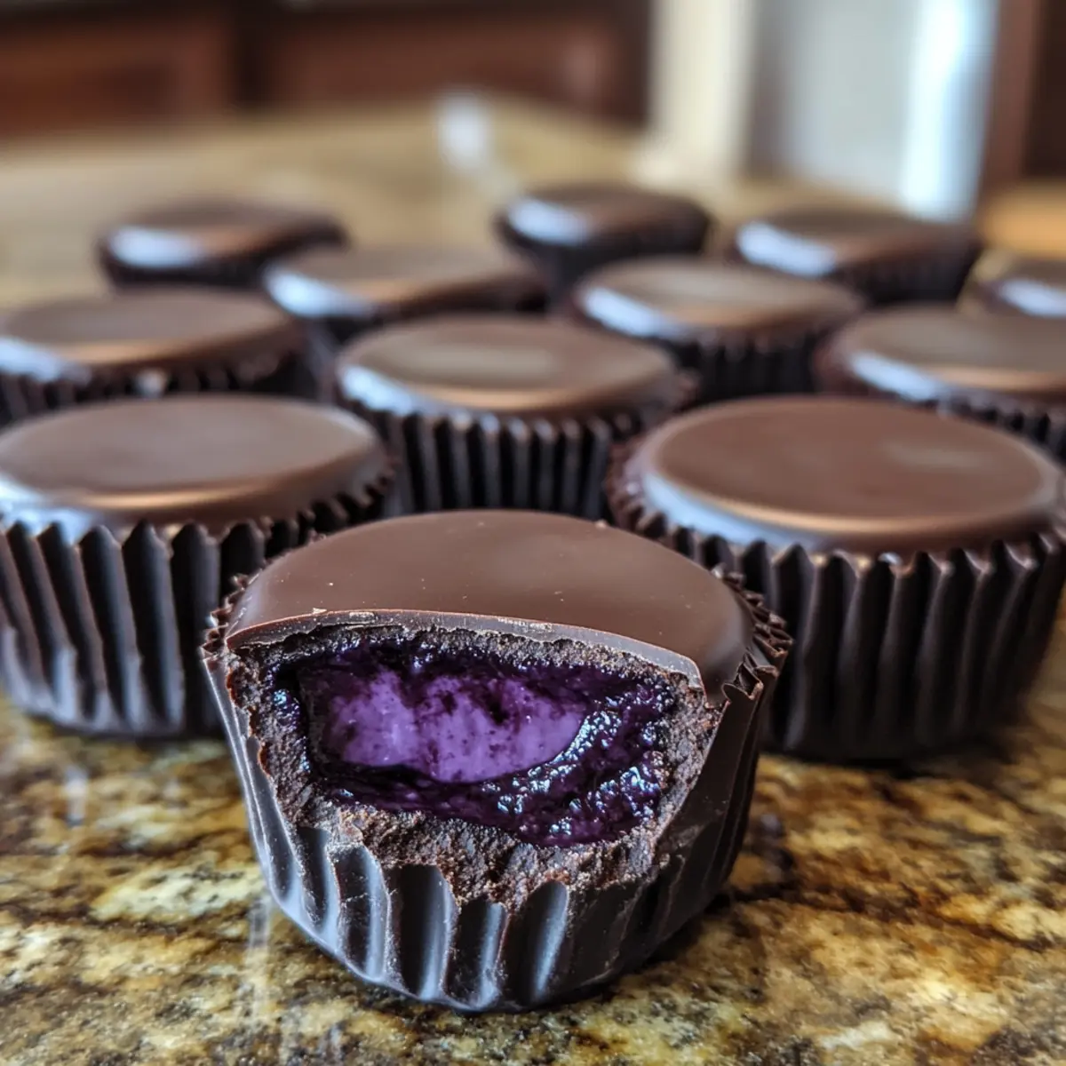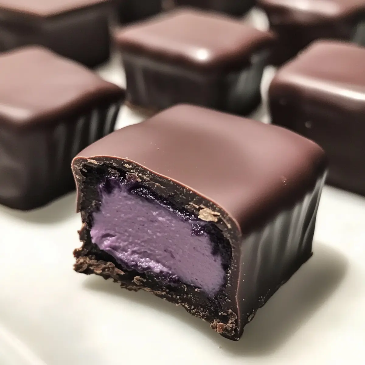 As the sun warms the air and the scent of fresh blooms fills the garden, I find myself dreaming of sweet indulgences that brighten any occasion. Enter my Blueberry Buttercream Chocolates, a delightful twist on traditional treats! The luscious, creamy blueberry center is lovingly enveloped in rich dark chocolate, creating an irresistible combination that’s both elegant and comforting. These no-bake gems are not just perfect for your upcoming spring celebrations, but they also make for thoughtful, homemade gifts that show you care. With quick prep and a gluten-free option, this recipe appeals to every kind of home chef—whether you’re looking to impress at a dinner party or simply treat yourself. Curious about how to make these silky little delights? Let’s dive in! Why Are These Chocolates So Irresistible? Decadent Flavor: These Blueberry Buttercream Chocolates combine the rich notes of dark chocolate with a vibrant, fruity buttercream center, delivering a mouthwatering experience that’s hard to resist. No Bake Needed: This recipe requires no baking, making it a quick and accessible treat that anyone can whip up at home. Versatile and Customizable: Feel free to swap the blueberry flavor with raspberry or strawberry for a personal twist, or try dipping in different chocolate varieties for unique flavors. Perfect for Any Occasion: Whether it’s a garden party or an intimate gathering, these chocolates are an elegant addition to dessert trays and a fabulous homemade gift option. Plus, check out my Strawberry Blueberry Tiramisu for another delightful dessert idea! Blueberry Buttercream Chocolates Ingredients For the Buttercream • Powdered Sugar – Provides sweetness and structure; substitute with confectioner’s sugar if unavailable. • Unsalted Butter – Contributes creaminess and richness; ensure it’s softened for easy mixing. • Blueberry Flavor Paste – Gives authentic fruit flavor; use fresh blueberry puree for an alternative taste profile. • Whole Milk – Adjusts texture for a smooth, pipeable consistency; consider almond milk for a different flavor note. • Salt – Enhances flavor by balancing sweetness; opt for kosher or sea salt for best results. For Dipping • Dark Chocolate – Creates a rich exterior; choose high-quality chocolate for an elevated final product. Optional Toppings • Sea Salt Flakes – Add a sprinkle on top for a gourmet touch; enhances the overall flavor experience of the chocolates. These Blueberry Buttercream Chocolates are a delightful homemade treat that will surely impress! Step‑by‑Step Instructions for Blueberry Buttercream Chocolates Step 1: Prepare Your Pan Start by grabbing an 8 x 6 quarter sheet pan and line it with parchment paper, ensuring it covers the edges for easy removal later. This will be the base where you spread the silky blueberry buttercream, which will need a solid foundation to set properly. Step 2: Cream the Butter In a large mixing bowl, use an electric mixer on medium speed to beat softened unsalted butter until it’s smooth and creamy, about 2-3 minutes. The butter should be light in color and fluffy, which will create a luscious texture in your Blueberry Buttercream Chocolates. Step 3: Incorporate Powdered Sugar Gradually add powdered sugar to the creamed butter, mixing on low speed until fully combined. Increase to medium speed and mix for another 2-3 minutes until you achieve a smooth and airy buttercream, reminiscent of a sweet cloud. Step 4: Add Blueberry Flavor and Salt Gently mix in blueberry flavor paste along with a pinch of salt, continuing until well-blended. The mixture should now have a vibrant purple hue and a delightful aroma, indicating that the blueberry flavor is infused throughout the buttercream. Step 5: Adjust Consistency with Milk Add whole milk one tablespoon at a time to the buttercream, mixing after each addition until you reach your desired spreadable consistency. You want it to be creamy and easy to spread, yet firm enough to hold its shape in the Blueberry Buttercream Chocolates. Step 6: Spread and Chill Evenly spread the buttercream mixture into your prepared pan using a spatula, smoothing out the surface for an even layer. Chill in the refrigerator for 15-20 minutes, or until the buttercream firmens up, making it easier to cut into squares later. Step 7: Cut into Squares Once chilled, remove the buttercream from the pan and cut it into 1″ x 1″ squares using a sharp knife. Allow these squares to sit at room temperature for 12-24 hours, which helps them dry slightly and firms them further for coating. Step 8: Melt the Chocolate In a microwave-safe bowl, melt high-quality dark chocolate in 30-second intervals, stirring in between until smooth and glossy. Be cautious not to overheat; the melting process should take about 2-3 minutes for perfectly melted chocolate that will coat your chocolates beautifully. Step 9: Dip the Buttercream Squares Carefully dip each chilled buttercream square into the melted chocolate, ensuring it’s completely covered. Use a fork to lift the squares out, allowing excess chocolate to drip off back into the bowl. This step is crucial for achieving a smooth, professional finish for your Blueberry Buttercream Chocolates. Step 10: Set the Chocolates Place the dipped chocolates on a parchment-lined tray and allow them to set at room temperature. For quicker results, you can pop them in the refrigerator for about 15-20 minutes to achieve a lovely glossy finish before serving or storing. Step 11: Store or Serve Once set, transfer your Blueberry Buttercream Chocolates to an airtight container for storage. They can remain at room temperature for up to two weeks, making them a great treat to enjoy or gift to loved ones. What to Serve with Blueberry Buttercream Chocolates These delightful treats are not just for solo indulgence; they can shine even brighter alongside complementary dishes. Creamy Vanilla Ice Cream: A scoop adds a delightful contrast to the ri