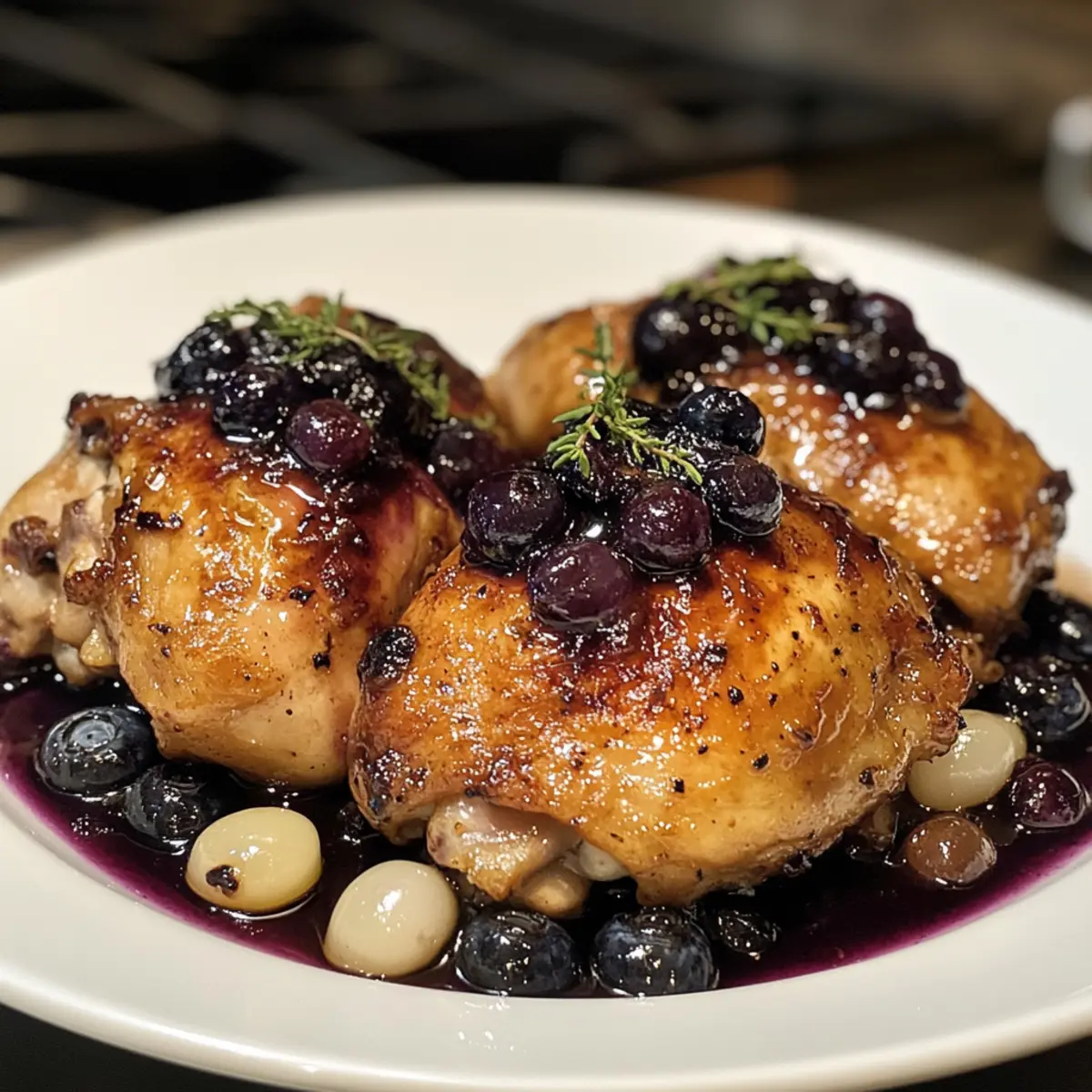 Experience the delightful taste of Blueberry Thyme Chicken, bursting with savory flavor and summer freshness.