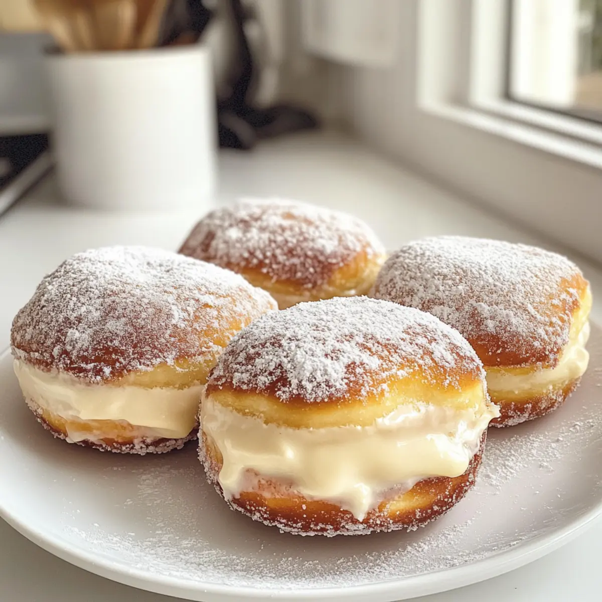 • Spiced Sugar Dusting: Mix powdered sugar with a dash of cinnamon or nutmeg for a warm flavor on the outside. The aromatic sugar enhances the sweetness and pairs beautifully with the creamy filling.