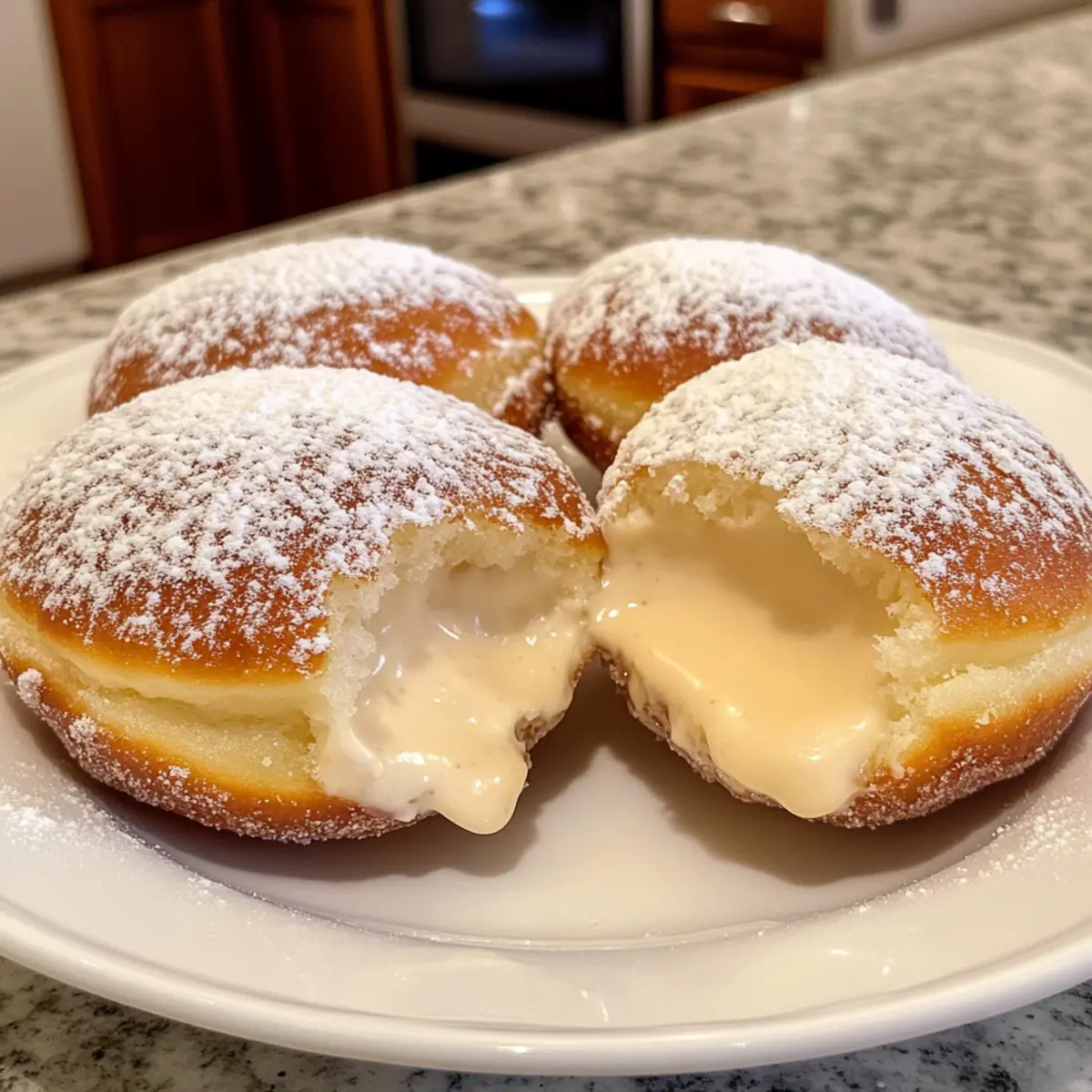 A delightful aroma wafts through the air as I pull a tray of freshly fried Bomboloni alla Crema from the kitchen—pure bliss captured in a fluffy Italian donut! These airy, cream-filled morsels have a way of transforming any ordinary day into a mini celebration, making them an irresistible treat for all occasions. What I adore most about this recipe is how quick it is to assemble, allowing me to whip up these heavenly donuts even on busy weekends. Plus, they’re a guaranteed crowd-pleaser; just watch your friends and family gather around as they take their first bite, eyes lighting up with joy. Are you ready to immerse yourself in the sweet world of Bomboloni alla Crema and add a touch of Italy to your dessert table? Why are Bomboloni alla Crema irresistible? Heavenly Flavor: Each bite of these Bomboloni is packed with luscious pastry cream, offering a delectable explosion of flavor that will leave you craving more. Simplicity: Quick and easy to make, this recipe is perfect for both novice and seasoned bakers alike. You can enjoy fresh donuts without spending all day in the kitchen! Crowd-Pleaser: Watch as family and friends gather around, delighting in these fluffy treats during your next gathering. They’re perfect for any occasion, turning ordinary moments into special celebrations. Versatile Options: Feel free to experiment with various fillings, like flavored jams or even chocolate ganache, to personalize your Bomboloni experience. Cultural Twist: Embrace Italian tradition by making these delightful donuts. Enjoy them with a cup of espresso for a true taste of Italy that’s perfect any time of year! For more dessert inspiration, be sure to check out my easy dessert recipes that will suit every palate. Bomboloni alla Crema Ingredients For the Dough All-purpose flour – Provides structure and texture for the dough. Yeast – Acts as a leavening agent, helping the dough rise and create a light, airy crumb. Milk – Adds moisture and richness; can substitute with non-dairy milk for a vegan option. Sugar – Sweetens the dough; can be reduced if you prefer a less sweet flavor. Salt – Enhances flavor and balances the sweetness of the dough. Butter – Brings richness and tenderness; can be swapped for margarine for a dairy-free alternative. Eggs – Contributes to richness and helps bind the dough; a flax egg can be used for a vegan alternative. For the Filling Pastry cream – This luscious filling creates the signature experience of Bomboloni alla Crema; you can experiment with vanilla or chocolate flavors. For Dusting Powdered sugar – A light dusting before serving adds sweetness and a beautiful finish; consider using coconut sugar for a healthier option. Step‑by‑Step Instructions for Bomboloni alla Crema Step 1: Prepare the Dough In a large mixing bowl, combine 1 cup of warm milk, 2 tablespoons of sugar, and 2 teaspoons of active dry yeast, letting it sit for about 5-10 minutes until frothy. Then, mix in 4 cups of all-purpose flour, 1 teaspoon of salt, 2 beaten eggs, and 3 tablespoons of melted butter until a shaggy dough starts to form. Step 2: Knead the Dough Turn the dough out onto a lightly floured surface and knead for about 8-10 minutes until it becomes smooth and elastic. The dough should be slightly tacky but not sticky; add a sprinkle of flour if necessary. Shape the dough into a ball and place it in a greased bowl, covering it with a clean kitchen towel. Step 3: Let It Rise Allow the dough to rise in a warm, draft-free area for approximately 1 hour or until it has doubled in size. You can check for readiness by gently pressing your finger into the dough; if it springs back slowly, it’s ready. Meanwhile, prepare your workspace and ingredients for shaping the Bomboloni. Step 4: Shape the Bomboloni Once the dough has risen, punch it down gently and transfer it to a floured surface. Roll the dough out to about ½-inch thickness and cut into 3-inch circles using a cookie cutter. Place the circles on a floured baking sheet, cover with a towel, and let them rise for an additional 30 minutes until puffed. Step 5: Fry the Bomboloni In a heavy-bottomed pot, heat oil to 350°F (175°C). Carefully drop in a few dough rounds at a time, frying until they turn golden brown, about 2-3 minutes per side. Use a slotted spoon to remove the Bomboloni, letting them drain on paper towels to absorb excess oil while you fry the remaining donuts. Step 6: Fill the Bomboloni Allow the fried Bomboloni to cool slightly, then fill a pastry bag fitted with a filling tip with your chosen pastry cream. Insert the tip into the side of each donut and gently squeeze to fill until they feel plump but not overstuffed. Step 7: Dust with Powdered Sugar Once filled, roll each Bomboloni in powdered sugar for a sweet finishing touch. The sugar not only adds flavor but also enhances the presentation. Serve immediately while they’re still warm for the ultimate Bomboloni alla Crema experience. How to Store and Freeze Bomboloni alla Crema Room Temperature: Store the Bomboloni in an airtight container at room temperature for up to 2 days. They are best enjoyed fresh but can be briefly reheated for warmth. Fridge: If you’d like to keep them longer, store the filled Bomboloni in the refrigerator for up to 5 days. Just be sure to seal them well to maintain their texture. Freezer: For longer storage, freeze unfilled Bomboloni in a single layer on a baking sheet, then transfer them to a freezer bag for up to 3 months. Reheat in a 350°F (175°C) oven to restore crispness after thawing. Reheating: For the best results, reheat fried Bomboloni in the oven rather than the microwave to preserve their light, airy texture. Enjoy them as fresh as possible for an unforgettable taste of Bomboloni alla Crema! Bomboloni alla Crema Variations Feel free to get creative with your Bomboloni alla Crema! Transform this lovely recipe with fun twists that tantalize your taste buds. Dairy-Free: Use almond or oat milk instead of r