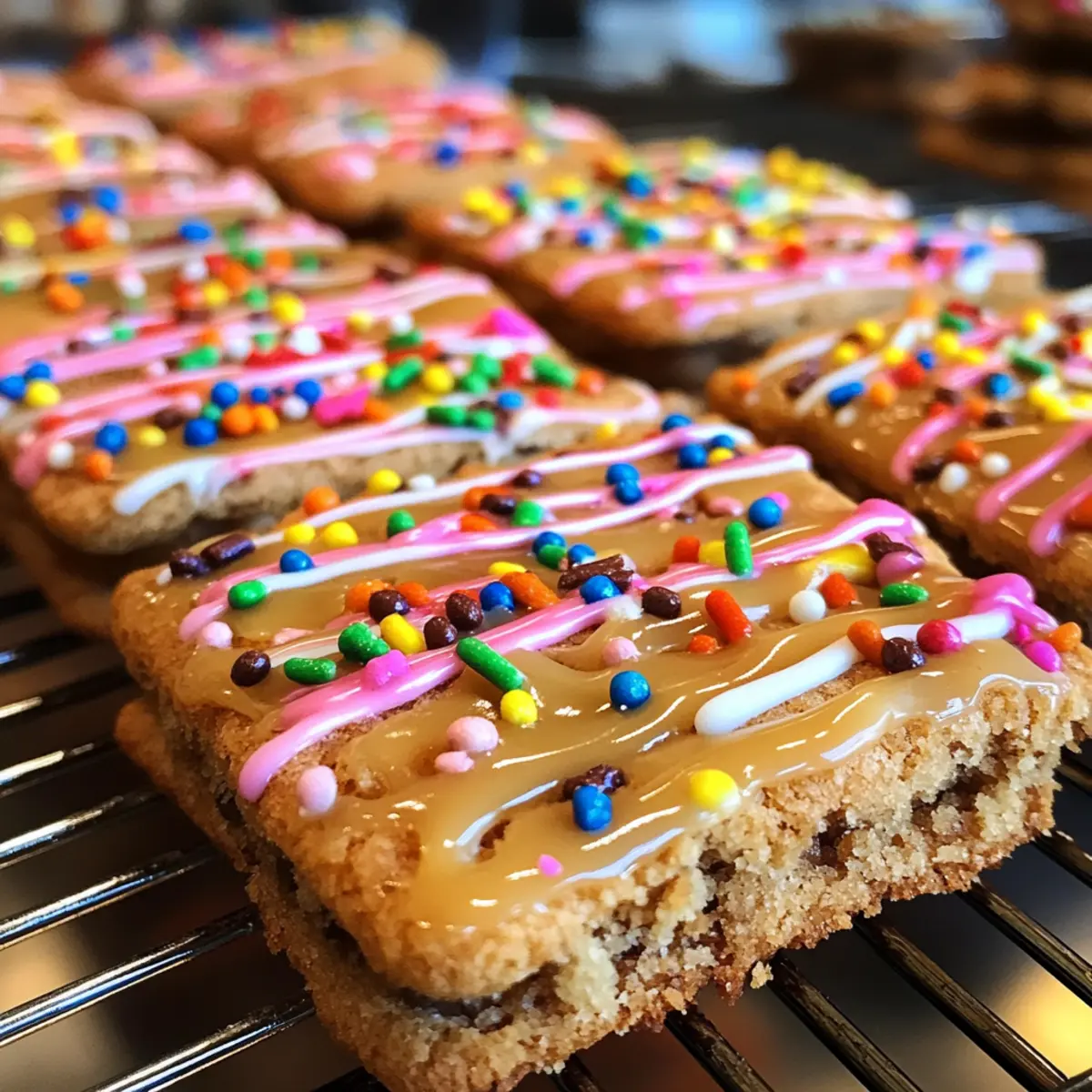 A kitchen filled with the warm aroma of baking cookies can instantly transport me back to my childhood, where sweet treats were a daily delight. That’s why I’m thrilled to share my Brown Sugar Pop Tart Cookies, a nostalgic twist on a classic snack. These cookies envelop rich, caramel-like brown sugar in a buttery, flaky shell that’s incredibly easy to make. With their quick prep time and irresistible chewiness, they make a perfect indulgence for game nights or an afternoon pick-me-up. Plus, they bring that homemade charm we all crave, making every bite a comforting experience. Ready to add a touch of joy to your baking repertoire? Let’s dive in! Why are Brown Sugar Pop Tart Cookies a must-try? Irresistible nostalgia: These cookies encapsulate the childhood joy of classic Pop Tarts, but with a homemade flair that elevates every bite. Quick and easy: With a straightforward recipe, you can whip up a batch in no time, perfect for those busy days when you crave something sweet. Versatile filling options: Don’t hesitate to get creative! Add chocolate chips or nuts for a personal twist, or change up the spices to suit your taste. Perfect for sharing: Whether it’s a party or a cozy night in, these cookies are sure to delight friends and family alike. Comforting texture: Enjoy the delightful contrast between the flaky exterior and the chewy, caramel-filled center, a combination that will have everyone coming back for more! Brown Sugar Pop Tart Cookies Ingredients For the Dough • All-purpose flour – Provides structure to the cookies. Alternative: Gluten-free flour can be used for a gluten-free option. • Baking powder – Leavens the cookies for a light texture. Keep an eye on freshness for best results. • Baking soda – Helps the cookies rise and adds a slight chewiness. Essential for optimal texture. • Salt – Enhances flavors and balances sweetness. A pinch is suitable for both sweet and savory dishes. • Unsweetened butter – Contributes richness and flavor. Substitution: Use vegan butter for a dairy-free version. • Brown sugar – Gives a rich, caramel flavor and moisture to the cookies. Can substitute with coconut sugar for a lower glycemic option. • Granulated sugar – Adds sweetness and helps with browning. Sugar alternatives such as erythritol can be used for a sugar-free version. • Large eggs – Binds ingredients together and contributes to moisture. Aquafaba can replace eggs for a vegan variation. • Vanilla extract – Adds depth of flavor. Use pure vanilla extract for the best taste; imitation may alter flavor. For the Filling • Brown sugar (for filling) – Sweet and flavorful center for the cookies. No substitutions recommended to maintain taste. • Cornstarch – Improves the texture of the filling, making it thicker. Arrowroot can be a substitute. • Cinnamon – Adds warmth and flavor to the filling. Optional: Warm spices like nutmeg could be used as an alternative. For Brushing and Icing • Milk (for brushing) – Promotes a golden color on the baked cookies. Non-dairy milk can be used for a vegan-friendly option. • Powdered sugar (for icing) – Sweet topping that finishes the cookie. Use an alternative sweetener if needed. • Sprinkles (optional) – Decorative touch. Optional, but adds a festive vibe. Step‑by‑Step Instructions for Brown Sugar Pop Tart Cookies Step 1: Prepare the Dough In a mixing bowl, whisk together 2 cups of all-purpose flour, 1 teaspoon of baking powder, ½ teaspoon of baking soda, and ¼ teaspoon of salt until well combined. In a separate bowl, cream ½ cup of unsweetened butter with ¾ cup of brown sugar and ¼ cup of granulated sugar until fluffy. Add 1 large egg and 1 teaspoon of vanilla extract, mixing until smooth. Gradually add the dry mixture to form a soft dough. Step 2: Chill the Dough Divide the prepared dough into two equal disks and wrap each in plastic wrap. Refrigerate for at least 1 hour, allowing the dough to stiffen and making it easier to roll out later. While the dough chills, you can prepare your filling to save time, ensuring every bite of your Brown Sugar Pop Tart Cookies is packed with flavor. Step 3: Make the Filling In a medium bowl, combine ½ cup of brown sugar, 1 tablespoon of cornstarch, and 1 teaspoon of cinnamon. Mix well until the ingredients are evenly distributed, creating a sweet and flavorful filling that will be nestled between the flaky layers of your cookies. Set the filling aside while you prepare the dough for rolling. Step 4: Roll Out the Dough Preheat your oven to 350°F (175°C). Once chilled, take one disk of dough and place it on a floured surface. Roll it out to about ¼ inch thick. Cut the dough into rectangles, roughly 3×4 inches. This will serve as your cookie base and top, perfect for enclosing that scrumptious filling. Repeat with the second disk of dough. Step 5: Assemble Cookies Place approximately 1 tablespoon of the filling in the center of half of the rectangles. Carefully cover each filled rectangle with another dough piece, pressing the edges to seal. Use a fork to crimp the edges securely, preventing any of the lovely filling from leaking out during baking. This step ensures your Brown Sugar Pop Tart Cookies are perfectly stuffed! Step 6: Bake Transfer the assembled cookies onto a lined baking sheet, spacing them out to allow for expansion. Brush the tops lightly with milk for a golden finish. Bake in the preheated oven for 12-15 minutes, or until the edges are light golden brown. Keep an eye on them—they should look delightful and golden, signaling they are ready to come out. Step 7: Prepare Icing While the cookies cool, mix together 1 cup of powdered sugar with 1-2 tablespoons of milk until smooth to create a simple icing. Once the cookies have cooled slightly on the baking sheet, drizzle the icing over each cookie for a sweet finishing touch. Add sprinkles if desired, transforming your Brown Sugar Pop Tart Cookies into a charming treat that’s 