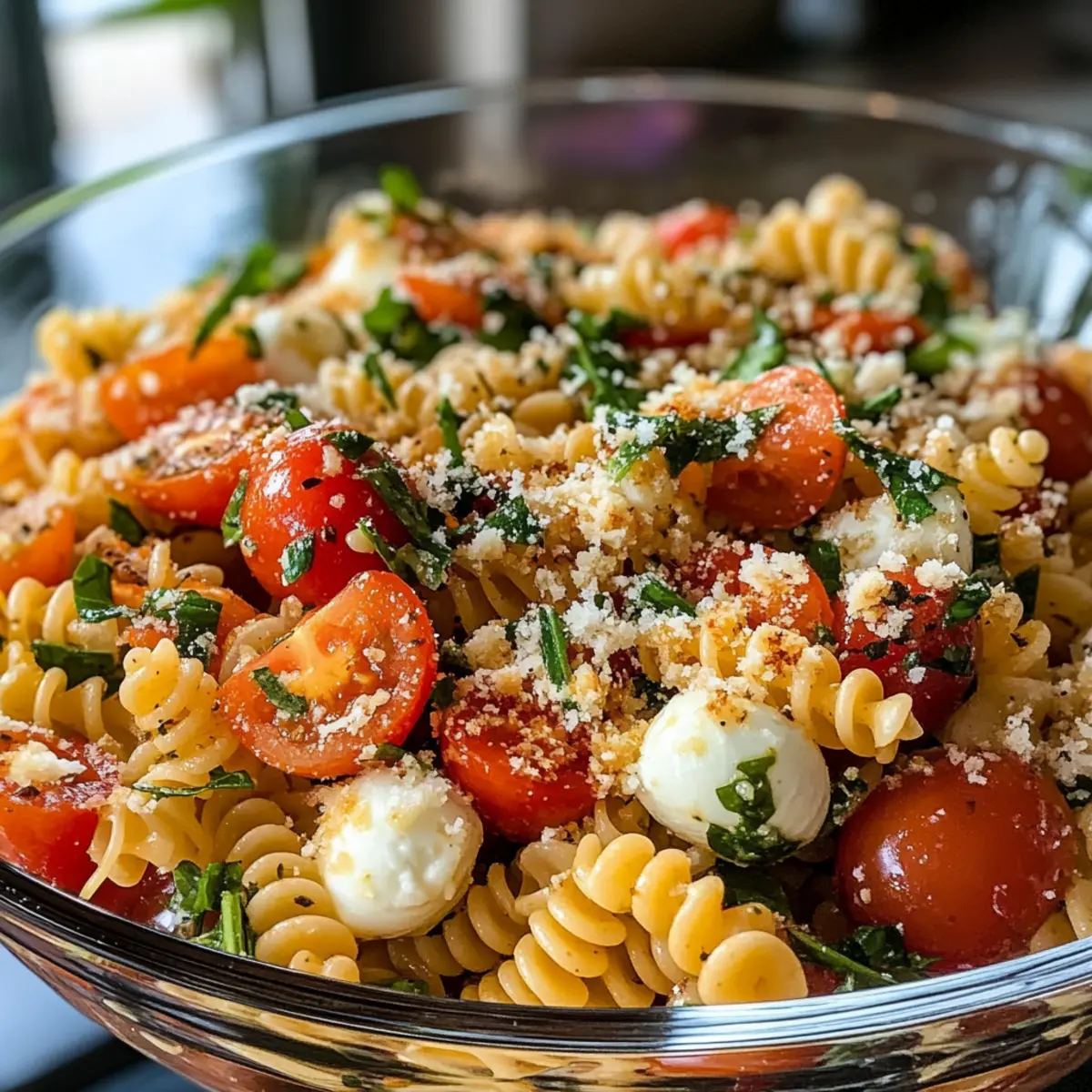 As summer days roll in, I find myself craving something bright and refreshing. That’s when my Cold Bruschetta Pasta Salad comes into play, bursting with juicy cherry tomatoes, fragrant garlic, and aromatic basil. This quick recipe is perfect for those impromptu gatherings, packed lunches, or simply a light dinner when the heat calls for something cool. It’s not just easy to prepare in under 30 minutes; it’s also a delicious vegetarian option brimming with vitamins and antioxidants. Plus, you can easily customize it with gluten-free or dairy-free options to suit your needs. Are you ready to take your taste buds on a summer adventure? Why is Bruschetta Pasta Salad a Must-Try? Freshness at its finest: This dish embraces summer’s flavors with vibrant tomatoes, aromatic basil, and savory garlic, making it irresistibly refreshing. Quick and Easy: Ready in just 30 minutes, perfect for those busy weekdays or last-minute guests. Versatile Options: Easily customize to your dietary needs with gluten-free or dairy-free modifications, allowing everyone to enjoy! Crowd-Pleasing Appeal: Whether served as a standalone side or paired with grilled chicken, like in my Sweet Spicy Pasta, it’s a guaranteed hit! Simple Texture Magic: The mix of creamy mozzarella and crunchy breadcrumbs reflects the classic bruschetta experience, satisfying your cravings for varied textures. Pack your lunch, whip it up for a gathering, or enjoy it as a light dinner—this Bruschetta Pasta Salad is here to brighten your meals! Bruschetta Pasta Salad Ingredients For the Salad Small Pasta Shape – This is the base of the salad; opt for any small pasta like bowties or cavatappi, or a gluten-free option. Cherry Tomatoes – These provide natural sweetness and moisture; using vine-ripened ones will elevate the flavor. Garlic – Fresh garlic adds aromatic depth; feel free to use garlic powder if needed for the breadcrumbs. Shallot – Offers a mild onion flavor, which is optional and can be omitted based on preference. Mini Bocconcini (Mozzarella Balls) – They add a creamy richness; substitute with grated parmigiano-reggiano for a delicious alternative, or omit for dairy-free. Fresh Basil – Brings bright, herby notes to the dish; you can use parsley or another herb if desired. Red Wine Vinegar – Adds a lovely acidity to balance flavors; balsamic vinegar can provide a sweeter touch. Salt + Pepper – Essential seasonings that enhance and elevate the dish’s overall flavor. For the Crunch Olive Oil – Acts as a dressing base to provide richness; extra virgin olive oil truly enhances the flavor profile. Breadcrumbs (optional) – These provide that sought-after crunch and mimic the bruschetta texture we all love; gluten-free bread works well for a GF version. This Bruschetta Pasta Salad combines fresh ingredients with simple preparation for a delightful meal! Step‑by‑Step Instructions for Bruschetta Pasta Salad Step 1: Cook Pasta Bring a large pot of water to a rolling boil over high heat. Add your choice of small pasta, such as bowties or cavatappi, and cook according to package instructions until al dente, roughly 8–10 minutes. Drain the pasta and rinse with cold water to stop the cooking process, ensuring each piece remains separate and ready for the delicious Bruschetta Pasta Salad. Step 2: Prep Salad Ingredients While the pasta is cooking, take a large mixing bowl and add halved cherry tomatoes, minced garlic, chopped shallot (if using), mini bocconcini, fresh basil leaves, olive oil, and red wine vinegar. Season with salt and pepper to taste. Toss the mixture gently and let it rest for about 5 minutes, allowing the flavors to meld beautifully, creating a vibrant base for your Bruschetta Pasta Salad. Step 3: Make Breadcrumbs For the optional crunchy topping, preheat a skillet over medium-high heat. Toast slices of bread until golden brown and crispy, approximately 3–4 minutes per side. Tear the toasted bread into pieces and pulse them in a food processor until you achieve crumbly breadcrumbs. Sauté these crumbs in olive oil (and a sprinkle of garlic powder if desired) in the same skillet until they crisp up, about 2–3 minutes, adding delightful texture to your salad. Step 4: Combine Salad Once the pasta has cooled and the salad ingredients have marinated, add the drained pasta to the bowl with the tomato mixture. Next, gently fold in the crunchy breadcrumbs for that beloved bruschetta texture. Stir everything thoroughly to combine, adjusting seasoning with additional salt and pepper as needed. This step ensures that each bite of your Bruschetta Pasta Salad is packed with flavor and delightful crunch. What to Serve with Cold Bruschetta Pasta Salad Looking to elevate your dining experience? Pairing this delightful dish with complementary sides and beverages creates a feast for the senses. Grilled Chicken: Juicy and smoky, grilled chicken brings a hearty protein component that perfectly complements the light flavors of the salad. Roasted Vegetables: A medley of colorful roasted veggies adds earthy depth and extra nutrients, enhancing the freshness of the pasta salad. Garlic Bread: Crispy and buttery, garlic bread offers a satisfying crunch and pairs beautifully with the bruschetta-inspired flavors of the salad. Caprese Skewers: Thread juicy cherry tomatoes, creamy mozzarella, and fresh basil on skewers for a good bite-sized companion that echoes the salad’s ingredients. Chilled White Wine: A crisp Sauvignon Blanc or a refreshing Pinot Grigio brings acidity and allure, enhancing the overall experience of the summer meal. Lemon Sorbet: For dessert, serve lemon sorbet to cleanse the palate. Its bright and zesty flavor provides a sweet, cooling finish after the savory dish. Mixed Green Salad: Lightly dressed greens introduce a peppery bite, adding a fresh contrast to the warm, inviting flavors of the pasta salad. Sparkling Water: Serve with a splash of citrus for a fizzy, hydrating drink that refreshes you