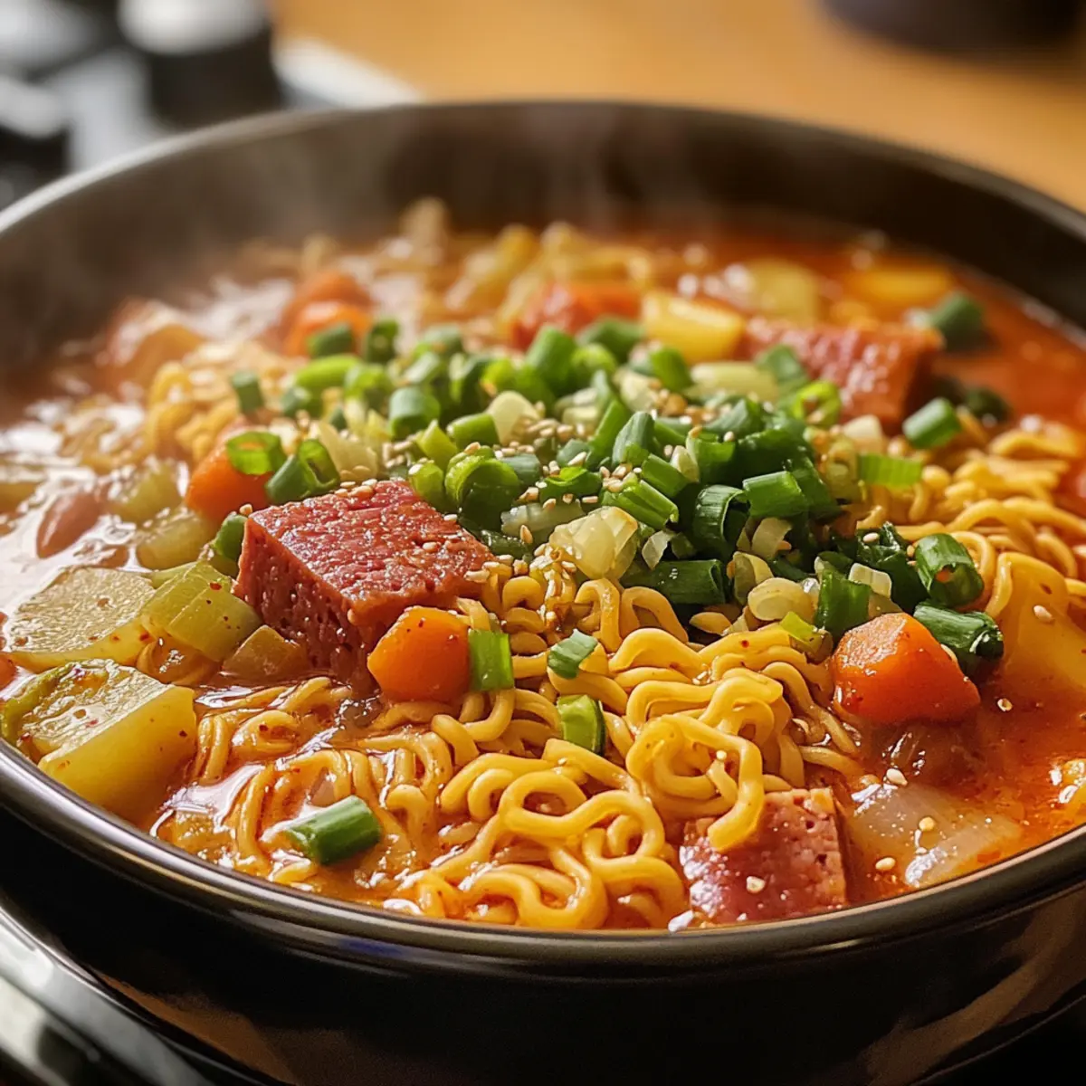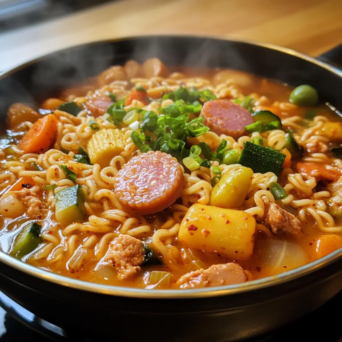 On a chilly evening, nothing beats the cozy embrace of a warm stew simmering on the stove, and that’s where Budae Jjigae steps in. This One-Pot Korean Army Stew combines bold flavors, rich spices, and plenty of customizable ingredients to create a meal that’s both comforting and fun to make. Imagine a vibrant mix of umami-rich kimchi, savory spam, and tender ramen noodles swirling in a delectable broth. What I love most is that it’s quick to prepare, making it a perfect solution for busy weeknights or a gathering with friends. Plus, you can easily switch up the ingredients based on what you have on hand. Ready to dive into this hearty dish that’s sure to become a favorite? Let’s get cooking! Why is Budae Jjigae a Must-Try? Simplicity, this one-pot wonder allows anyone to whip up a delicious meal with ease. Bursting with Flavor from the harmonious blend of spices and ingredients, it’s a delight for your taste buds. Customizable Options mean you can adapt it to fit your pantry staples or dietary preferences effortlessly. Hearty Comfort makes for the ultimate cozy dish, perfect for family dinners or cozy nights in. Plus, Quick to Prepare, this stew can be on the table in no time, making it ideal for those busy evenings. If you’re looking for more comforting meals, don’t miss our guide on one-pot wonders that will elevate your weeknight dinners! Budae Jjigae Ingredients • Dive into the delightful components of this Korean Army Stew! For the Stew Spam – Adds savory depth and protein; substitute with bacon or tofu for a vegetarian option. Sausages – Provides a smoky flavor; any type of cooked sausage works wonderfully here. Tofu – Introduces a soft texture and protein; firm tofu is preferred, but can be omitted for a meat-heavy dish. Rice Cakes – Brings a chewy texture and substance; replace with additional noodles if desired. Onion – Adds sweetness and layers of flavor; yellow or sweet onions are the best choices. Enoki Mushrooms – Contributes a delicate flavor and texture; can be swapped with shiitake or button mushrooms. Kimchi – Infuses spice and tanginess; adjust the amount based on your heat preference. Gochugaru (Korean Chili Flakes) – Provides both heat and color; red pepper flakes can be used in a pinch. Gochujang (Korean Chili Paste) – Adds depth and umami; adjust to taste for preferred spice levels. Soy Sauce – For added saltiness and flavor; tamari works as a gluten-free alternative. Mirin – Introduces sweetness; mix vinegar and sugar as a substitute if needed. Sugar – Balances flavors; omit for a lower-sugar option. Black Pepper – For seasoning; switch to white pepper for a different flavor profile. Chicken Broth – Serves as the stew’s base; vegetable broth is a suitable alternative for vegetarians. Ramen Noodles – Essential for texture and heartiness; any instant noodles can do the trick. Cheese – A creamy garnish; opt for mild cheeses like mozzarella, or omit for a dairy-free version. Green Onions – Adds a fresh crunch as a garnish; chives can be used if needed. Step‑by‑Step Instructions for Budae Jjigae Step 1: Prepare the Sauce In a mixing bowl, combine 2 tablespoons of minced garlic, 1 tablespoon of gochugaru, and 2 tablespoons of gochujang. Add 2 tablespoons of soy sauce, 1 tablespoon of mirin, 1 teaspoon of sugar, and a pinch of black pepper. Whisk these ingredients together until they form a smooth sauce. Set this flavorful blend aside as it will enrich your Budae Jjigae. Step 2: Combine Ingredients Take a shallow pot and place it over medium heat. Layer in 1 cup of sliced spam, 1 cup of cooked sausage, and 1 cup of diced firm tofu. Next, add in 1 cup of rice cakes, 1 sliced onion, 1 cup of enoki mushrooms, and 1 cup of kimchi. This blend of ingredients creates a hearty base for your Budae Jjigae that’s visually inviting and full of flavor. Step 3: Add Broth and Sauce Pour in 4 cups of chicken broth over the layered ingredients in the pot. Then, evenly drizzle the prepared sauce over the top. Increase the heat and cover the pot, bringing the stew to a gentle boil. As it simmers, the aromas will fill your kitchen, signaling that your Budae Jjigae is on its way to perfection. Step 4: Add Noodles & Cheese Once the stew reaches a bubbling boil, carefully remove the lid and stir in 2 packs of ramen noodles. If you like cheese, sprinkle in 1 cup of shredded mozzarella. Cover the pot again and allow it to cook for about 3-5 minutes, or until the noodles are tender but still firm, soaking in all the spicy goodness of the broth. Step 5: Garnish & Serve After the noodles are cooked to your liking, remove the pot from the heat. Garnish your steaming pot of Budae Jjigae with freshly sliced green onions for a burst of freshness. Serve this comforting stew hot, ideally with a side of steamed rice to balance the robust flavors and create a delightful meal experience. How to Store and Freeze Budae Jjigae Fridge: Store leftovers in an airtight container in the refrigerator for up to 3 days. This helps retain the stew’s rich flavors while keeping it fresh. Freezer: For longer storage, freeze Budae Jjigae in a freezer-safe container for up to 2 months. Allow it to cool completely before sealing to prevent freezer burn. Reheating: When ready to enjoy, thaw overnight in the fridge, then reheat gently on the stove until heated through. Add a splash of broth or water if it appears thickened. Airtight Storage: Always ensure that containers are airtight to preserve the taste and prevent freezer odors from seeping in, so your Budae Jjigae can be as delicious as the first time. Make Ahead Options Budae Jjigae is an excellent choice for meal prep, making it easier for busy home cooks to enjoy this comforting dish! You can prep the flavorful sauce and chop the vegetables (like onion and mushrooms) up to 24 hours in advance and store them in the refrigerator. Additionally, layer the proteins (spam, sausage, tofu) and kimchi in the pot withou