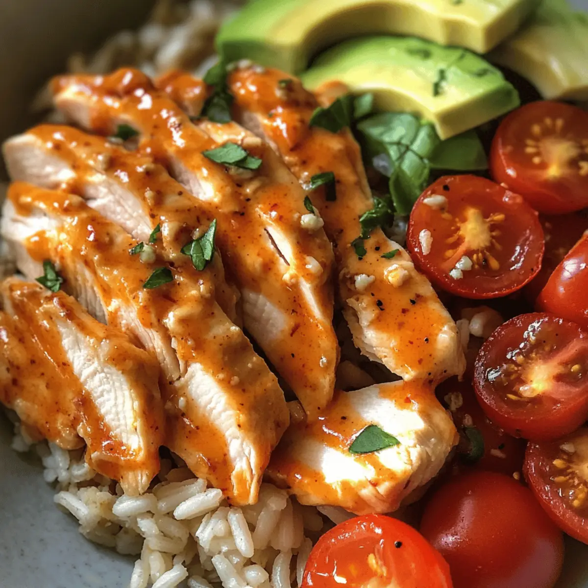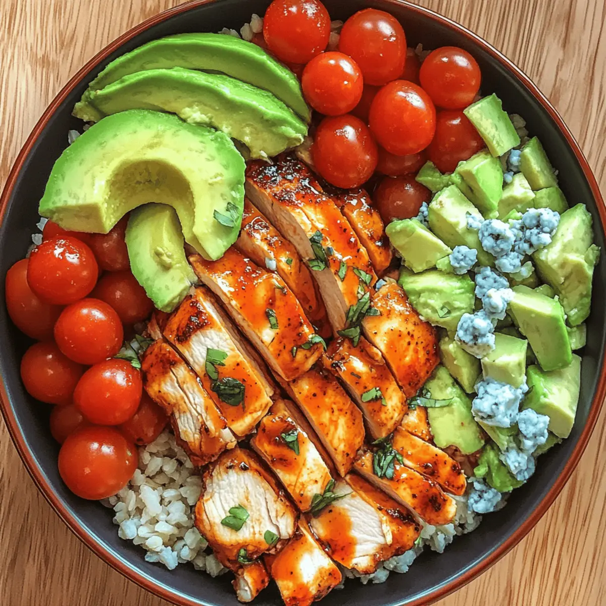 There’s something exhilarating about a meal that packs not just heat, but a whole lot of flavor! These Buffalo Chicken Bowls are about to become your go-to dish for an easy dinner that satisfies cravings without the fuss. Perfectly spiced chicken rests on a wholesome base of brown rice, topped with colorful veggies and a cool drizzle of ranch. You’ll whip this delicious, comforting meal up in under an hour, making it an ideal choice for busy weeknights or casual gatherings with friends. Packed with protein and fiber, these bowls are not just tasty—they’re a meal prep dream come true! Are you ready to elevate your dinner routine with this spicy sensation? Why Love Buffalo Chicken Bowls? Irresistible flavors come together effortlessly in these bowls, making dinner stress-free and delicious. Quick preparation: In just 45 minutes, you’ll have a mouthwatering meal ready to enjoy. Nutritious base: With fiber-rich brown rice and fresh veggies, you won’t have to compromise on health. Meal prep friendly: These bowls store well and are perfect for quick lunches during the week. Crowd pleaser: Whether you’re serving family or friends, the vibrant colors and bold flavors will impress everyone. Versatile options: Customize with your favorite toppings, or try variations by exploring dishes like Crockpot Chicken Corn Chowder or Fiery Chicken Ramen. Buffalo Chicken Bowls Ingredients • Get ready to create flavors that pop! For the Chicken Chicken Breast – A lean protein that absorbs spices beautifully, ensuring a juicy base. Hot Buffalo Sauce – This is what makes your dish come alive with its signature spicy kick. Olive Oil – Helps spices cling to the chicken, achieving a perfect golden-brown finish. Garlic Powder – A hint of aromatic depth that elevates the seasoning mix. For the Rice Base Brown Rice – Hearty and fiber-rich, it soaks up all the wonderful flavors of the dish. Corn Kernels – Add a touch of sweetness and delightful texture to your bowl. Black Beans – They pack protein and fiber while adding a creamy texture. For the Toppings Cherry Tomatoes – Bright and juicy, they introduce a splash of acidity. Red Onion – Offers a sharp bite and crunchy contrast that balances the flavors. Avocado – Creamy and full of healthy fats, it perfectly complements the heat of the chicken. Blue Cheese – Adds a tangy sharpness that enhances the overall flavor profile. Ranch Dressing – A cooling drizzle that ties all the flavors together beautifully. Fresh Cilantro – A sprinkle on top for a pop of color and fresh flavor; it can be omitted if preferred. These Buffalo Chicken Bowls are designed to please, blending an array of flavors and textures that make for a delightful meal. Step‑by‑Step Instructions for Buffalo Chicken Bowls Step 1: Preheat the Oven Begin by preheating your oven to 400°F (200°C). This ensures that your chicken cooks evenly and develops a beautiful golden-brown color. While the oven heats up, gather a baking dish and line it with parchment paper for easy cleanup after your delicious Buffalo Chicken Bowls are made. Step 2: Prepare the Spice Mixture In a small bowl, mix together olive oil, garlic powder, onion powder, smoked paprika, salt, and pepper. This spice mixture will infuse your chicken with robust flavors. Use a whisk or spoon to combine the ingredients until smooth, ensuring every element is well incorporated and ready to coat the chicken. Step 3: Season the Chicken Take your chicken breasts and rub the prepared spice mixture evenly over each piece. Make sure to coat both sides for maximum flavor. The olive oil will help the spices adhere to the chicken, creating a flavorful crust once baked. Set the seasoned chicken aside for a few moments while you prepare the baking dish. Step 4: Bake the Chicken Place the seasoned chicken breasts in the prepared baking dish, ensuring they are spaced out for even cooking. Bake in the preheated oven for 20-25 minutes, or until the chicken reaches an internal temperature of 165°F (74°C) and is no longer pink in the center. You’ll know it’s done when the juices run clear and a tantalizing aroma fills your kitchen. Step 5: Rest and Slice the Chicken Once baked, remove the chicken from the oven and let it rest for about 5 minutes. This resting period is crucial as it allows the juices to redistribute, keeping the chicken tender and juicy. After resting, slice the chicken into strips or bite-sized pieces to make it easy to top onto your bowls. Step 6: Prepare the Rice Base While the chicken is resting, cook your brown rice according to package instructions. Once the rice is fluffy and fully cooked, transfer it to a large mixing bowl. Add in the corn, black beans (drained and rinsed), cherry tomatoes, and diced red onion, stirring gently to mix everything together. This colorful blend will form the hearty base for your Buffalo Chicken Bowls. Step 7: Assemble the Bowls Divide the flavorful rice mixture among serving bowls, creating an inviting and colorful base. Next, layer the sliced buffalo chicken on top of each bowl, allowing the flavors to meld beautifully. The combination of rice and chicken will provide a satisfying and hearty foundation for your meal. Step 8: Add Toppings Top each bowl with sliced avocado and crumbled blue cheese for a delightful contrast of textures and flavors. Drizzle buffalo sauce over the chicken to kick up the heat, then add a refreshing drizzle of ranch dressing to balance the spice. If desired, finish with a sprinkle of fresh cilantro for a burst of color and freshness. Step 9: Serve Immediately Your Buffalo Chicken Bowls are now ready to be enjoyed! Serve them immediately while hot, ensuring that each bowl captures the wonderful medley of vibrant ingredients. This hearty meal is perfect for a gathering or a comforting weeknight dinner, sure to satisfy any appetite and please all palates. What to Serve with Buffalo Chicken Bowls To create a complete meal experience that satis
