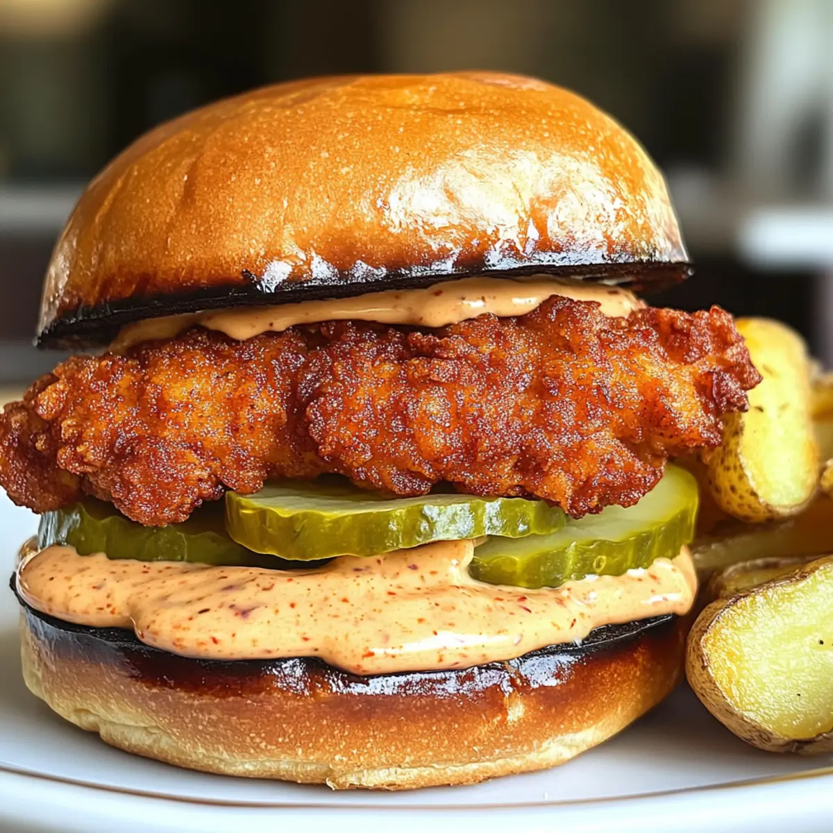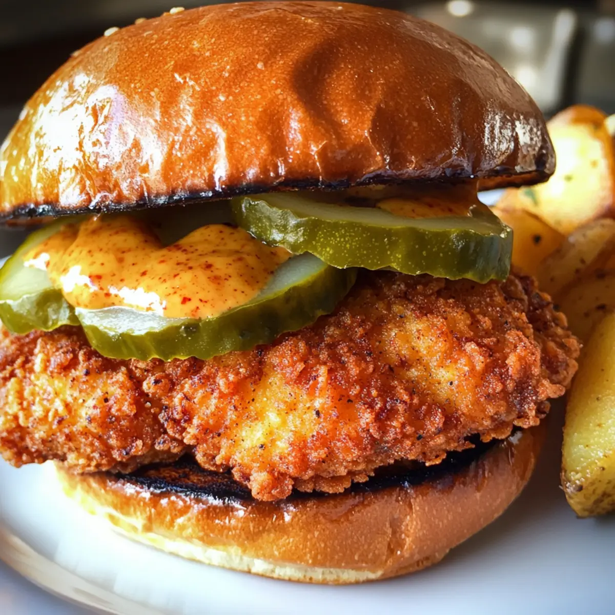 As the tantalizing aroma of spices envelops my kitchen, I’m reminded of the vibrant Cajun culture that dances from plate to palate. There’s something exhilarating about biting into a Cajun Crispy Chicken Sandwich with Garlic Aioli—it’s a little piece of comfort that feels like a warm hug after a long day. In just 30 minutes, you can create this easy yet utterly satisfying meal, perfect for spontaneous family dinners or weekend gatherings with friends. The crispy chicken, lovingly seasoned and nestled in a toasted brioche bun, pairs beautifully with a zesty garlic aioli and crunchy pickles, while golden potato wedges make for the ideal sidekick. Ready to turn your home into a beloved eatery? Let’s dive into the recipe that’s sure to become a staple in your kitchen! Why is this sandwich a must-try? Mouthwatering Flavor: The blend of Cajun spices and zesty garlic aioli amps up the flavor of this sandwich, making every bite a burst of excitement. Quick and Easy: With just 30 minutes needed from start to finish, you can whip up this delicious meal even on the busiest days—no more fast food! Family Favorite: Its crispy chicken and delightful sauce appeal to both kids and adults alike, making it perfect for family dinners or casual get-togethers. Versatile Pairings: Enjoy it with golden potato wedges or feel free to add extra toppings like fresh lettuce and tomato for a delightful crunch. Don’t forget to check out our Cheesy Garlic Chicken for more savory options! Crowd-Pleasing Comfort: You’re not just serving a sandwich; you’re providing a cozy meal that feels like a warm hug after a long day. Get ready to impress your guests! Cajun Crispy Chicken Sandwich Ingredients • Get ready to savor your new favorite recipe! For the Chicken Chicken Cutlets – The star protein; feel free to swap with chicken thighs for juiciness. Cajun Spice Blend – Brings that signature spiciness; adjust to suit your heat preference. Flour – Creates a crispy coating; for gluten-free, use almond flour. Cornstarch – Essential for extra crispiness in the breading—don’t skip this! For the Garlic Aioli Mayonnaise – Adds creaminess; substitute with Greek yogurt for a healthier option. Garlic – Freshly minced for robust flavor; roasted garlic adds a sweeter note. Lemon Juice – Brightens up the aioli and balances the richness of the mayonnaise. Hot Sauce – A dash enhances flavor; choose your favorite variety! For the Side Potatoes – The base for crispy wedges; Russet or Yukon Gold are great choices. Cooking Oil – Necessary for frying and for roasting the wedges; canola or vegetable oil work well. Sliced Dill Pickles – Offers crunch and acidity; jalapeños can substitute if you crave more heat. This Cajun Crispy Chicken Sandwich with Garlic Aioli is crafted to impress and satisfy! Step‑by‑Step Instructions for Cajun Crispy Chicken Sandwich with Garlic Aioli Step 1: Preheat and Prep Begin by preheating your oven to 425°F (220°C). While the oven warms up, wash and dry your potatoes. This will ensure they roast evenly, turning crispy and delicious. Next, gather all your ingredients, including the Cajun spices, flour, and mayonnaise to streamline your cooking process. Step 2: Prepare Potato Wedges Cut the potatoes into ½-inch-thick wedges, aiming for even sizes to ensure uniform cooking. Toss them in a bowl with a drizzle of oil, Cajun spice, salt, and pepper until well coated. Spread the seasoned wedges on a baking sheet in a single layer and roast for 20-25 minutes, flipping halfway through, until they’re golden brown and tender. Step 3: Make the Garlic Aioli In a small bowl, mix together mayonnaise, minced garlic, lemon juice, and a few dashes of hot sauce. This garlic aioli adds a delightful zing to your sandwiches! Stir well until fully combined, then taste and adjust the seasoning if needed. Set the sauce aside, allowing the flavors to meld while you prepare the chicken. Step 4: Prep the Chicken Cutlets Take each chicken cutlet and gently pound them to a thickness of about ⅓ inch, ensuring they cook evenly. Season both sides generously with the Cajun spice blend, embracing that bold flavor. Next, prepare a coating by mixing flour, cornstarch, salt, and pepper in a shallow dish for that perfect crispy exterior when frying. Step 5: Fry the Chicken Heat a generous amount of cooking oil in a large skillet over medium-high heat. Carefully place the seasoned chicken cutlets into the hot oil and fry for 3-5 minutes on each side or until they are beautifully golden brown and cooked through. Once done, transfer the chicken to a plate lined with paper towels to drain any excess oil. Step 6: Toast the Buns In another pan, melt a little butter over medium heat and add the brioche buns, cut side down. Toast them until they become golden and slightly crisp. This step adds a rich flavor and helps prevent the buns from becoming soggy when assembled. Remove from the heat once they’re toasted to perfection. Step 7: Assemble the Sandwiches Spread a generous layer of the garlic aioli on the bottom half of each toasted bun. Place a crispy Cajun chicken cutlet on top, followed by crunchy dill pickles for that delightful contrast. Finish the sandwiches with the top half of the bun, and you’re all set to indulge in this Cajun Crispy Chicken Sandwich with Garlic Aioli! Step 8: Serve with Wedges Serve your delicious sandwiches alongside the golden potato wedges you prepared earlier. This crispy side complements the spicy flavors of the sandwich beautifully. Gather your family and friends, and enjoy this delightful meal that’s sure to impress and satisfy everyone at the table! What to Serve with Cajun Crispy Chicken Sandwich with Garlic Aioli Elevate your meal experience with delightful sides and pairings that complement the vibrant flavors of your sandwich. Golden Potato Wedges: These crispy, seasoned wedges balance the sandwich’s spice while adding a savory crunch. Perfect for dipping i