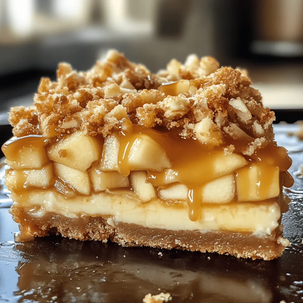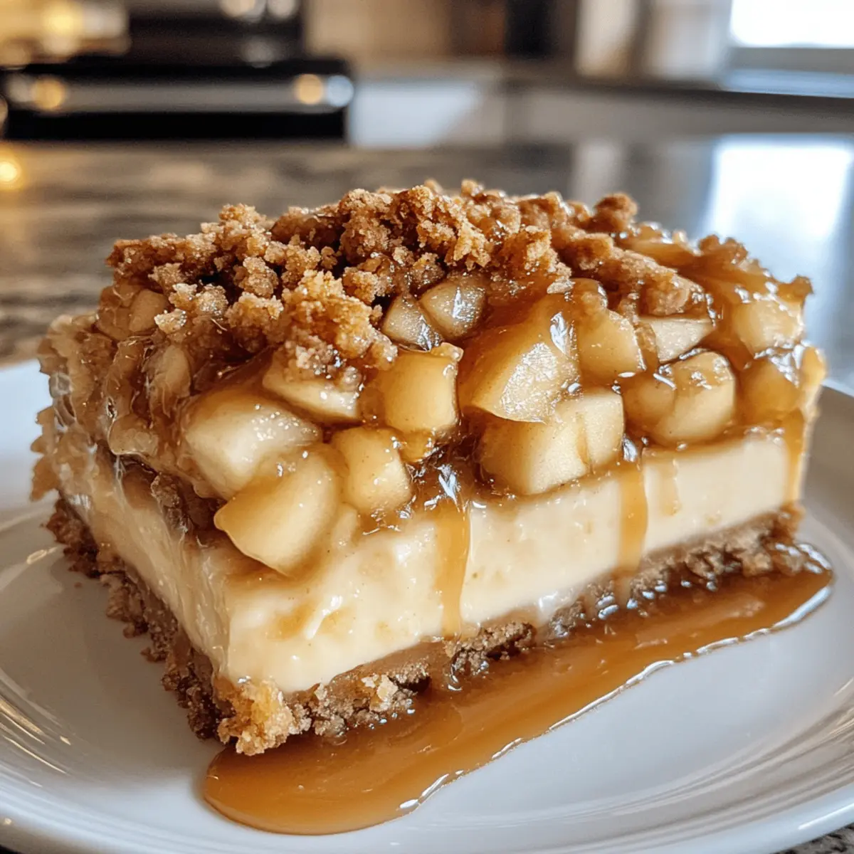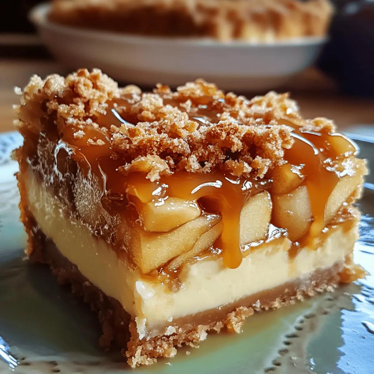 As I stood in my kitchen, the scent of warm apples and buttery crust wafted through the air, instantly transporting me to cozy autumn afternoons. These Caramel Apple Cheesecake Bars are a delightful fusion of creamy texture and fruity goodness, making them a must-try for anyone who loves homemade desserts. With quick prep and the ability to impress guests at any gathering, this recipe strikes the perfect balance between indulgence and comfort. Each bite is a sweet surprise, featuring a crumbly streusel topping and silky caramel drizzle that elevates your baking game. Curious about how to create this delicious treat that’s destined to become a favorite? Let’s dive into the recipe! Why Are These Bars So Irresistible? Irresistible Flavor: The delightful combination of creamy cheesecake and tart apples guarantees a burst of flavor in every bite. Quick and Easy: With a simple prep process, you can whip these up in no time, making them perfect for last-minute gatherings. Versatile Options: Feel free to experiment with apple varieties or even try different toppings like nuts or chocolate for a personal twist! Perfect for Sharing: These bars are great for potlucks or dessert buffets, easily sliced into portions, so everyone can enjoy them. Best of all, they’re not just for fall—try them year-round, and consider pairing them with a rich scoop of ice cream for an unforgettable treat alongside my Berry Swirl Cheesecake! Caramel Apple Cheesecake Bars Ingredients For the Crust • 2 cups all-purpose flour – This forms the base; switch to whole wheat for a nuttier flavor. • 1/2 cup packed brown sugar – Provides sweetness and moisture; light brown sugar is a fine alternative. • 3/4 cup cold butter, cubed – Essential for richness; margarine or vegan butter works too. For the Cheesecake Filling • 2 packages (8 ounces each) cream cheese, softened – Key to the creamy layer; Neufchâtel is a lighter option. • 1/2 cup plus 2 tablespoons sugar, divided – Sweetens both the filling and apple mixture—adjust to taste. • 1 teaspoon vanilla extract – Enhances flavor; vanilla bean paste is an excellent substitute for depth. • 2 large eggs, lightly beaten – Binds the filling together; flax eggs can replace them for a vegan version. For the Apple Layer • 3 medium tart apples, peeled and finely chopped – Adds flavor and texture; Granny Smith apples are recommended for tartness. • 1/2 teaspoon ground cinnamon – Infuses warmth; apple pie spice can be swapped for extra flavor. • 1/4 teaspoon ground nutmeg – Complements the apples nicely; you can omit if preferred. For the Streusel Topping • 3/4 cup all-purpose flour – Similar role as in the crust, ensuring a crumbly texture. • 3/4 cup packed brown sugar – Adds sweetness to the topping; feel free to reduce for less sweetness. • 1/2 cup quick-cooking oats – Introduces crunch; use rolled oats for more chewiness. • 1/3 cup cold butter, cubed – Provides richness; plant-based butter is a valid alternative. • 1/3 cup hot caramel ice cream topping – Adds sweetness and moisture, can be homemade or store-bought, enhancing your Caramel Apple Cheesecake Bars. Now, let’s move on to creating this delightful dessert that everyone will adore! Step‑by‑Step Instructions for Caramel Apple Cheesecake Bars Step 1: Preheat the Oven Begin by preheating your oven to 350°F (175°C). This temperature is essential for achieving that perfect golden crust on your Caramel Apple Cheesecake Bars. While the oven heats, gather your ingredients and ensure your 13×9-inch baking pan is greased to prevent any sticking, setting the stage for smooth bar removal later. Step 2: Prepare the Crust In a medium bowl, combine 2 cups of all-purpose flour and 1/2 cup of packed brown sugar. Cut in 3/4 cup of cold, cubed butter with a pastry cutter until the mixture resembles coarse crumbs. Press this crumbly mixture firmly into the bottom of your greased baking pan. Bake for 15-18 minutes, or until it turns light brown, giving you a deliciously firm base for the bars. Step 3: Make the Cheesecake Filling While the crust is baking, beat together 2 packages (8 ounces each) of softened cream cheese, 1/2 cup of sugar, and 1 teaspoon of vanilla extract in a large bowl. Mix until smooth and creamy, ensuring there are no lumps, then gently blend in 2 lightly beaten eggs until fully incorporated. Spread this rich cream cheese filling evenly over the baked crust using a spatula, readying it for the apple layer. Step 4: Prepare the Apple Mixture In another bowl, toss together 3 peeled and finely chopped medium tart apples with 1/2 teaspoon of ground cinnamon, 1/4 teaspoon of ground nutmeg, and the remaining 2 tablespoons of sugar. This mixture brings vibrant flavor to your Caramel Apple Cheesecake Bars. Spoon the apple mixture evenly over the cream cheese layer, giving depth and sweetness to every bite! Step 5: Create the Streusel Topping For that irresistible crunch, mix 3/4 cup of all-purpose flour, 3/4 cup of packed brown sugar, and 1/2 cup of quick-cooking oats in a bowl. Cut in 1/3 cup of cold, cubed butter until the mixture becomes crumbly, resembling small pebbles. Sprinkle this streusel topping generously over the apple layer, ensuring an even distribution for the best texture. Step 6: Bake the Bars Place the assembled baking dish in your preheated oven and bake for an additional 25-30 minutes. The bars are done when the filling is set and the topping is golden brown. You’ll see a slight jiggle in the cream cheese layer that will firm upon cooling—this is the visual cue to look out for! Step 7: Cool and Drizzle Once baked, remove your Caramel Apple Cheesecake Bars from the oven and allow them to cool on a wire rack for about one hour. This cooling step is crucial for setting up the layers. After they have cooled, drizzle with 1/3 cup of hot caramel ice cream topping, enhancing the flavors and appearance beautifully. Step 8: Chill and Serve Refri