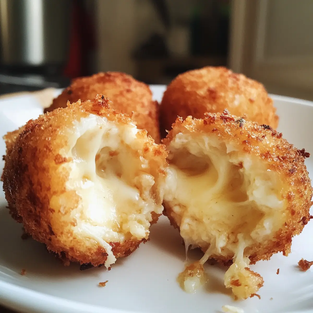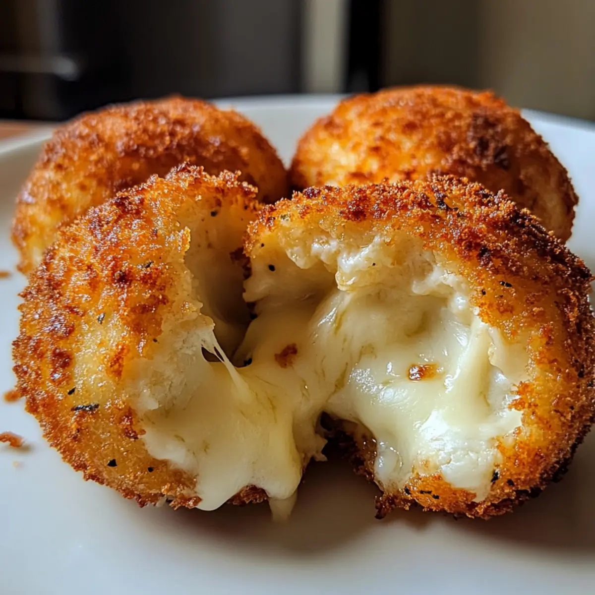 As I stood in the kitchen, the rich aroma of garlic dancing through the air, I was reminded of the magic that happens when simple ingredients meet a little love and creativity. Enter Crispy Cheese Croquettes—a dish that beautifully marries the delicate textures of Japanese and French flavors into one irresistible snack. This recipe doesn’t just satisfy cravings; it offers a quick and delightful way to impress friends and family. With their creamy potato base and gooey mozzarella center, these croquettes are the ultimate crowd-pleasers, perfect for any gathering or cozy night in. Ready to bring a touch of gourmet comfort food into your kitchen? Let’s dive into this cheesy goodness together! Why Are Cheese Croquettes So Irresistible? Crispy perfection: The crunchy exterior contrasts with the creamy, cheesy center, creating an unforgettable bite. Flavorful fusion: Combining French and Japanese styles, these croquettes offer a unique culinary experience that excites the palate. Easy preparation: With straightforward steps, you don’t need to be a gourmet chef to impress. Versatile serving: Pair with your favorite condiment, like ketchup or spicy sauce, for a delightful twist. Crowd-pleasing charm: Perfect for parties or family gatherings, they’re a hit with guests young and old. If you love comfort food, these Cheese Fatayer Savory pockets might also pique your interest! Cheese Croquettes Ingredients For the Croquette Base Russet Potatoes (or Yukon Gold) – The foundation for these croquettes; ideal for a creamy texture. Garlic (smashed) – Adds aromatic depth to the mixture; use fresh for a stronger flavor. Salt – Essential for enhancing every flavor; adjust to your taste preference. Cream Cheese – Provides creaminess and tang; consider ricotta for a lighter alternative. Butter – Adds richness and aids in mashing; unsalted is recommended for better control over seasoning. Black Pepper – Introduces a subtle kick; freshly cracked is best for maximum flavor. For the Breading Eggs – Acts as a binder for the croquettes; flax eggs are a great vegan substitute. All-purpose Flour – Helps create a crispy coating; swap with gluten-free flour for a gluten-free version. Breadcrumbs – Creates that delicious crunchy exterior; use panko for an extra-crispy finish. For the Cheesy Center Mozzarella (cut into 1-inch cubes) – Ensures a melty delight inside; cheddar or gouda can be used for different flavor profiles. Step‑by‑Step Instructions for Cheese Croquettes Step 1: Potato Preparation Start by peeling and chopping the Russet potatoes into 1-inch cubes. Place them in a large pot with smashed garlic and a pinch of salt. Cover with cold water, bringing it to a boil, then reduce the heat and let it simmer for about 15 minutes until the potatoes are tender and easily pierced with a fork. Step 2: Mash Mixture Once the potatoes are tender, drain them and remove the garlic. In the same pot, add cream cheese, butter, and freshly cracked black pepper. Use a potato masher to mix until thoroughly combined, but leave some texture for a delightful bite. This creamy base is essential for your Cheese Croquettes. Step 3: Breading Setup Prepare your breading station by whisking eggs, flour, and a sprinkle of salt in a shallow dish until smooth. In a separate dish, spread out the breadcrumbs. This dual setup will make it easy to coat your croquettes later. Make sure your ingredients are ready before you proceed to forming the croquettes. Step 4: Form Croquettes Take about ½ cup of the mashed potato mixture and flatten it in your palm. Place a mozzarella cube in the center and wrap the mashed potato around it, shaping it into a ball. Dip the croquette first in the egg wash, ensuring it’s fully coated, and then roll it in the breadcrumbs until completely covered for that crispy texture. Step 5: Cooking In a deep pan or fryer, heat 1-inch of oil to 350°F (175°C). Carefully add the coated croquettes to the hot oil in batches, frying them for 2-3 minutes per side or until they are golden brown and crispy. Use a slotted spoon to remove them and drain on paper towels before serving these delightfully cheesy croquettes. Storage Tips for Cheese Croquettes Room Temperature: Let cooked croquettes cool to room temperature before storing. They can be kept out for up to 2 hours, but don’t leave them longer for safety. Fridge: Store leftover cheese croquettes in an airtight container in the refrigerator for up to 3 days. This will help maintain their flavor and texture. Freezer: For longer storage, freeze croquettes before frying. Place them in a single layer on a baking sheet, freeze until solid, then transfer to a freezer-safe bag for up to 3 months. Reheating: To reheat, bake frozen croquettes at 375°F (190°C) for 15-20 minutes or until heated through and crispy. This keeps them deliciously crunchy! Cheese Croquettes Variations & Substitutions Feel free to get creative with these cheese croquettes and take them to the next level of yumminess! Herbs & Spices: Add chives, parsley, or your favorite herbs to the potato mix for a fresh flavor boost. A hint of garlic powder can also elevate the taste. Cheese Alternatives: Experiment with cheddar, gouda, or pepper jack for a different cheesy flavor profile. Each option offers its own unique twist that can delight your taste buds! Gluten-Free Option: Use gluten-free flour and gluten-free breadcrumbs to make these croquettes suitable for gluten-sensitive folks. The taste will still be just as delightful! Creamy Additions: Swap cream cheese for ricotta or mascarpone to bring a lighter, creamier texture to the filling. This swap introduces an even richer flavor. Spicy Kick: Mix in a dash of cayenne pepper or chili flakes for a spicy twist. This little kick will keep your taste buds dancing. Smoky Flavor: Add a touch of smoked paprika to the potato mixture for a vibrant, smoky flavor. It’s a subtle change that makes a world of difference! Vegetable Medley