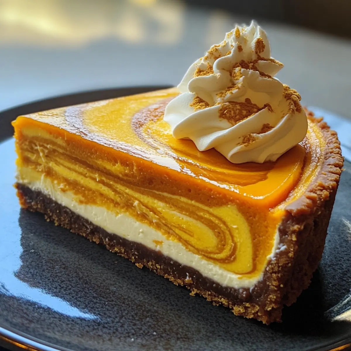 The moment the air turns crisp and the leaves begin to flaunt their vibrant colors, my thoughts shift to comforting, seasonal desserts. Enter the Cheesecake with Pumpkin Swirl—a delightful creation that captures the essence of fall in every slice. This recipe not only provides a creamy, luxurious texture that feels indulgent but also serves as a make-ahead gem, perfect for Thanksgiving gatherings or cozy get-togethers. The warm spices dance with the rich pumpkin, transforming your average dessert table into a celebration of seasonal flavors. After all, who wouldn’t want a slice of this autumn delight at their next event? Are you ready to impress your friends and family with this mesmerizing treat? Why is Cheesecake with Pumpkin Swirl a Must-Try? Indulgent Flavor: The rich creaminess of this cheesecake perfectly complements the warm pumpkin and spice flavors, making it an irresistible dessert. Seasonal Favorite: Ideal for autumn gatherings, this recipe brings the essence of fall to your table, delighting guests with every bite. Make-Ahead Delight: Prepare it a day in advance to allow the flavors to meld, making your holiday planning effortless. Versatile Pairings: This cheesecake pairs beautifully with savory dishes and sweet accompaniments alike, setting the stage for a memorable meal. Crowd-Pleasing Dessert: Whether it’s Thanksgiving or a cozy get-together, this delightful cheesecake is sure to leave everyone asking for seconds! Once you’ve mastered this rich dessert, you can explore other variations like a Chocolate Swirl Cheesecake or a Raspberry Swirl Cheesecake. There’s no shortage of delicious options to satisfy your sweet tooth! Cheesecake with Pumpkin Swirl Ingredients For the Crust • Graham Cracker Crumbs – Provides structure and a crunchy base; substitute with finely crushed digestive biscuits if preferred. • Granulated Sugar – Adds sweetness to both the crust and filling. • Ground Cinnamon – Enhances flavor profile of crust and filling; can substitute with pumpkin pie spice for extra depth. • Unsalted Butter – Binds crust ingredients together; melted margarine can be used as an alternative. For the Filling • Cream Cheese – The creamy base of the cheesecake; make sure it’s softened for a smooth texture. • Granulated Sugar (for filling) – Sweetens the filling across the cheesecake. • Vanilla Extract – Adds depth of flavor to the filling. • Large Eggs – Provides structure and stability; use room temperature eggs for better mixing. • Sour Cream – Increases creaminess and overall texture; can substitute Greek yogurt if needed. • Pumpkin Puree – The star ingredient that adds moisture and flavor; ensure it is pure pumpkin, not pumpkin pie filling. • Ground Nutmeg and Ginger – Complements pumpkin flavor with warmth. • All-Purpose Flour – Helps set the filling to prevent cracks. • Brown Sugar – Adds a slight caramel flavor to the batter. For Garnishing • Whipped Cream – For serving and garnishing. • Caramel Drizzle – Optional but enhances flavor when served. • Crushed Pecans or Walnuts – Adds crunch as a garnish. • 9-inch Springform Pan – Essential for baking and serving the cheesecake. Embrace the cozy flavors of fall with this Cheesecake with Pumpkin Swirl, a make-ahead dessert that is both a feast for the senses and a crowd-pleaser! Step‑by‑Step Instructions for Cheesecake with Pumpkin Swirl Step 1: Prepare the Crust Preheat your oven to 325°F (160°C). In a medium mixing bowl, combine graham cracker crumbs, granulated sugar, and ground cinnamon. Pour in melted unsalted butter and mix until well combined. Press this mixture firmly into the bottom of a 9-inch springform pan. Bake the crust for 8-10 minutes until slightly golden, then remove it from the oven and allow it to cool. Step 2: Make Cheesecake Filling In a large bowl, beat softened cream cheese with an electric mixer until smooth and creamy. Gradually add granulated sugar and vanilla extract, mixing until combined. Incorporate large eggs one at a time, mixing on low speed just until blended—avoid overmixing! Finally, gently fold in sour cream until fully integrated. This mixture creates the creamy base for your Cheesecake with Pumpkin Swirl. Step 3: Make Pumpkin Mixture In a separate bowl, whisk together pumpkin puree, ground nutmeg, ground ginger, all-purpose flour, and brown sugar until completely smooth. This flavorful mixture will give your cheesecake its beautiful pumpkin layer and spice notes. Set the pumpkin mixture aside while you prepare to combine your batters, ensuring that all ingredients are blended well for rich flavor. Step 4: Combine Batters Pour the prepared cheesecake filling over the cooled crust in the springform pan. Next, drop spoonfuls of the pumpkin mixture on top of the cheesecake batter. Using a knife or skewer, gently swirl the two mixtures together to create a marbled effect—less is more for a lovely swirl. This step is crucial for the beautiful visual presentation of your Cheesecake with Pumpkin Swirl. Step 5: Bake the Cheesecake Place the springform pan onto a baking sheet and prepare a water bath by adding hot water to the baking sheet halfway up the side of the pan. Bake your cheesecake in the preheated oven for 55–65 minutes, or until the edges are set but the center slightly jiggles. Keep an eye out for the slight puffing and slight browning—this indicates doneness without cracking. Step 6: Cooling Once baked, turn off the oven and crack the door open slightly. Allow the cheesecake to rest in the warm oven for 1 hour. This gradual cooling helps prevent cracks and ensures your Cheesecake with Pumpkin Swirl has that smooth, creamy texture. Be patient as the cheesecake cools; it’s an essential step for achieving the perfect slice later. Step 7: Chill After the hour of cooling, carefully remove the cheesecake from the oven and allow it to reach room temperature on the counter. Once cooled, refrigerate 