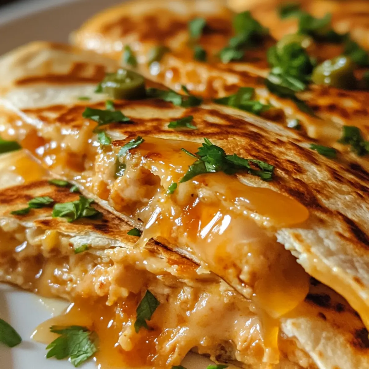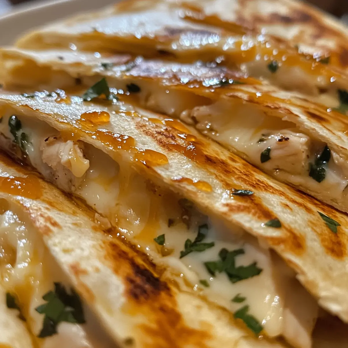 As I stood in the kitchen, a wave of nostalgia washed over me when I recalled family gatherings filled with laughter and delicious homemade meals. These Cheesy Hot Honey Chicken Quesadillas with Spicy Jalapeño Cream Sauce are inspired by those memorable moments, combining gooey cheese and tender chicken with a tantalizing kick. What’s not to love about a dish that comes together in just 30 minutes? Perfect for a quick dinner or a fun gathering, this recipe is utterly customizable, allowing for vegetarian swaps or ingredient tweaks to suit your taste. Just imagine the joy of pulling these crispy, cheesy delights straight from the skillet, paired with a creamy jalapeño sauce. Are you ready to spice up your dinner routine? Why Are These Quesadillas So Irresistible? Quick and Easy: These Cheesy Hot Honey Chicken Quesadillas come together in just 30 minutes, making them perfect for busy weeknights or last-minute gatherings. Flavor Explosion: The sweet heat of honey combined with spicy jalapeño cream sauce delivers a unique flavor profile that will have your taste buds dancing. Customization at Its Best: Whether you prefer chicken, steak, or a vegetarian option like black beans, you can easily tailor this recipe to satisfy everyone at the table. Crowd-Pleaser: With gooey cheese and crispy tortillas, these quesadillas are sure to be a hit at any gathering – complement them with your favorite sides like guacamole or salsa for an ultimate experience. Healthy Twist: By using Greek yogurt in the creamy sauce, you can enjoy a healthier alternative without sacrificing flavor. Want more delicious chicken ideas? Check out our Hot Honey Chicken for a sweet and spicy option or try Cheesy Garlic Chicken for another creamy delight. Cheesy Hot Honey Chicken Quesadillas Ingredients • Get ready to create something mouthwatering! For the Quesadillas • Boneless, Skinless Chicken Breasts – The main protein source that keeps these quesadillas hearty; substitute with steak or beans for a vegetarian twist. • Olive Oil – Essential for cooking the chicken; any cooking oil can work, so choose based on your flavor preference. • Smoked Paprika – Adds a warm, smoky flavor that enhances the overall dish; adjust based on how smoky you’d like it. • Garlic Powder – Offers a savory punch; fresh garlic can be used if you prefer a stronger taste. • Onion Powder – Complements the garlic and adds depth to the flavor; feel free to increase for a bolder taste. • Salt and Pepper – Basic seasonings that bring everything together; taste as you go for perfect seasoning. • Honey – The star ingredient that adds a sweet kick to the dish; adjust according to how sweet you like your quesadillas. • Hot Sauce – Delivers the necessary heat; feel free to swap with a milder sauce if you prefer less spice. • Flour Tortillas – The foundation of your quesadillas; corn tortillas are a great gluten-free alternative. For the Jalapeño Cream Sauce • Sour Cream – Gives the sauce a creamy base; Greek yogurt can be a healthier option without compromising creaminess. • Fresh Jalapeños – Provide a spicy kick in the sauce; you can omit them if you want to tone down the heat. • Lime Juice – Adds a refreshing acidity; substitute with lemon juice if preferred. • Salt – A necessary addition to balance the flavors in the sauce. For Grilling • Butter – Used for grilling crispy quesadillas; opt for olive oil to make it a bit lighter if you wish. For Garnishing • Fresh Cilantro – Adds a pop of color and freshness; completely optional but highly recommended! With these ingredients, your Cheesy Hot Honey Chicken Quesadillas with Spicy Jalapeño Cream Sauce are well on their way to delighting your taste buds and impressing your loved ones! Step‑by‑Step Instructions for Cheesy Hot Honey Chicken Quesadillas with Spicy Jalapeño Cream Sauce Step 1: Cook Chicken In a skillet, heat 1 tablespoon of olive oil over medium-high heat. Season boneless, skinless chicken breasts with a blend of smoked paprika, garlic powder, onion powder, salt, and pepper. Cook the chicken for about 10 minutes, turning occasionally, until each piece is golden brown and cooked through with an internal temperature of 165°F. Step 2: Prepare Hot Honey Mix While the chicken cooks, whisk together 2 tablespoons of honey and 1 tablespoon of hot sauce in a small bowl until well combined. Once the chicken is finished cooking, remove it from the skillet and slice it into bite-sized pieces. Coat the chicken thoroughly with the hot honey mixture for a sweet and spicy kick. Step 3: Make Jalapeño Cream Sauce In a separate bowl, combine ½ cup of sour cream, 1-2 chopped fresh jalapeños (adjust to taste), 1 tablespoon of lime juice, and a pinch of salt. Mix well until smooth and creamy. For added flavor, let the sauce chill in the refrigerator while you assemble the quesadillas, allowing the flavors to meld beautifully. Step 4: Assemble Quesadillas Lay out a flour tortilla on a clean surface, and sprinkle a generous layer of shredded cheddar and Monterey Jack cheese on one half. Add the hot honey chicken pieces, followed by another sprinkle of cheese, and then fold the tortilla over to create a half-moon shape. Press gently to seal the quesadilla. Step 5: Cook Quesadillas In the same skillet, melt 1 tablespoon of butter over medium heat. Carefully place the assembled quesadillas in the skillet, cooking each side for about 2-3 minutes or until they are golden brown and crispy. Make sure the cheese is melted and gooey, indicating they are ready to be flipped and finished. Step 6: Serve Once the quesadillas are perfectly golden and crispy, remove them from the skillet and let them cool for a minute before slicing them into wedges. Serve warm with the spicy jalapeño cream sauce drizzled on top or on the side, and garnish with fresh cilantro for a vibrant touch. What to Serve with Cheesy Hot Honey Chicken Quesadillas Bring your family around