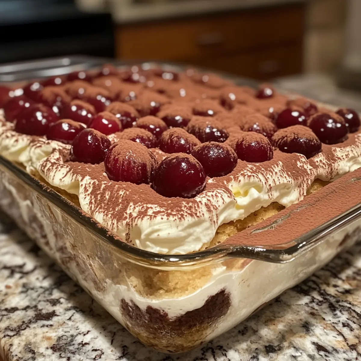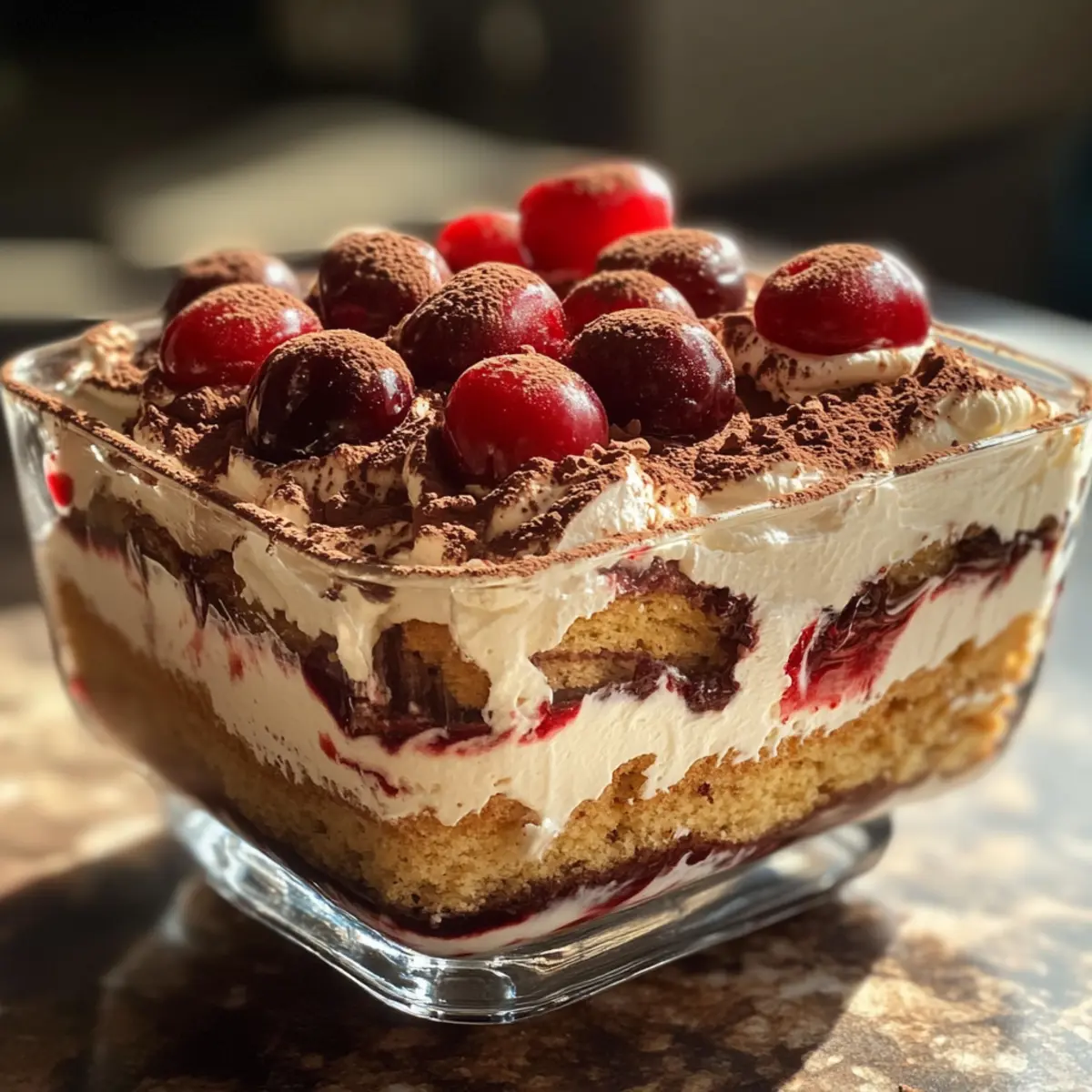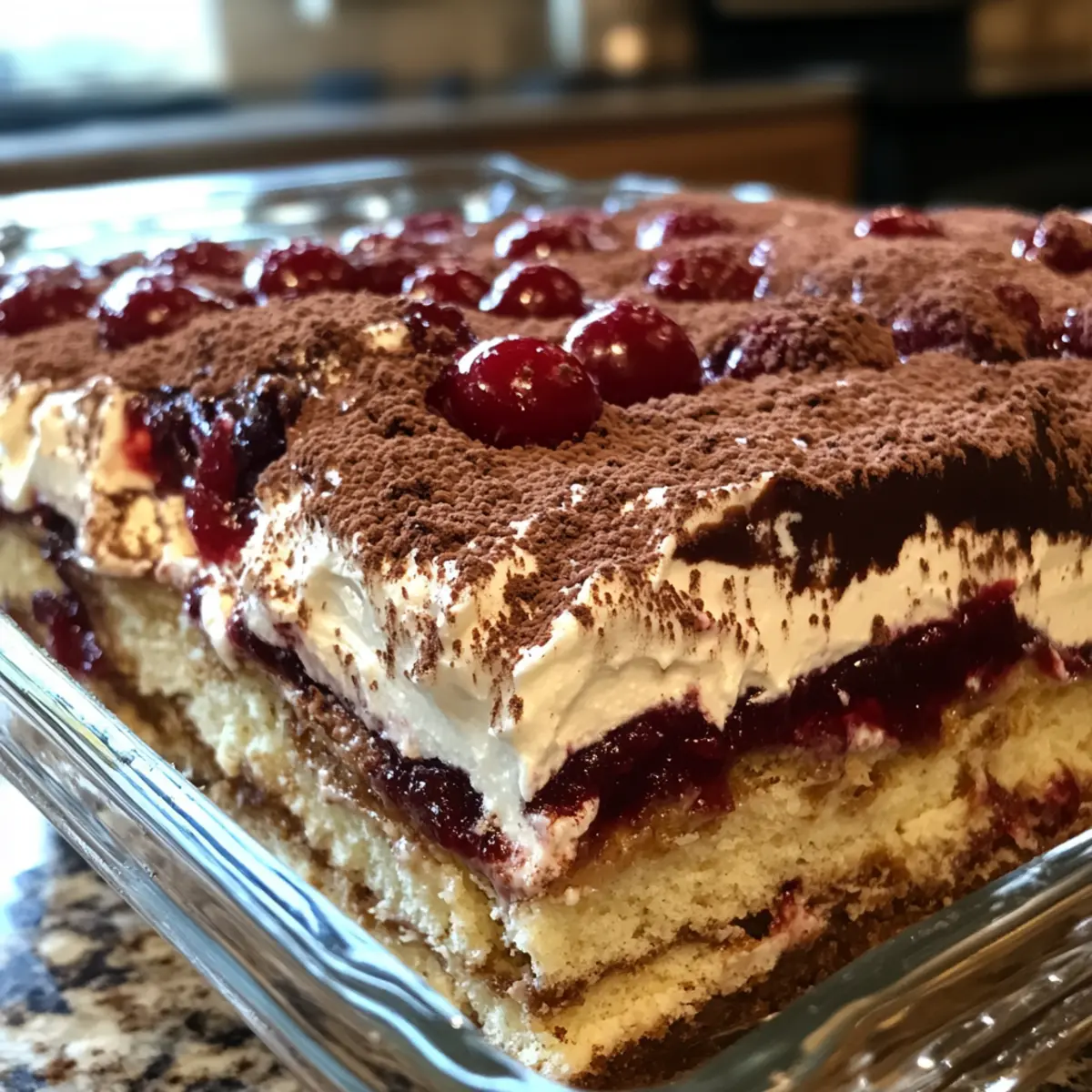 On a sunny afternoon, I found myself unexpectedly juggling a dozen things at once—bright cherries, creamy mascarpone, and a craving for something sweet yet sophisticated. That’s when the idea of Cherry Amaretto Tiramisu came to life, turning my kitchen into a whirlwind of delicious possibilities. This no-bake dessert is not just a treat for the eyes; it seamlessly marries luscious layers of mascarpone with juicy cherries and delicate ladyfingers—perfect for those steamy summer days when oven time feels like a chore. Plus, with its make-ahead convenience, it’s ideal for gatherings or just satisfying your sweet tooth when you need a little indulgence. And don’t worry if alcohol isn’t your thing; I’ve got delightful non-alcoholic substitutions to share, so everyone can join in on the fun! Ready to transform your dessert game? Let’s dive into this irresistible Cherry Amaretto Tiramisu together! Why is Cherry Amaretto Tiramisu Perfect? Easily Adaptable: This recipe can be tailored to suit any occasion or preference. Choose non-alcoholic options or serve in individual portions for a customized touch. No-Bake Convenience: Enjoy a delicious dessert without the oven hassle, making it ideal for hot days or busy schedules. Rich, Creamy Layers: The combination of luscious mascarpone and juicy cherries creates a taste sensation that’s both refreshing and indulgent. Make-Ahead Marvel: Prepare it a day in advance to let the flavors meld beautifully, ensuring you spend less time in the kitchen and more time enjoying your gathering. For those who crave a unique dessert experience, I also recommend trying my Strawberry Blueberry Tiramisu—another no-bake delight! This Cherry Amaretto Tiramisu is sure to leave your guests raving about your culinary skills! Cherry Amaretto Tiramisu Ingredients • For the Cherry Mixture Cherries – Fresh or frozen cherries bring a burst of sweetness and texture; tart cherry juice can enhance the flavor even more. Granulated Sugar – This sweetens the cherry mixture; adjust according to the cherries’ natural sweetness. Amaretto Liqueur – Adds a lovely almond flavor; feel free to swap with almond extract for a non-alcoholic option. Cherry Juice – Boosts the cherry taste; 100% tart cherry juice works best for a deeper flavor. • For the Cream Heavy Cream – Creates that light, fluffy mascarpone layer; avoid low-fat versions for the best results. Powdered Sugar – Sweetens the whipped cream and helps stabilize its texture. Mascarpone Cheese – The star of the show, lending creaminess; make sure it’s fresh and at room temperature for easy mixing. Vanilla Extract – This adds a touch of aromatic depth to the mascarpone filling. • For the Assembly Ladyfinger Cookies – Perfect for layering; Savoiardi-style ladyfingers soak nicely without falling apart. Cocoa Powder or Grated Dark Chocolate – A bittersweet topping that beautifully complements the dessert’s sweetness. Let’s whip up this Cherry Amaretto Tiramisu and enjoy a slice of heavenly bliss together! Step‑by‑Step Instructions for Cherry Amaretto Tiramisu Step 1: Cook the Cherries In a saucepan over medium heat, combine fresh or frozen cherries with granulated sugar and half of the amaretto liqueur. Allow the mixture to simmer for about 5-7 minutes until the cherries are softened and juicy, stirring occasionally. Remove from heat, and let it cool before stirring in the remaining amaretto and tart cherry juice for an intense flavor. Step 2: Prepare the Cream In a large mixing bowl, whip the heavy cream and powdered sugar together using an electric mixer until soft peaks form, creating a light and fluffy texture. In another bowl, mix the mascarpone cheese with vanilla extract until smooth and creamy. Gently fold the whipped cream into the mascarpone mixture until well combined, taking care not to deflate the airy texture. Step 3: Assemble Layers Grab a shallow dish or a rectangular serving pan, and set up your ladyfinger cookies nearby. Briefly dip each ladyfinger in the cherry-amaretto mixture, ensuring they soak just enough without becoming mushy. Layer the soaked ladyfingers in the bottom of the dish, followed by half of the mascarpone cream spread evenly over the top, then add half of the cherry mixture. Step 4: Repeat the Layers Continue the assembly by dipping more ladyfingers and layering them on top of the first mascarpone layer. Spread the remaining mascarpone cream and finish with the rest of the cherry mixture, creating beautiful layers. Smooth the top with a spatula to ensure a neat finish, preparing the Cherry Amaretto Tiramisu for chilling. Step 5: Chill the Tiramisu Cover the assembled Cherry Amaretto Tiramisu with plastic wrap or a lid, and refrigerate it for at least 4 hours, although overnight is ideal for the best flavor melding. This chilling process allows the layers to set and the flavors to intensify, resulting in a deliciously creamy dessert. Step 6: Serve with a Touch of Elegance Once chilled to perfection, remove the tiramisu from the refrigerator. Before serving, dust the top with your choice of cocoa powder or grated dark chocolate for a beautiful presentation. Serve cold, garnishing with fresh cherries or mint leaves if desired, to elevate your Cherry Amaretto Tiramisu experience. Make Ahead Options These Cherry Amaretto Tiramisu layers are perfect for busy home cooks looking to save time! You can prepare the cherry mixture and mascarpone cream up to 24 hours in advance; just store them separately in the refrigerator to maintain their qualities. Assemble the dessert no more than a few hours before serving to allow the flavors to meld beautifully without compromising the texture. If you’ve mixed the layers a day ahead, let them chill for at least 4 hours or overnight to intensify the flavors. When it’s time to serve, simply dust with cocoa powder or grated chocolate for that finishing touch, ensuring your Cherry Amaretto Tiramisu remains just as delici