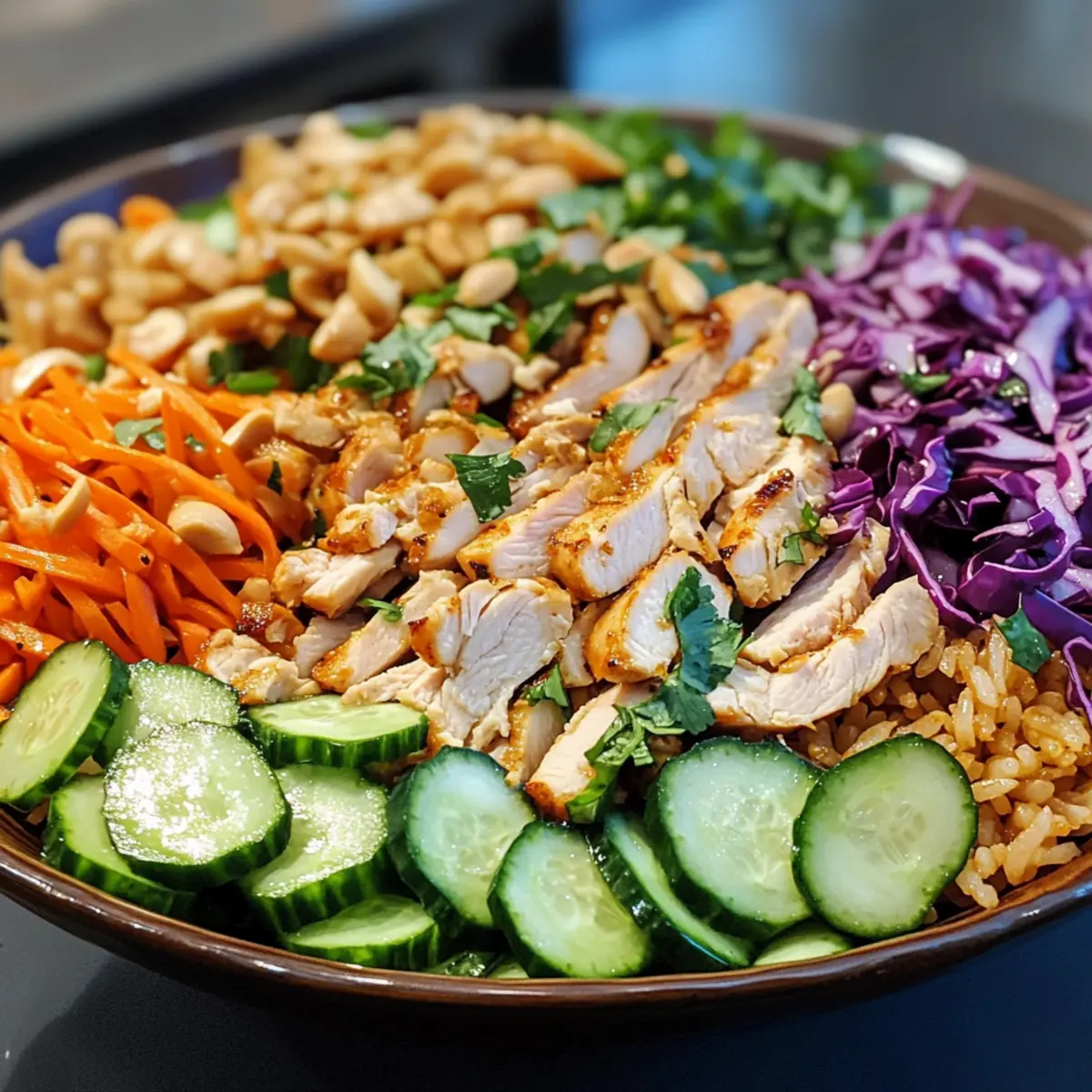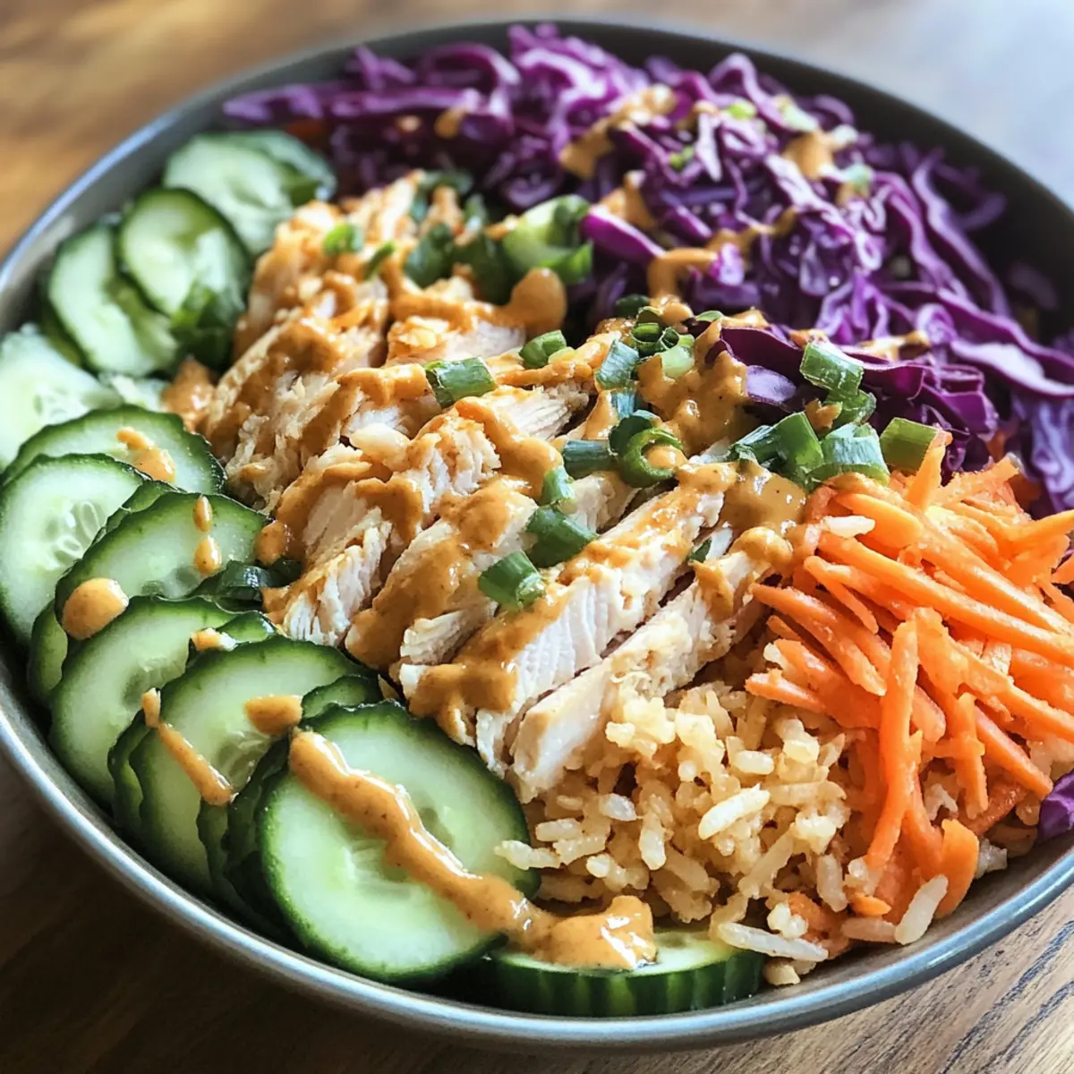 “Crispy rice salad” may sound like an intriguing combination, but once you taste this Chicken Crispy Rice Salad with Creamy Peanut Dressing, you’ll be inspired to make it a staple in your kitchen! In just 20 minutes, you’ll create a vibrant dish that effortlessly marries crunchy textures with tender, succulent chicken and a dreamy, creamy dressing. It’s not only a quick meal prep favorite for busy weeknights, but its versatility also allows you to mix up ingredients based on what’s in your pantry or personal dietary preferences. Whether you’re a cooking novice or a seasoned home chef, this salad promises a delightful twist on dinner. Think about what fresh veggies you’ll add to brighten up your plate—your taste buds are about to dance! So, ready to dive into a culinary adventure? Why Is This Salad a Must-Try? Quick Prep Time: In just 20 minutes, you can whip up this delightful salad—perfect for busy evenings. Endless Versatility: Swap ingredients based on your mood—add crispy tofu or switch to rice noodles for a unique spin! Vibrant Flavors: The combination of a creamy peanut dressing with fresh vegetables ensures every bite bursts with delicious taste. Wholesome Ingredients: Packed with healthy fats, protein, and vibrant veggies, this salad is as nourishing as it is satisfying. Crowd-Pleasing Appeal: Whether serving family or hosting friends, this dish will impress everyone at the table. Pair with our Hot Orange Chicken for a full-flavored meal! Chicken Crispy Rice Salad Ingredients For the Salad • Cooked Jasmine Rice – Chilling the rice is key to achieving that perfect crispy texture. • Boneless Skinless Chicken Breast (400 grams) – Thinly slice for quicker cooking and maximum tenderness. • Cornstarch (1 tablespoon) – Essential for creating a deliciously crispy coating on the chicken. • Soy Sauce (2 tablespoons) – Adds wonderful umami flavor; feel free to use tamari for a gluten-free option. • Fresh Garlic (2 cloves, minced) – Provides aromatic depth; swap with garlic powder if needed. • Neutral Cooking Oil (3 tablespoons) – Vital for frying; canola or vegetable oil works best for crispiness. • Red Cabbage (1 cup, finely sliced) – Adds vibrant color and crunch; substitute with green cabbage if desired. • Carrots (1 cup, julienned) – Brings sweetness and texture; bell pepper is a great alternative. • Cucumber (1 cup, sliced) – Adds refreshing brightness; zucchini works well if in season. • Green Onions (3 stalks, sliced) – Introduces a mild onion flavor; chives are a suitable substitute. • Fresh Cilantro (0.25 cup, chopped) – Provides a burst of herbal freshness; parsley can be used instead. For the Creamy Peanut Dressing • Creamy Peanut Butter (0.5 cup) – The star of the dressing adds richness; try almond butter for a nut-free version. • Fresh Lime Juice (3 tablespoons) – Brightens the overall flavor; freshly squeezed is always best. • Honey (1 tablespoon) – Adds a touch of sweetness; agave nectar is a vegan alternative. • Fresh Ginger (1 teaspoon, finely grated) – Infuses warmth into the dressing; ground ginger can substitute for convenience. • Warm Water (2 to 4 tablespoons) – Adjusts the dressing’s consistency to your liking. Get ready to whip up this Chicken Crispy Rice Salad with Creamy Peanut Dressing—your taste buds will thank you! Step‑by‑Step Instructions for Chicken Crispy Rice Salad with Creamy Peanut Dressing Step 1: Marinate Chicken Begin by combining the thinly sliced boneless skinless chicken breast with soy sauce, cornstarch, and minced garlic in a bowl. Toss well to ensure the chicken is evenly coated in the marinade. Let it sit for about 10 minutes; this allows the flavors to meld while you prepare the other components of the Chicken Crispy Rice Salad with Creamy Peanut Dressing. Step 2: Cook Chicken Heat 1 tablespoon of neutral cooking oil in a large skillet over medium-high heat. Once the oil is shimmering, add the marinated chicken in a single layer and cook for 6-8 minutes, turning occasionally, until the chicken is golden brown and cooked through. Once done, transfer the chicken to a plate and set aside while you prepare the crispy rice. Step 3: Crisp Rice In the same skillet, add another tablespoon of oil if needed and spread the chilled cooked jasmine rice evenly across the bottom. Allow it to cook undisturbed for about 5-7 minutes, until the bottom layer of rice turns a lovely golden brown. Flip the rice and continue cooking for another 6-8 minutes, ensuring the entire batch is crispy and heated through, creating that delightful base for your salad. Step 4: Prepare Peanut Dressing While the rice is crisping, whisk together the creamy peanut butter, lime juice, honey, grated ginger, and 2 tablespoons of warm water in a medium bowl until smooth and well combined. Adjust the dressing consistency to your liking by adding more warm water gradually; it should be creamy yet pourable, perfect for dressing your Chicken Crispy Rice Salad. Step 5: Combine Salad In a large mixing bowl, combine the crispy rice, cooked chicken, finely sliced red cabbage, julienned carrots, sliced cucumber, and chopped cilantro. Gently toss these ingredients together, ensuring that everything is evenly distributed. This vibrant mix will bring together the contrasting textures and flavors needed in your Chicken Crispy Rice Salad. Step 6: Dress Salad Finally, pour the luscious peanut dressing over the salad mixture. Use a spatula or your hands to toss everything gently but thoroughly, ensuring that every bite is coated with the creamy goodness of the dressing. Your Chicken Crispy Rice Salad with Creamy Peanut Dressing is now ready to serve! Chicken Crispy Rice Salad Variations Feel free to let your creativity shine as you customize this delightful salad! Spicy Kick: Add sriracha or chili sauce to the dressing for a zesty heat that elevates the flavor profile. Vegetarian: Swap the chicken for crispy to