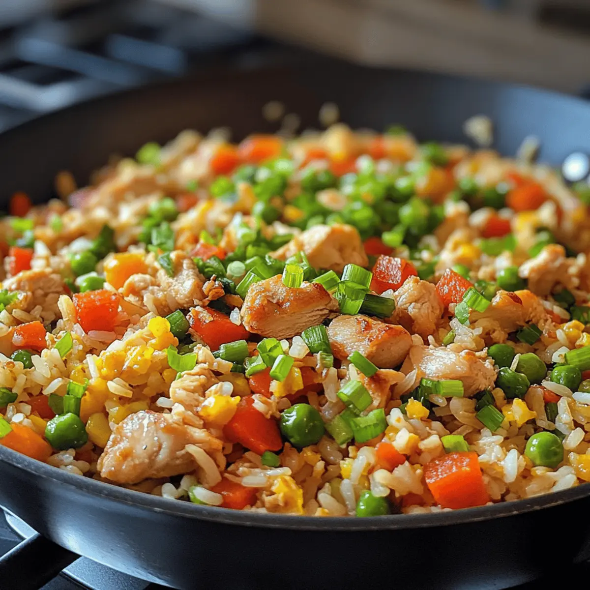 Delicious Chicken Fried Rice packed with protein and vibrant vegetables, perfect for a quick dinner.