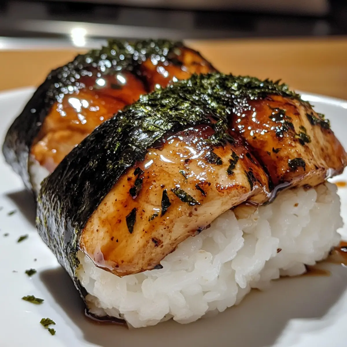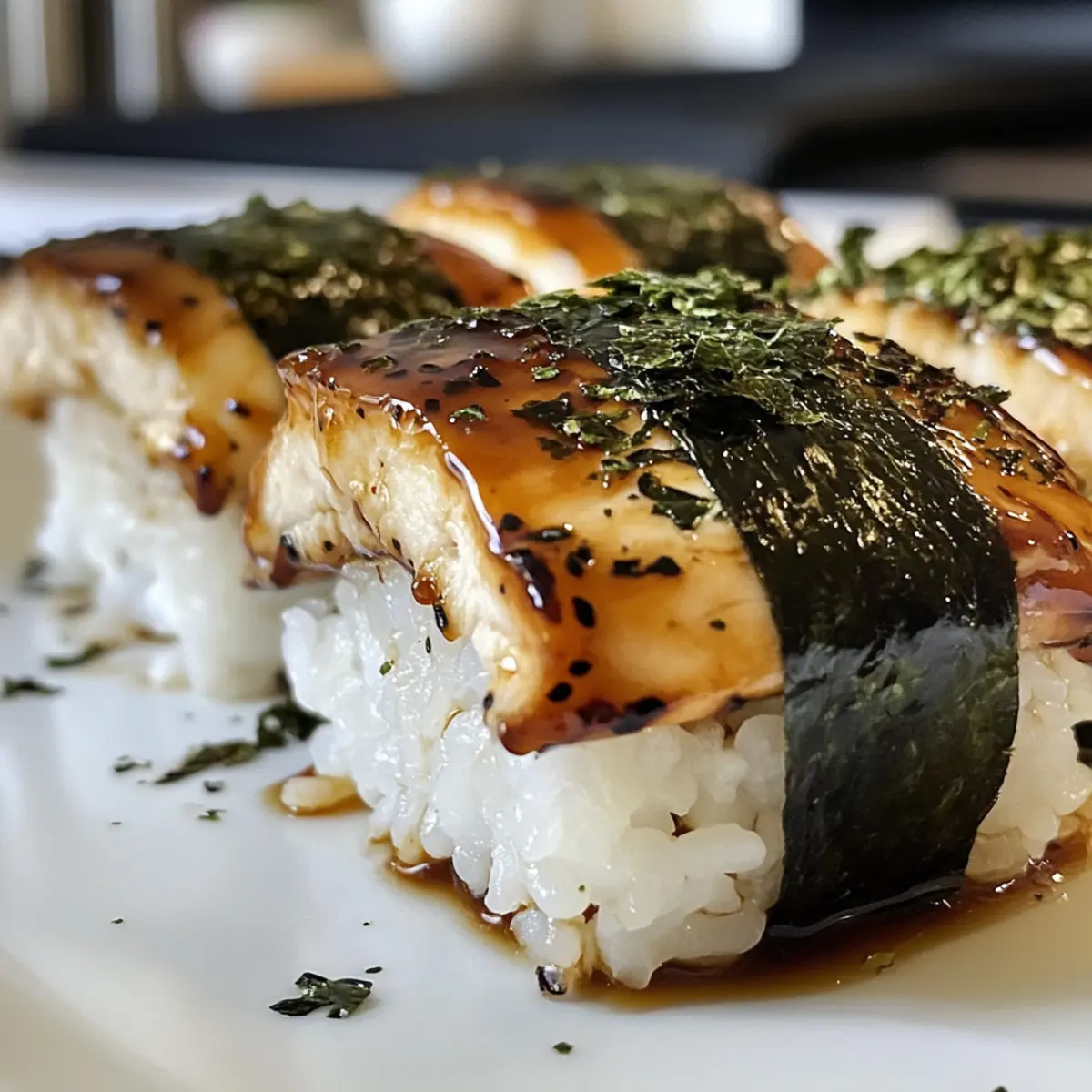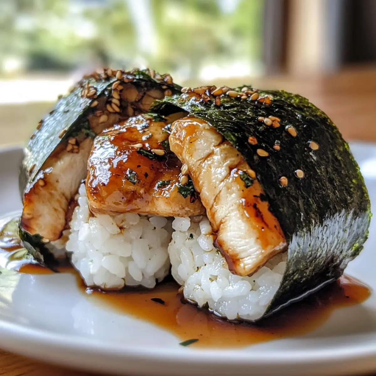 As I was savoring the last bite of a delicious Japanese meal, a warm memory flashed back to me—spending afternoons with my grandmother, making onigiri together in her cozy kitchen. With each rice ball we formed, her laughter filled the air. Today, I’m thrilled to share this Chicken Onigiri recipe, inspired by those cherished moments. It’s not just an easy appetizer; it’s a delightful way to embrace Japanese cuisine right in your home. The combination of tender marinated chicken and sticky sushi rice, all enveloped in a savory teriyaki glaze, makes these onigiri truly irresistible. Not only are they quick to prepare, but they’re also incredibly family-friendly, perfect for snacking or a fun bento box surprise. So why not gather your loved ones and create your own onigiri memories? What flavors are calling your name to try in this recipe? Why is Chicken Onigiri a Must-Try? Quick to Make: This Chicken Onigiri recipe takes minimal time to prepare, allowing you to whip up a delicious snack in no time. Flavorful Fusion: The rich teriyaki glaze perfectly complements the tender chicken, bringing a burst of umami to each bite. Family-Friendly Fun: Engage your loved ones in the shaping process, making it a fun family activity that everyone can enjoy. Versatile Variations: Feel free to switch up the proteins or fillings, like using tofu for a vegetarian twist, to keep things exciting. Perfect for Any Occasion: Serve these onigiri at parties, pack them in bento boxes, or enjoy them as a quick weekday snack—versatility at its best! Chicken Onigiri Ingredients For the Rice • Sushi Rice – Required for its sticky texture, allowing the onigiri to hold their shape; remember to use short-grain rice for best results. • Salt – Enhances the flavor of the rice; using fine salt ensures even absorption. For the Chicken Filling • Boneless Skinless Chicken (Drumsticks) – The main protein that provides rich flavor; thighs or ground chicken can be used as great substitutes. • Soy Sauce – Adds a depth of umami in both the marinade and glaze; opt for low-sodium versions if desired. • Sake – Infuses the chicken with a delightful flavor depth; water works as a substitute if sake isn’t available. • Baking Soda – Tenderizes the chicken during marination for a delectable bite. • Cornstarch – Helps to create a crispy coating when stir-frying the chicken. • Minced Garlic – Offers aromatic depth during cooking; a little goes a long way! For the Teriyaki Glaze • Mirin – Sweet rice wine that adds balance to savory flavors in the glaze; it’s essential for that authentic taste. • Brown Sugar – Provides sweetness to the teriyaki sauce; you can substitute it with coconut sugar for a healthier option. • Oil – Use a neutral oil like canola for stir-frying, ensuring the flavors shine through without overpowering. For Assembly • Furikake – Optional seasoning for a burst of flavor; skip it if you prefer, or use sesame seeds for a similar crunch. • Nori – Seaweed wraps that add flavor and a beautiful touch; cut into rectangles for wrapping your onigiri. Embrace the art of homemade Chicken Onigiri to create unforgettable snacking moments! Step-by-Step Instructions for Chicken Onigiri Step 1: Prepare the Sushi Rice Rinse 2 cups of sushi rice under cold water until the water runs clear, then combine it with 2.5 cups of water in a rice cooker. Cook according to your rice cooker’s instructions, roughly 30-40 minutes. Once the rice is done, transfer it to a large bowl, sprinkle with 1 teaspoon of salt and optional furikake, then mix gently while fanning it to cool slightly. Step 2: Marinate the Chicken Cut 1 pound of boneless skinless chicken drumsticks into small, bite-sized pieces and place them in a mixing bowl. Add 3 tablespoons of soy sauce, 2 tablespoons of sake, 1 teaspoon of baking soda, and 2 tablespoons of cornstarch. Toss to coat evenly and let it marinate for 30 minutes to maximize flavor and tenderness while you prepare the teriyaki sauce. Step 3: Make the Teriyaki Sauce In a small bowl, mix together 4 tablespoons of mirin, 2 tablespoons of brown sugar, and an additional 2 tablespoons of soy sauce. Stir until the sugar is fully dissolved. This savory-sweet teriyaki sauce will elevate your Chicken Onigiri to perfection, making it irresistibly tasty. Set the sauce aside while you stir-fry the chicken. Step 4: Stir-Fry the Chicken Heat 2 tablespoons of neutral oil in a large skillet over medium-high heat. Once the oil shimmers, add the marinated chicken pieces and stir-fry for 2-3 minutes until they are browned and cooked through. Add 1 teaspoon of minced garlic and sauté for another 30 seconds until fragrant, then pour the teriyaki sauce over the chicken and let it simmer until it thickens slightly, about 1-2 minutes. Step 5: Shape the Onigiri Wet your hands to prevent sticking and scoop about ⅓ cup of the seasoned sushi rice into your palm. Create a well in the center and place a tablespoon of the cooked chicken filling inside. Cover it with more rice, compressing it firmly, and shape into a triangular form. Each Chicken Onigiri should feel compact yet slightly sticky, ideal for holding its shape. Step 6: Wrap with Nori Cut sheets of nori into rectangles, about 1-inch wide, and wrap them around the base of each onigiri to add flavor and a touch of elegance. Make sure to press gently to help the nori adhere, giving your Chicken Onigiri a delightful presentation. Display them on a plate and enjoy these tasty Japanese bites, ideally served fresh! What to Serve with Teriyaki Chicken Onigiri? As you dive into this delightful Japanese snack, consider the perfect companions to create a memorable meal experience. Crispy Edamame: A light, protein-packed snack that adds a fresh, vibrant contrast to the savory onigiri. Tossed with sea salt, they make the perfect crunchy side. Seaweed Salad: This refreshing dish brings a delightful umami punch and texture, enhancing the e