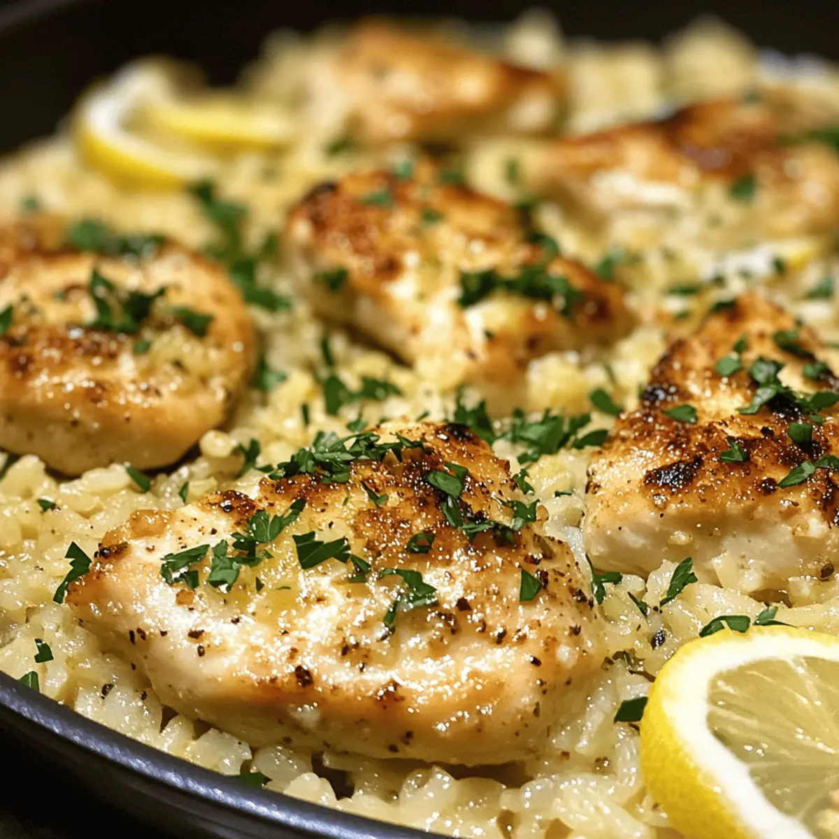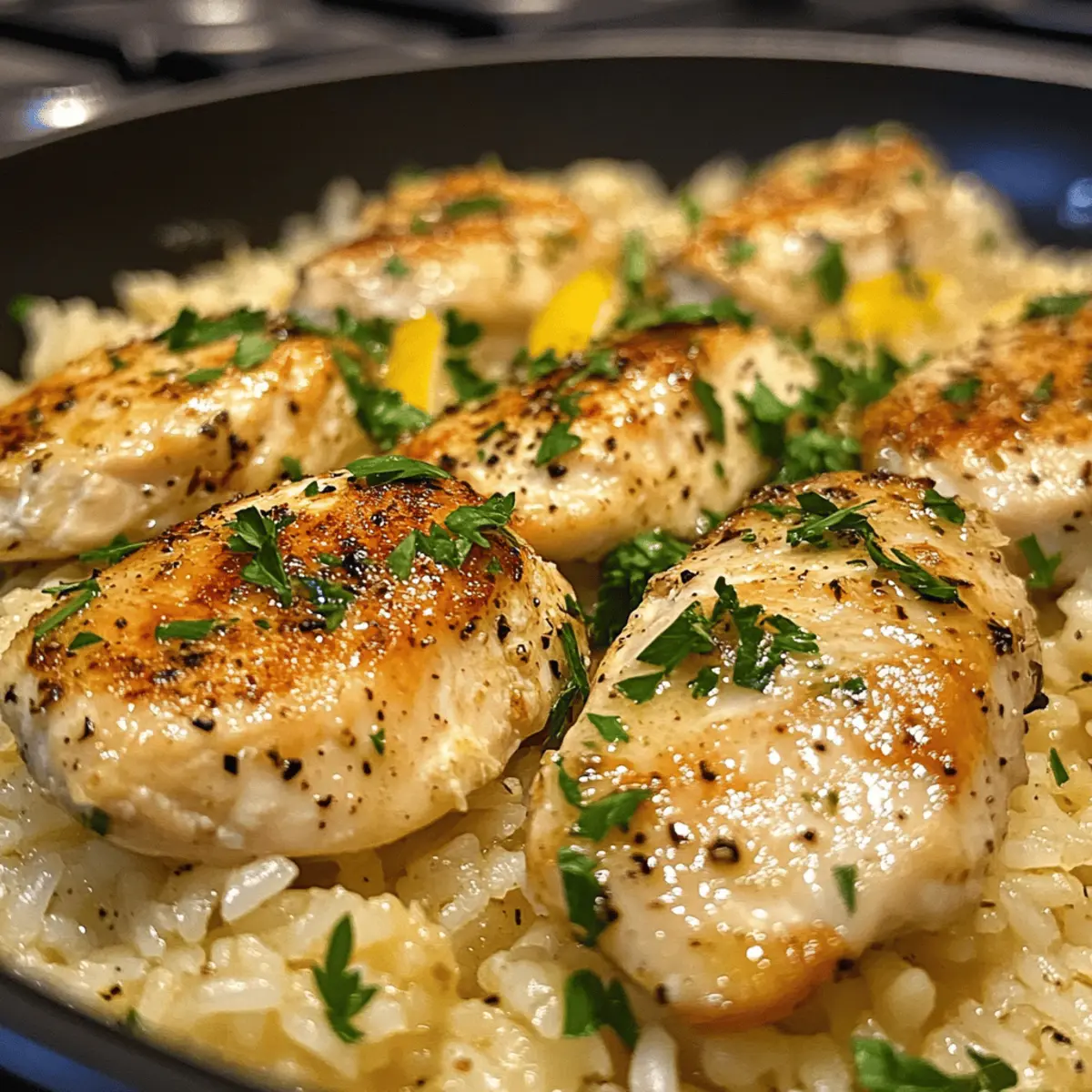 Enjoy a delightful Chicken Scampi with Garlic Parmesan Rice, perfect for busy weeknights.