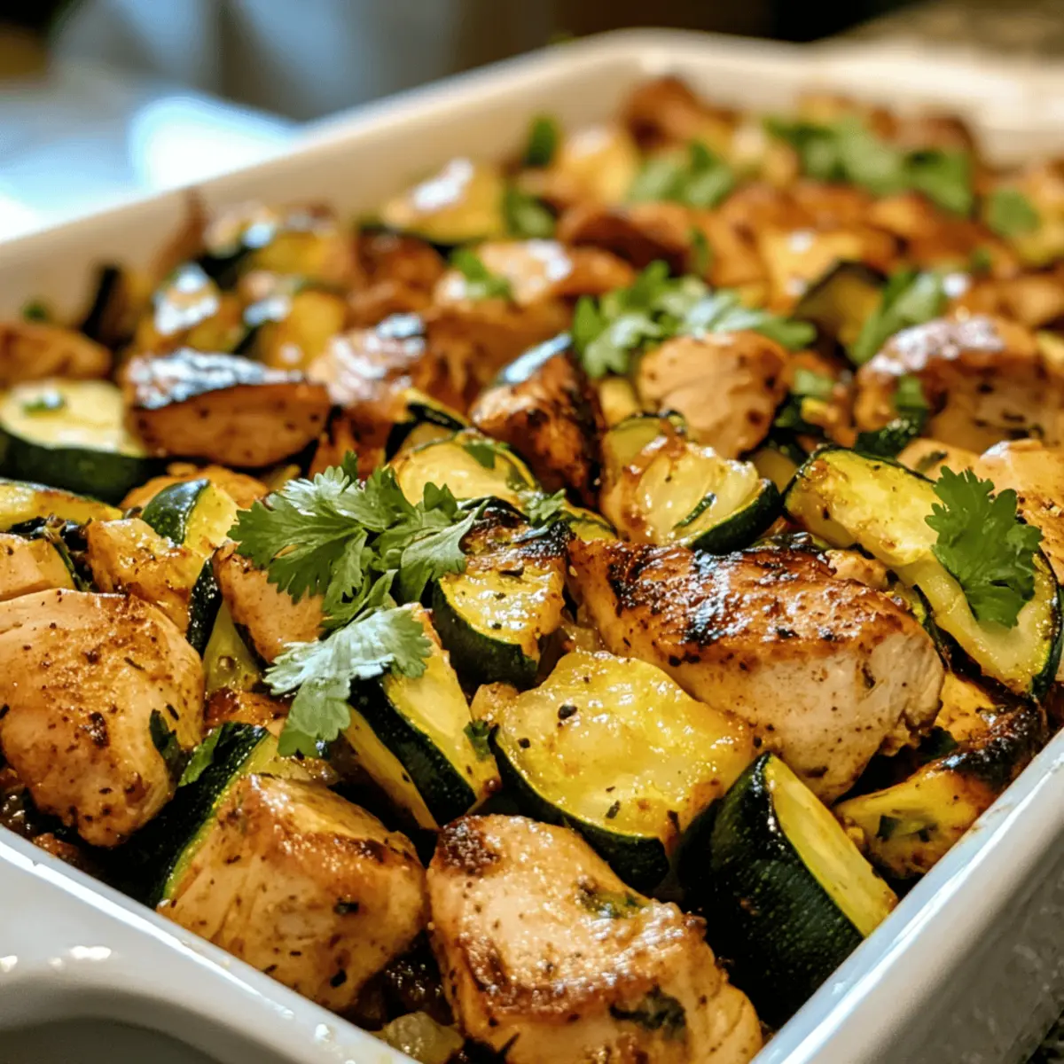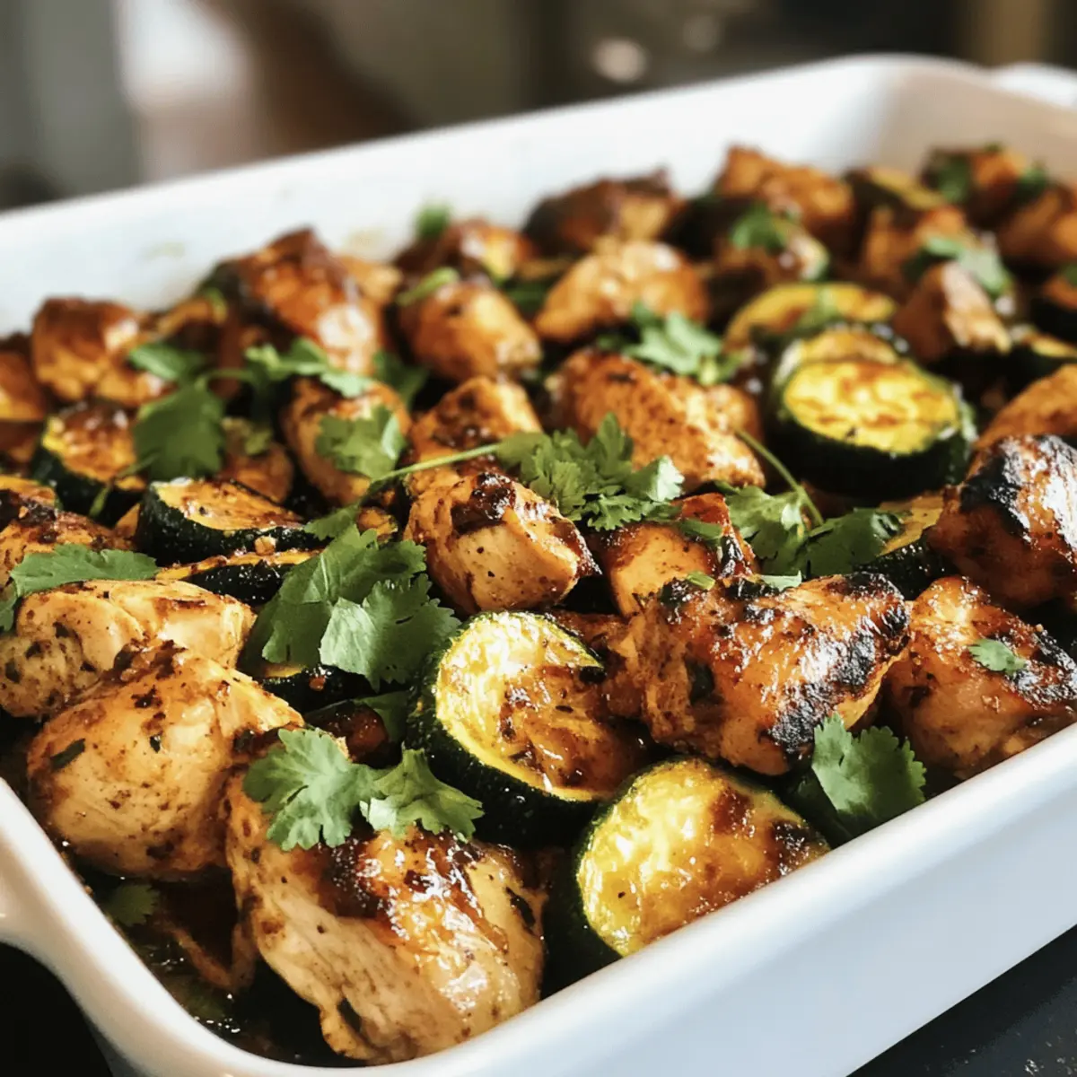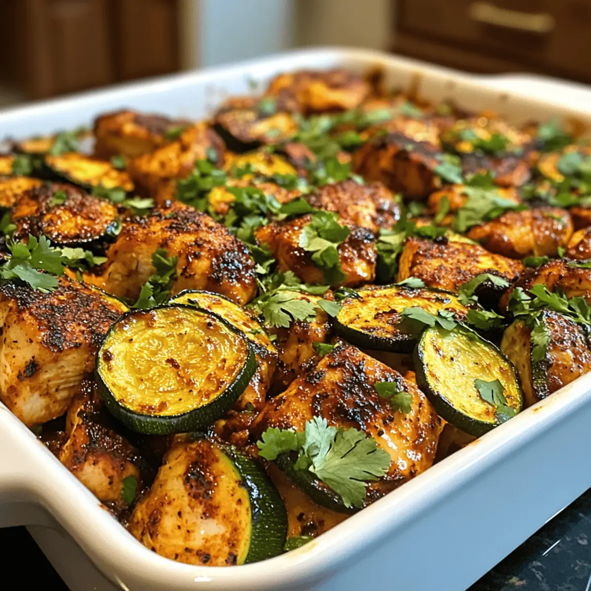As I prepared dinner last week, I stumbled upon a vibrant zucchini peering shyly from the corner of my fridge. That simple moment sparked the creation of this Easy Chicken Zucchini Bake—a cozy, nourishing one-dish meal that delights my family every time. Packed with over 30 grams of protein per serving, this dish comes together effortlessly, allowing you to reclaim your evenings away from the fast-food frenzy. With tender chicken and caramelized zucchini mingling with aromatic spices, it offers a comforting yet healthy twist on dinner that even the pickiest eaters will love. Plus, the leftovers (if there are any!) taste just as good, making busy weeknights a breeze. How can you resist giving this delightful bake a try? Why is this Chicken Zucchini Bake a Winner? Ease of Preparation: This recipe comes together in just 45 minutes, making it an ideal choice for busy weeknights when you want a home-cooked meal without the hassle. High-Protein Delight: With over 30 grams of protein per serving, it’s perfect for health-conscious families looking to fuel their days. One-Dish Wonder: Say goodbye to stackable pots and pans; everything bakes beautifully in one dish, minimizing cleanup so you can relax with your loved ones. Flavor Fusion: The combination of smoky paprika, earthy cumin, and fresh herbs brings a deliciously rich taste, satisfying even the pickiest eaters. Versatile Accompaniments: Pair it with fluffy rice or quinoa, or serve it alongside fresh garden salads for a well-rounded meal that caters to your family’s tastes, just like my Buffalo Chicken Taquitos that make a great appetizer! Chicken Zucchini Bake Ingredients For the Bake Boneless, Skinless Chicken Breasts – a main protein source providing moisture and flavor; consider using organic for better quality. Zucchini – adds bulk and nutrients, absorbing all those wonderful flavors; fresh zucchini is best. Onion – offers a sweetness and depth of flavor; yellow or white onions work wonderfully here. For the Seasoning Olive Oil – essential for cooking and enhancing flavor; opt for extra virgin for a richer taste. Garlic (minced) – crucial for a savory aroma and flavor profile that elevates the dish. Smoked Paprika – contributes a rich, smoky flavor; choose a high-quality product for the best results. Ground Cumin – brings warmth and an earthy touch that complements the entire dish. Dried Oregano – adds an herbal note that ties all the flavors together. Salt and Black Pepper – important for overall seasoning; adjust these to your taste for a balanced flavor. For Garnish Fresh Cilantro or Parsley (chopped) – adds freshness and color as a final touch. For Serving Cooked Rice – perfect for soaking up the flavorful juices from the Chicken Zucchini Bake; feel free to use brown rice or quinoa for extra nutrition. Step‑by‑Step Instructions for Chicken Zucchini Bake Step 1: Preheat and Prepare the Dish Begin by preheating your oven to 375°F (190°C). While the oven warms up, grease a 9×13 inch baking dish generously with olive oil to prevent sticking and promote caramelization. This simple step sets the stage for your Chicken Zucchini Bake and ensures a lovely golden finish. Step 2: Combine the Main Ingredients In a large mixing bowl, add diced boneless, skinless chicken breasts, sliced zucchini, and chopped onion. Aim for uniform sizes to ensure even cooking throughout the Chicken Zucchini Bake. Mix them gently using your hands or a spatula until combined, allowing the chicken and vegetables to meld beautifully. Step 3: Add Seasonings and Toss Drizzle olive oil over the chicken and vegetable mixture, followed by the minced garlic, smoked paprika, ground cumin, dried oregano, salt, and black pepper. Toss everything together thoroughly, making sure each piece is well-coated with the fragrant spices. This step is where the flavors begin to develop, setting the foundation for your dish. Step 4: Optional Moisture Reduction For an optional step, place the zucchini in a colander and sprinkle with salt. Let it sit for about 15 minutes to draw out excess moisture, which can enhance the texture of your Chicken Zucchini Bake. Afterward, pat the zucchini dry with a clean kitchen towel or paper towel to remove any moisture, ensuring crispness. Step 5: Spread in Baking Dish Carefully spread the combined mixture into the prepared baking dish, distributing it evenly. Be cautious not to overcrowd the dish, as this can affect the cooking temperature and lead to uneven baking. This layout allows for optimal caramelization and ensures that every bite is flavorful and tender. Step 6: Bake to Perfection Place the baking dish in the preheated oven and bake for 25-30 minutes. Start checking for doneness at the 20-minute mark; use a meat thermometer to ensure the chicken reaches an internal temperature of 165°F (74°C) and that the zucchini is nicely tender. The edges of the chicken should appear golden brown. Step 7: Broil for a Golden Finish For an exquisite golden color, switch your oven setting to broil and broil the Chicken Zucchini Bake for an additional 2-3 minutes. Keep a close eye as it broils, preventing any burning. This final touch will add that irresistible crispiness on top, enhancing both appearance and taste. Step 8: Garnish and Serve Once beautifully baked, remove the dish from the oven and garnish with freshly chopped cilantro or parsley for a bright, fresh finish. Serve your Chicken Zucchini Bake over fluffy cooked rice or quinoa, allowing the grains to absorb the delicious juices. Enjoy the comforting flavors that come together effortlessly! Make Ahead Options You can easily make the Easy Chicken Zucchini Bake ahead of time, perfect for busy weeknights when time is short! Simply prepare the chicken and vegetable mixture (chicken, zucchini, onion, and seasonings) and store it in an airtight container in the refrigerator for up to 24 hours. This ensures the flavors meld beautifully while maintaining freshness. On ba