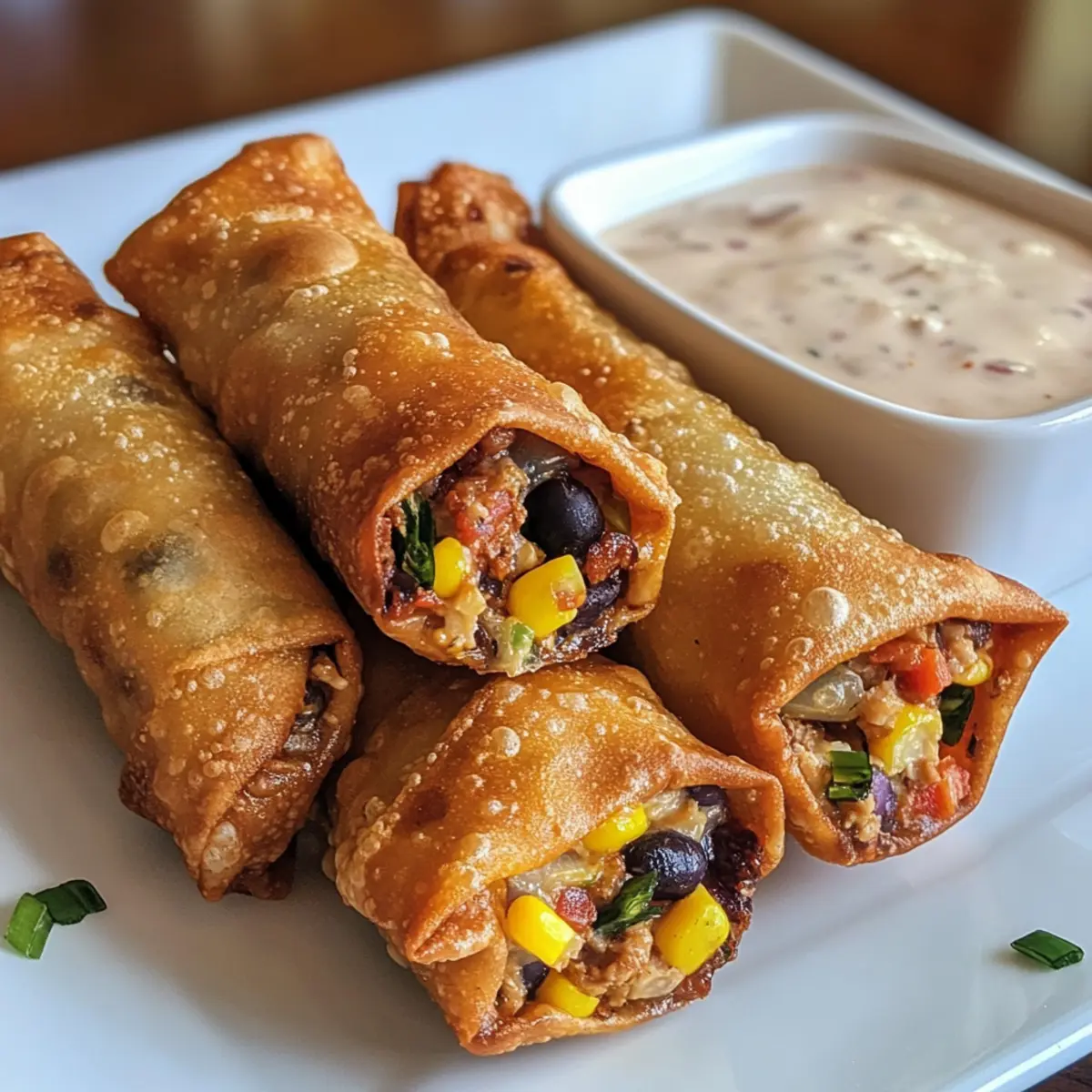 As the sizzling sound of crisping eggrolls fills the kitchen, I can almost taste the adventure. These Chili’s Southwest Eggrolls are my secret weapon for gatherings, effortlessly bringing restaurant-style flair right to your home. This easy recipe offers a delightful blend of smoky chicken, hearty black beans, and luscious cheese, all tucked inside a golden-brown shell. The best part? They are fully customizable, allowing you to cater to every dietary whim, whether you’re rolling up spicy versions or vegetarian delights. With a creamy dipping sauce to complement their crunch, these appetizers become an instant crowd-pleaser. Ready to bring the fiesta to your table? Let’s dive into the world of crispy, flavorful eggrolls! Why Are These Eggrolls So Addictive? Crispy Perfection: Each bite is a satisfying crunch, giving you that perfect texture contrast that’s hard to resist. Flavor Explosion: The skillful blend of smoky spices and creamy cheeses makes every bite an exciting taste adventure. Customizable Delight: You can easily adapt the filling to suit your preferences, whether you’re a meat lover or a veggie enthusiast. Party-Ready Appeal: These eggrolls are a guaranteed hit at any gathering, promising smiles and satisfied appetites. Easy to Make: With simple instructions, you can whip these up in no time—perfect for unexpected guests or snack cravings! Dipping Delight: Paired with a creamy sauce, these will elevate your appetizer game and leave everyone wanting more! Try them out along with our variety of dipping sauces for an even better experience! Chilis Southwest Eggrolls Ingredients For the Filling • Eggroll Wrappers – Essential for holding your delicious filling; choose fresh or thawed frozen wrappers for best results. • Olive Oil – Ideal for sautéing veggies; can substitute with a neutral oil like canola for a different taste. • Red Bell Pepper – Adds a sweet crunch; yellow or orange bell peppers can be used for a pop of color. • Green Bell Pepper – Supplies a mild crunch; substitute with any sweet pepper variety as desired. • Red Onion – Gives a sweet undertone; yellow onion can be used in its place. • Jalapeño Pepper – Optional for heat; adjust based on your spice preference or swap for milder peppers. • Black Beans – Adds texture and protein; rinsed canned beans or other varieties work just as well. • Corn – Brings sweetness to the filling; feel free to use canned or frozen corn based on what you have. • Cooked Chicken Breast – Delivers savory flavor; consider using shredded rotisserie chicken for convenience or omit for vegetarian Chilis Southwest Eggrolls. • Monterey Jack Cheese – For a creamy, mild taste; mild cheddar can also substitute seamlessly. • Pepper Jack Cheese – Adds a kick; replace with more Monterey Jack for a milder experience. • Fresh Cilantro – Offers a burst of freshness; parsley can be swapped if cilantro isn’t your favorite. • Chili Powder – Infuses warmth and flavor; taco seasoning is a fun alternative for a different zest. • Cumin – Provides a unique earthy taste that’s key in Southwest cuisine; omit if you’re sensitive to its flavor. • Garlic Powder – Enhances savory notes; fresh garlic can elevate the flavor even further. • Cayenne Pepper – Adds optional heat; include according to your taste preferences. • Salt and Black Pepper – Essential for flavor; adjust to suit your palate. For the Creamy Dipping Sauce • Mayonnaise, Sour Cream, Buttermilk – Form the base for a luscious dipping sauce; swap for Greek yogurt for a lighter twist. • Lime Juice – Brightens the sauce; fresh juice will enhance the flavor, though bottled works in a pinch. • Onion Powder – Boosts flavor in the dipping sauce; can be omitted if you prefer a simpler taste. For Frying • Vegetable Oil – Perfect for frying to achieve that crispy texture; oils like peanut or canola are your best options for high smoke points. Step‑by‑Step Instructions for Chilis Southwest Eggrolls Step 1: Prepare the Filling Heat a drizzle of olive oil in a large skillet over medium heat. Sauté the diced red and green bell peppers along with the red onion for about 5-7 minutes until they’re softened and fragrant. You want to see vibrant colors and a slight browning; this builds flavor for your Chilis Southwest Eggrolls. Step 2: Combine Ingredients To the skillet, add the rinsed black beans and corn, stirring for an additional 2-3 minutes. Once everything is heated through, mix in the cooked chicken, Monterey Jack cheese, and Pepper Jack cheese, ensuring they melt and create a cohesive filling. Stir in the spices and remove from heat, then fold in fresh cilantro for an added burst of flavor. Step 3: Cool the Filling Transfer the filling to a bowl and allow it to cool slightly, about 10 minutes. This step is crucial to prevent tearing the wrappers when you start assembling. Keep an eye on it; you want it just warm but not steaming hot when you move to the next step for your Chilis Southwest Eggrolls. Step 4: Assemble Eggrolls Set out the eggroll wrappers on a clean, dry surface. Place a spoonful of the filling near the center of each wrapper. Fold the bottom up over the filling, then fold in the sides and roll tightly, sealing the edges with a bit of water to secure them. This will ensure your Chilis Southwest Eggrolls are perfectly packed and ready for frying. Step 5: Make Dipping Sauce In a medium bowl, whisk together mayonnaise, sour cream, buttermilk, lime juice, and onion powder until smooth and well blended. Taste and adjust seasoning if needed. It’s best to refrigerate this creamy dipping sauce for at least 30 minutes to let the flavors meld, creating the perfect complement for your cooked eggrolls. Step 6: Fry Eggrolls In a deep pot, heat vegetable oil to 350-375°F; use a thermometer for accuracy. Carefully drop in a few eggrolls at a time, making sure not to overcrowd. Fry them for 2-3 minutes on 