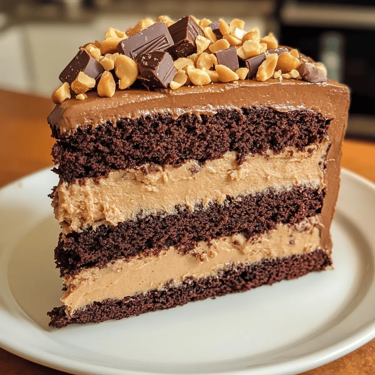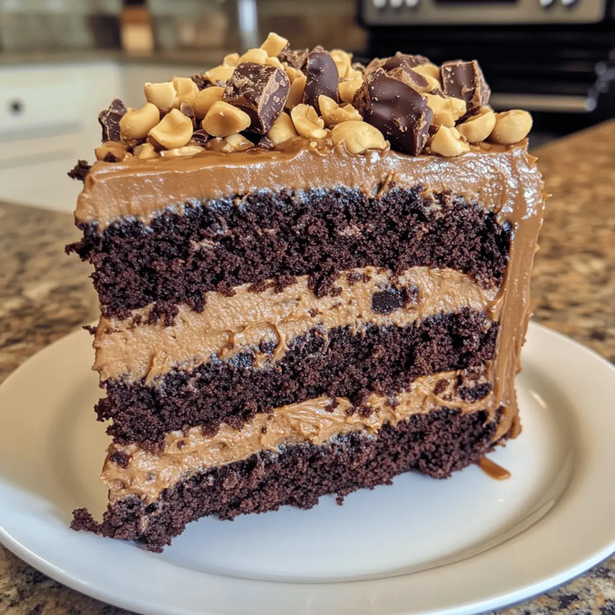 Decadent Layers: Each slice reveals rich chocolate layers combined with smooth peanut butter frosting, delivering irresistible flavor.