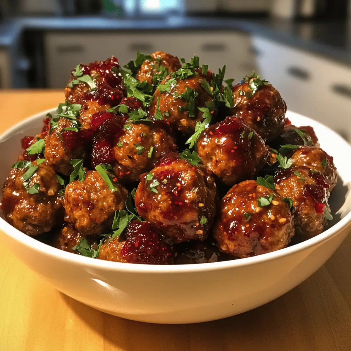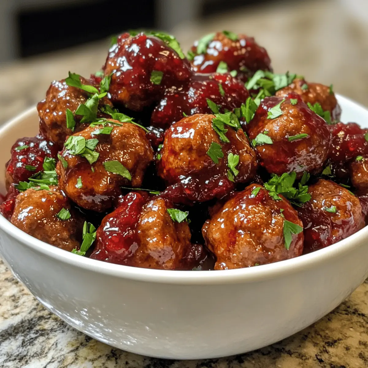 As I stood in the kitchen, the aroma of simmering goodness wafted through the air, instantly lifting my holiday spirit. Quick Christmas Cranberry Meatballs are my go-to festive appetizer that never fails to impress. With just three simple ingredients, this easy recipe offers a delightful combination of sweet and savory flavors, making it a perfect fit for holiday gatherings. Ready in under 30 minutes, these meatballs are not only a lifesaver for busy hosts but also a crowd-pleaser that keeps both kids and adults coming back for more. Whether you serve them in a festive bowl or on skewers for easy snacking, these meatballs will definitely steal the show at your next holiday party. Curious to find out how to whip up this simple yet delicious treat? Let’s dive right in! Why are These Meatballs a Must-Try? Simplicity at Its Best: With just three ingredients, these meatballs are incredibly easy to prepare, even for beginner cooks. Sweet and Savory Bliss: The combination of cranberry sauce and chili sauce creates a unique flavor profile that’s both sweet and tangy, making them irresistible. Ready in a Flash: Whip up this festive appetizer in under 30 minutes, perfect for those last-minute gatherings. Crowd-Pleaser: Kids and adults alike will love these delightful bites, ensuring they disappear faster than you can say “holidays.” Versatile Serving Options: Whether served in a slow cooker for a buffet or on toothpicks for easy snacking, they fit every holiday occasion. For more festive ideas, check out my Cranberry Orange Bundt cake that pairs wonderfully with these meatballs! Christmas Cranberry Meatballs Ingredients • Ready to savor the magic of holiday flavors? For the Sauce Jellied Cranberry Sauce – Provides the sweet and fruity essence crucial for Christmas Cranberry Meatballs. Substitution: Use whole cranberry sauce for texture variation. Chili Sauce – Infuses a subtle heat and depth to the dish, balancing the sweetness. Note: Choose a milder type if serving kids. Brown Sugar – Enhances the sauce with rich caramelized sweetness. No direct substitution needed; granulated sugar works for a lighter touch. Garlic Powder – Adds a warm, aromatic flavor. Optional: Fresh minced garlic gives a more vibrant taste. Black Pepper – Imparts a mild heat that rounds off the flavors nicely. Freshly ground is preferred for the best taste. For the Meatballs Frozen Pre-Cooked Meatballs (beef or turkey) – The quick and convenient star ingredient of this festive dish. Substitution: Homemade meatballs are fine, just ensure they’re pre-cooked before adding to the sauce. Step‑by‑Step Instructions for Christmas Cranberry Meatballs Step 1: Make the Sauce In a large skillet or saucepan, combine the jellied cranberry sauce, chili sauce, brown sugar, garlic powder, and black pepper. Cook over medium heat for about 5 minutes, stirring frequently, until the mixture is smooth and begins to bubble. You’ll know it’s ready when the bright red sauce transforms into a glossy, tangy mixture that fills your kitchen with festive aromas. Step 2: Add the Meatballs Carefully stir in the frozen pre-cooked meatballs, ensuring each one is coated with the vibrant cranberry sauce. Reduce the heat to medium-low and cover the skillet to help the flavors meld. Simmer for 15–20 minutes, stirring occasionally. The meatballs should heat through and absorb the sweet-savory sauce, becoming tender and flavorful while the sauce thickens slightly. Step 3: Serve Once the meatballs are fully heated, transfer them to a serving bowl or a slow cooker set to warm. The shiny, sticky sauce will glisten as you serve them up. For a festive touch, garnish with chopped parsley or fresh rosemary. The Christmas Cranberry Meatballs are now ready to be enjoyed by your guests, bringing warm holiday cheer to your gathering. Expert Tips for Christmas Cranberry Meatballs Choose Quality Ingredients: Ensure the jellied cranberry sauce and chili sauce are fresh and flavorful to create a sumptuous glaze that’s hard to resist. Mind the Heat: If serving kids, opt for a milder chili sauce to avoid overwhelming their taste buds with spice. Simmer Gently: Allowing the meatballs to simmer slowly helps them absorb the delicious sauce flavors, enhancing the taste of your Christmas Cranberry Meatballs. Stir Occasionally: Prevent any sticking or burning by occasionally stirring the mixture as it heats. This will keep your sauce smooth and evenly distributed. Garnish for Appeal: A sprinkle of freshly-chopped parsley or rosemary not only adds color but also enhances the dish’s festive presentation. How to Store and Freeze Christmas Cranberry Meatballs Fridge: Store leftover Christmas Cranberry Meatballs in an airtight container for up to 3 days. Reheat on the stove over low heat or in the microwave until warmed through. Freezer: Freeze cooled, cooked meatballs in a freezer-safe container for up to 2 months. To reheat, thaw overnight in the fridge and warm gently on the stove or in the microwave. Make-Ahead: Prepare the sweet-savory sauce and refrigerate for up to 3 days, then simply heat and add the meatballs before serving. Serving Warm: If using a slow cooker, keep the meatballs on the warm setting for up to 4 hours, making it easy to serve at parties! What to Serve with Quick Christmas Cranberry Meatballs As you prepare for festive gatherings, complement these delightful meatballs with sides and treats that enhance their sweet-savory appeal. Creamy Mashed Potatoes: The smoothness of mashed potatoes pairs perfectly, acting as a comforting base for the tangy sauce. Garlic Breadsticks: These warm, buttery breadsticks are perfect for soaking up every drop of the luscious cranberry glaze. Festive Green Salad: A bright, crunchy salad with mixed greens, cranberries, and nuts adds freshness and balance to your meal. Roasted Vegetables: A medley of seasonal roasted vegetables brings texture and earthy flavors, beautifully countering the sweetness of th