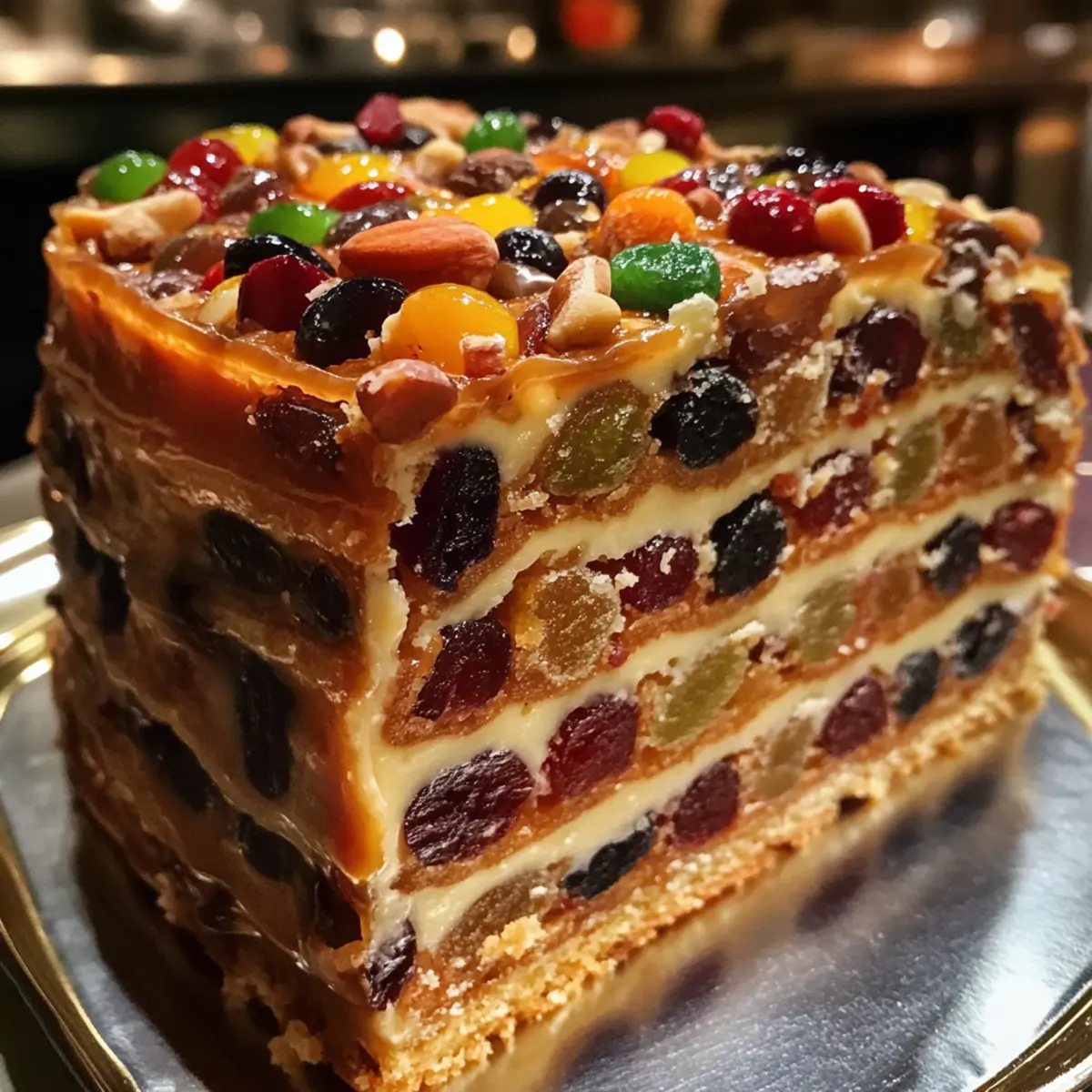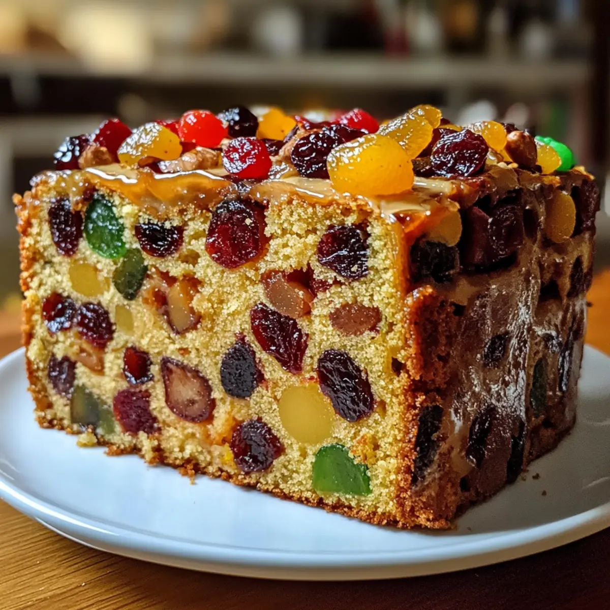 As the scents of warm spices drift through the kitchen, I find myself transported to cozy holiday gatherings, where every slice tells a story. This Brandy-Aged Fruitcake is the perfect way to celebrate the season, transforming humble ingredients like dried fruits and nuts into a rich, spiced masterpiece. Not only does this recipe embrace a delightful flavor thanks to the aging brandy, but it also ensures that you can skip the store-bought versions loaded with preservatives. With just a bit of patience, you’ll create a moist, decadent cake that’s perfect for sharing with loved ones or indulging in during quiet moments at home. Curious to dive into the magic of this traditional holiday treat? Let’s get baking! Why Make a Brandy Fruitcake? Delightfully Rich Flavor: The aged brandy infuses the cake with a depth of flavor that elevates it far beyond any store-bought version. Time-Tested Tradition: Embrace a beloved holiday classic that has stood the test of time, connecting you to festive traditions. Versatile Decorations: Top your cake with marzipan or fondant for a stunning presentation, just like the Black Forest Cake you adore! Crowd-Pleasing Treat: This fruitcake is sure to impress at gatherings, pairing perfectly with a rich cup of tea or coffee while you savor the moments. Make-Ahead Wonder: With the ability to be made well in advance, you’ll free up precious time during the busy holiday season. Wholesome Indulgence: Packed with nutrients from fruits and nuts, this cake is not just treat but a nourishing slice of joy! Ready to fill your home with the aroma of spices? Join me in celebrating the season with this exciting fruitcake adventure! Christmas Fruit Cake with Brandy Ingredients For the Cake Base Almonds – Provides a rich, nutty flavor and texture; can replace with any other nuts for variety. Walnuts – Adds crunch and earthy notes; substitute with pecans if desired for a different taste. Dark Raisins – Contributes sweetness and moisture; light raisins can be used for a milder flavor. Light Raisins – Complements dark raisins with less intense sweetness. Zante Currants – Intensifies the flavor profile; replace with more raisins if necessary for a fruity base. Candied Orange Peel – Adds citrusy sweetness and bitterness; use lemon peel as a substitute if needed. Candied Cherries – Offers sweetness and vibrant color; fresh cherries can be used but will alter moisture. Lemon (zest and juice) – Brightens and balances sweetness; any citrus zest can work well. For the Batter Brandy – Acts as a flavor enhancer and preservative; substitute with whiskey or rum if preferred. All-Purpose Flour – Provides structure; gluten-free flour can be used with adjustments for texture. Baking Powder – Ensures leavening for a light texture; baking soda can be a substitute in some cases. Cinnamon, Nutmeg, Ginger – These spices add warmth and depth to your cake’s flavor. Table Salt – Enhances the overall flavor of the cake. Unsalted Butter – Adds richness and moisture; margarine can be used for a dairy-free option. Brown Sugar – Contributes moisture and a deep caramel flavor; can swap with coconut sugar for a healthier choice. Eggs – Provides binding and leavening; flax eggs can be used for a vegan version. For the Icing Apricot Preserves – Ideal for icing, adding a fruity element; replace with any other fruit spread if desired. Marzipan & Fondant – Optional decorations for a festive finish and beautiful presentation. With these fresh and wholesome ingredients, you’re on your way to creating a delightful Christmas Fruit Cake with Brandy that tells a story with every slice! Let’s turn that holiday spirit into a baking adventure! Step‑by‑Step Instructions for Christmas Fruit Cake with Brandy Step 1: Soak the Fruits Begin by combining the almonds, walnuts, dark raisins, light raisins, Zante currants, candied orange peel, candied cherries, lemon zest, and lemon juice in a large bowl. Pour in the brandy, ensuring all ingredients are well coated. Cover the bowl with plastic wrap and let this mixture soak overnight at room temperature, allowing the dried fruits to plump and infuse with the rich flavors. Step 2: Preheat the Oven The next day, preheat your oven to 350°F (175°C). While the oven warms up, prepare a 9-inch cake pan by greasing it with butter and lining the bottom with parchment paper. This will ensure your Christmas Fruit Cake with Brandy doesn’t stick and comes out perfectly after baking, revealing its beautiful, moist texture. Step 3: Mix the Dry Ingredients In a medium-sized mixing bowl, sift together the all-purpose flour, baking powder, cinnamon, nutmeg, ginger, and table salt. This helps aerate the flour and evenly distribute the leavening agents and spices. Set this mixture aside while you focus on creaming the butter and sugar, as these dry ingredients will soon blend harmoniously with the soaked fruits. Step 4: Cream Butter and Sugar Using a large mixing bowl, beat the unsalted butter and brown sugar together with an electric mixer on medium speed until the mixture is light and fluffy, around 3-5 minutes. Gradually add the eggs, mixing well after each addition until fully incorporated. This creamy base will contribute to the moistness and density you expect from a delightful Christmas Fruit Cake with Brandy. Step 5: Combine Mixtures Carefully fold the soaked fruit mixture into the creamed butter and sugar using a spatula. Then, slowly add the flour mixture, mixing gently until just combined. Be careful not to overmix; you want to maintain the cake’s fluffy texture while ensuring all ingredients are evenly distributed, setting the stage for a rich, flavorful cake. Step 6: Bake the Cake Pour the batter into your prepared cake pan, smoothing the top with a spatula for even baking. Place it in the preheated oven and bake for approximately 55 minutes, or until a toothpick inserted into the center comes out clean. As soon as you remove the ca