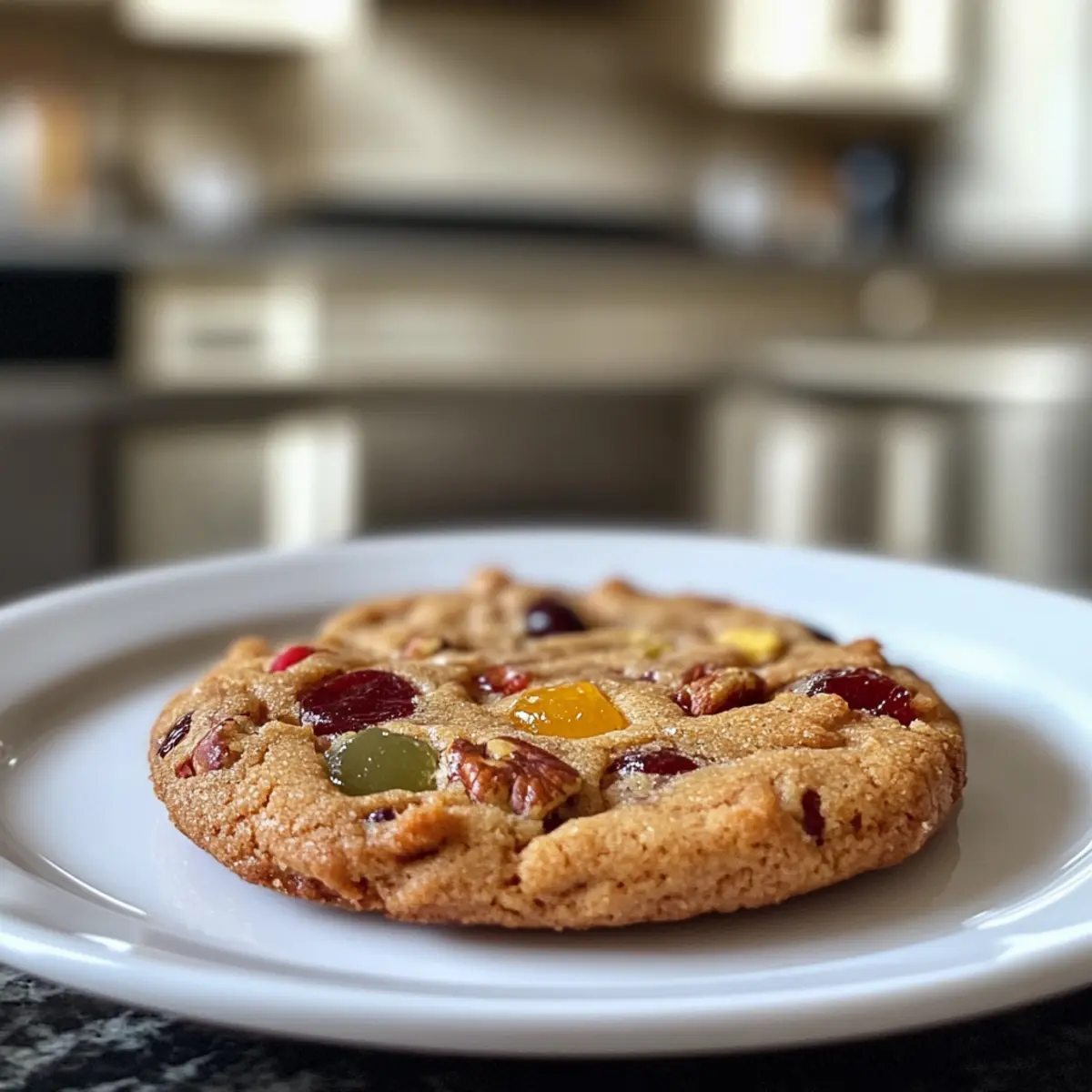 As the aroma of spices wafts through the air, it instantly transports me back to cozy holiday afternoons spent baking with my family. These Easy Christmas Fruitcake Cookies are a perfect blend of nostalgic flavors, featuring dried fruits and crunchy pecans that make them a delightful twist on a classic fruitcake. Unlike the traditional dense cakes, these cookies are quick to whip up and perfect for sharing—ideal for holiday exchanges or sending to friends far away. Not only do they taste even better after a couple of days, but they also bring a touch of warmth and cheer to any festive gathering. Ready to get festive in your kitchen? Let’s make some memories! Why are these cookies a holiday must-have? Nostalgic Flavors: With a delightful mix of dried fruits and spices, these cookies are a tasty throwback to cherished holiday traditions. Quick and Easy: Enjoy the holiday spirit with minimal effort; they come together in no time! Shareable Joy: Perfect for cookie exchanges or sending some love to friends and family afar. Versatile Ingredients: Customize with your favorite fruits or nuts, like substituting pecans for walnuts for a unique twist. Flavorful Freshness: These cookies actually improve after a day or two, making them perfect for prepping in advance. Make sure to serve them with a warm cup of tea or coffee for the ultimate cozy experience! Christmas Fruitcake Cookies Ingredients For the Batter Butter – Adds richness and moisture; make sure it’s softened to the right consistency to avoid spreading. Sugar – Provides sweetness and contributes to the perfect texture. Egg – Acts as a binder, helping the cookies hold their shape. Vanilla Extract – Infuses warmth; can substitute with vanilla essence if needed. Almond Extract – Deepens the flavor; swap with other nut extracts for variety. Lemon Extract – Brightens up the flavor; replace with fresh lemon zest for a fresher taste. All-Purpose Flour – The base of the cookie, providing essential structure. Baking Soda – Helps the cookies rise for that tender crumb texture. Salt – Balances sweetness and enhances the overall flavors. For the Fruit and Nuts Candied Fruits – Provides the classic fruitcake flavor; chop to 1/4 inch pieces for even distribution. Chopped Pecans – Adds a delightful crunch and nutty flavor; feel free to omit or switch to your favorite nuts. These Christmas Fruitcake Cookies will bring the holiday cheer right into your kitchen, making them an essential part of your festive baking! Step‑by‑Step Instructions for Easy Christmas Fruitcake Cookies Step 1: Preheat Oven and Prepare Baking Sheet Begin by preheating your oven to 300°F (150°C). While it’s heating, line a cookie sheet with a silicone mat or parchment paper to ensure your Easy Christmas Fruitcake Cookies bake evenly and lift off easily once done. This preparation sets the stage for perfect cookie creation. Step 2: Cream Butter and Sugar In a large mixing bowl, add the softened butter and sugar, then cream them together using a hand mixer or stand mixer on medium speed until the mixture is light and fluffy—about 3-5 minutes. This crucial step creates a smooth batter that allows your cookies to rise beautifully and achieve that delightful texture loved by all. Step 3: Incorporate Eggs and Flavor Extracts Next, crack in the egg and pour in the vanilla, almond, and lemon extracts. Mix on low to medium speed until everything is fully blended—about 1-2 minutes. The additions of these extracts will infuse your Easy Christmas Fruitcake Cookies with warm and inviting flavors that are perfect for the holiday season. Step 4: Combine Dry Ingredients In a separate bowl, whisk together the all-purpose flour, baking soda, and salt until fully combined. Gradually add this dry mixture to the wet ingredients, mixing on low speed just until the dough comes together. Be careful not to overmix; you want your cookies to stay tender and buttery. Step 5: Fold in Candied Fruits and Nuts Gently fold in the chopped candied fruits and pecans until they are evenly distributed throughout the dough. This step ensures that every bite of your Easy Christmas Fruitcake Cookies bursts with fruity flavor and a satisfying crunch, making them even more delightful for holiday gatherings. Step 6: Scoop Dough onto Baking Sheet Using a tablespoon or a cookie scoop, drop heaping tablespoons of the cookie dough onto the prepared baking sheet, leaving about 3-4 inches between each scoop. This spacing allows the cookies to spread without merging, guaranteeing that each cookie maintains its unique shape during baking. Step 7: Bake until Golden Place the baking sheet in your preheated oven and bake the cookies for 20-25 minutes, or until you see the edges turning golden brown. The centers may appear slightly soft, but that’s what gives your Easy Christmas Fruitcake Cookies their tender texture—so trust your instincts! Step 8: Cool and Transfer Once baked, let the cookies cool on the baking sheet for 5 minutes to set their shape. Then, carefully transfer them to a wire rack to cool completely. This final step ensures they retain their delicious flavors and texture, making them the perfect festive treat! What to Serve with Easy Christmas Fruitcake Cookies These delightful treats are not just a stand-alone snack; they’re the perfect centerpiece to your holiday spread, evoking warmth and cheer. Creamy Hot Cocoa: Rich and velvety, this drink pairs perfectly, complementing the cookie’s sweet spices. The chocolatey goodness adds a festive touch. Festive Fruit Salad: A colorful medley of fresh fruits brings brightness, balancing the cookies’ richness. The crunch and juiciness elevate the flavor profile. Spiced Chai Tea: The warming spices of chai enhance the holiday spirit, echoing the flavors in the cookies while creating a cozy atmosphere. Gingerbread Ice Cream: Creamy and fragrant, this ice cream introduces a crisp, cool contrast to the tender cookies, making each bite a