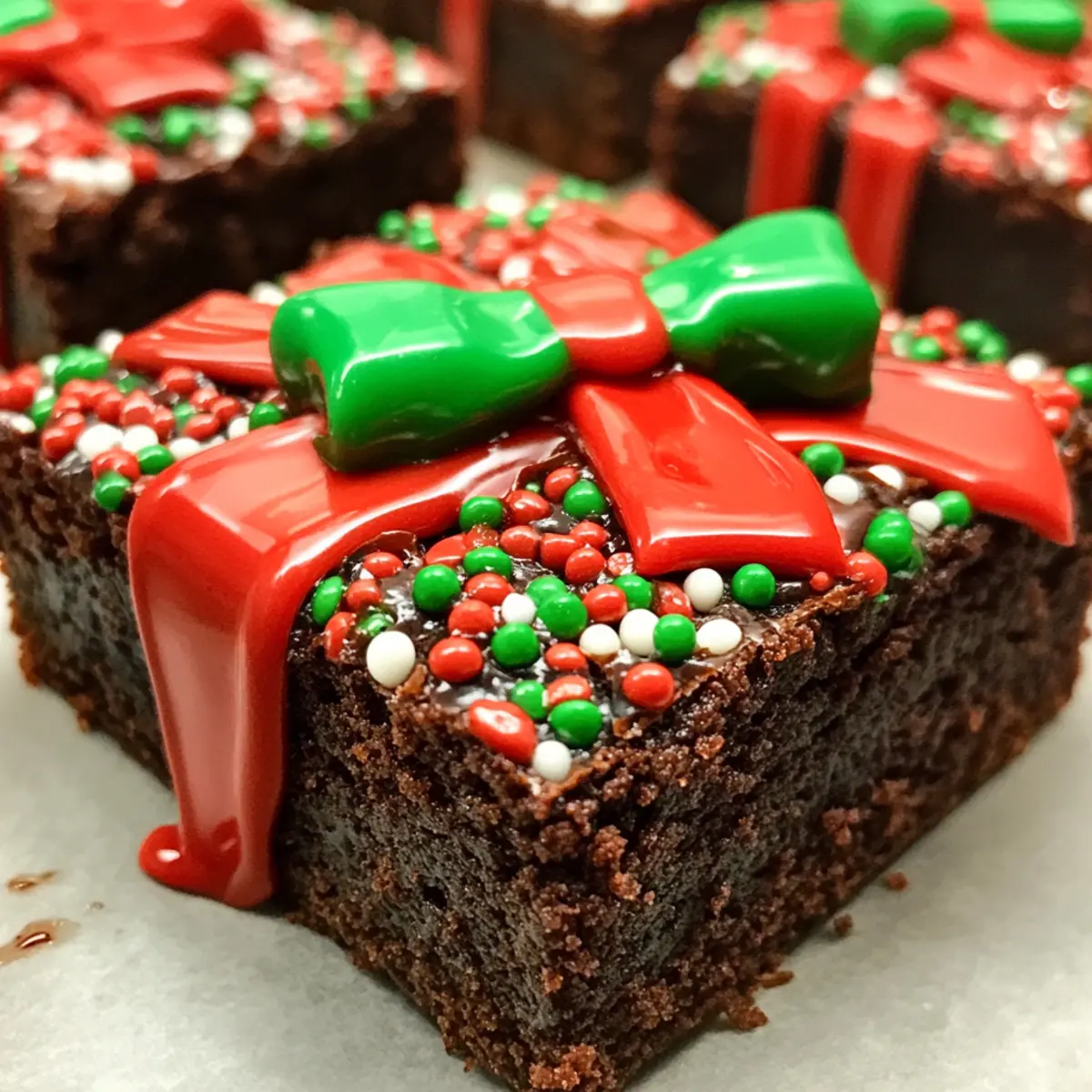 As I sift through vibrant sprinkles and creamy candy melts, a wave of nostalgia washes over me. These Christmas Present Brownies capture the spirit of the holiday season perfectly, resembling delightful little gifts crafted with love. Rich, fudgy, and deliciously chocolatey, this recipe not only makes a stunning centerpiece for any festive gathering but also invites the entire family into the kitchen to share in the joy of decorating. Whether you’re looking to quickly impress your guests or create a healthier spin on a classic treat, these brownies are adaptable to your needs. Plus, they’re a heartwarming way to replace fast food with some homemade love! Are you ready to unwrap the secrets to these scrumptious delights? Why are these brownies perfect for holidays? Delightful Decorations: Transforming simple brownies into festive presents is a joy! Fun for Everyone: Perfect for involving family in decoration, turning baking into a joyful tradition. Fudgy Texture: Each bite offers rich chocolate goodness that melts in your mouth. Healthy Options: With ingredient swaps, you can tailor these to fit a healthier lifestyle without sacrificing flavor. Time-Saver: Quick to prepare, you’ll have enough time to enjoy the festivities! Impressive Presentation: Their vibrant colors make them a standout centerpiece for any gathering, leaving your guests in awe. Christmas Present Brownie Ingredients For the Brownies Unsalted Butter – Provides rich flavor and moisture; consider replacing part with unsweetened applesauce for lower fat. Granulated Sugar – Sweetens and helps create a chewy texture; coconut sugar can be used for a healthier alternative. Large Eggs – Binds the ingredients and adds moisture; ensure they are at room temperature for the best incorporation. Vanilla Extract – Enhances flavor beautifully. All-Purpose Flour – Gives structure; for gluten-free option, use a gluten-free flour blend. Unsweetened Cocoa Powder – Provides chocolate flavor; use high-quality cocoa for a richer taste. Baking Powder – Serves as a leavening agent for lightness. Salt – Balances sweetness and enhances flavor. Semi-Sweet Chocolate Chips – Adds extra fudginess; substitute with dark chocolate for a richer brownie. For Decoration Candy Melts (Red, Green, White) – For decoration resembling ribbons; alternatively, melt white chocolate chips and color for a fun effect. Mini Candy Bows / Holiday Sprinkles – Optional toppings that enhance the festive presentation and appeal. With these ingredients for your Christmas Present Brownies, you’re on your way to creating a delightful treat that embodies the spirit of the holiday season! Step‑by‑Step Instructions for Christmas Present Brownies Step 1: Prepare Oven & Pan Preheat your oven to 350°F (175°C) and line a 9×13-inch baking pan with parchment paper, leaving an overhang on the sides for easy removal. This ensures that your Christmas Present Brownies bake evenly and come out of the pan effortlessly once they’re cooled. Step 2: Melt Butter & Mix Wet Ingredients In a medium saucepan over low heat, melt the unsalted butter gently. Once melted, remove it from the heat and whisk in granulated sugar until fully combined and smooth. Allow the mixture to cool slightly before adding in the eggs (at room temperature) and vanilla extract, stirring until you achieve a thick, glossy texture that’s delightful to behold. Step 3: Mix Dry Ingredients While the wet ingredients are cooling, sift together the all-purpose flour, unsweetened cocoa powder, baking powder, and salt in a separate mixing bowl. This step is essential for ensuring that your dry ingredients are well-combined and free of lumps, contributing to the fudginess of your Christmas Present Brownies. Step 4: Combine Mixtures Gently fold the dry ingredients into the wet mixture using a spatula. Be careful not to overmix; you want to keep the batter light and airy. If you’re adding semi-sweet chocolate chips for an extra indulgent touch, fold them in at this stage to enhance the fudgy goodness of your brownies. Step 5: Bake Pour the brownie batter into the prepared pan, smoothing the top with your spatula. Bake in the preheated oven for 30-35 minutes, checking for doneness by inserting a toothpick; it should come out with a few moist crumbs but not wet batter. Once baked, allow the brownies to cool completely in the pan on a wire rack. Step 6: Decorate Once the brownies are fully cooled, cut them into squares. Melt your candy melts separately in the microwave or over a double boiler until smooth. Carefully drizzle the melted candy over each brownie to create festive ribbon decorations, and finish off with mini candy bows or sprinkles for a delightful holiday touch. Step 7: Set Decorations Allow the decorated Christmas Present Brownies to set at room temperature. If you’re in a hurry, you can refrigerate them to speed up the setting process. This will help ensure the candy decorations hold their shape and add a festive flair to these charming treats. Storage Tips for Christmas Present Brownies Room Temperature: Store brownies in an airtight container at room temperature for up to 4 days. This keeps them fresh and fudgy, perfect for snacking throughout the holiday season. Fridge: If you need a little extra time, refrigerate brownies for up to a week. Just ensure they’re in an airtight container to avoid drying out. Freezer: For longer storage, freeze brownies by wrapping them individually in plastic wrap and placing them in a freezer-safe bag. They can be kept for up to 3 months. Reheating: To enjoy your brownies warm, thaw them overnight in the fridge, then microwave for 10-15 seconds until just warmed. Their delicious flavors will shine through again! Christmas Present Brownies Variations Feel the joy of personalizing your delightful brownies to suit every taste and occasion with these fun options! Lower Fat: Replace some butter with unsweetened applesauce for a lighter version while r