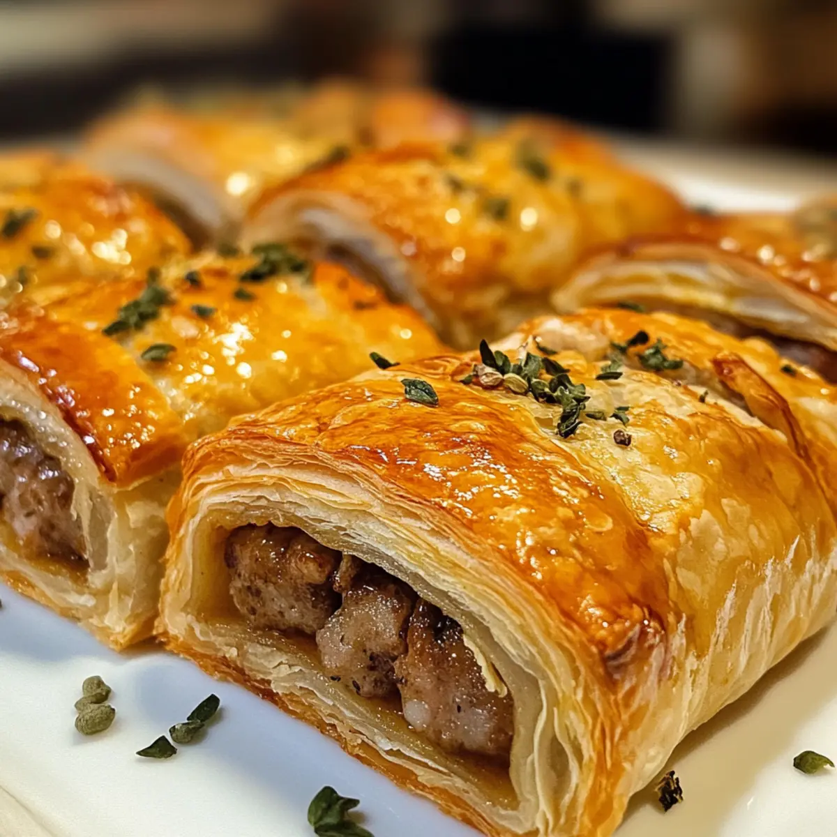 As I opened the oven, a wave of irresistible warmth and savory aroma filled my kitchen, instantly transporting me to festive gatherings filled with laughter. These Christmas Sausage Rolls are truly the star of any holiday table! With perfectly seasoned sausage meat enveloped in flaky puff pastry, they’re not just easy to prepare, but also a guaranteed crowd-pleaser that will leave your guests asking for more. Whether enjoyed as a delightful appetizer or a comforting snack, these rolls embody the spirit of the season—delicious, shareable, and oh-so-satisfying. Ready to impress your family and friends? Let’s dive into this simple recipe that will make your holiday celebrations even more memorable! Why are Christmas Sausage Rolls irresistible? Festive Flair: The moment these golden-brown rolls emerge from the oven, they elevate any holiday gathering with their inviting aroma and stunning appearance. Crowd-Pleaser: Perfectly seasoned sausage meat wrapped in flaky pastry is bound to impress guests of all ages, sparking joy at every bite. Ease of Preparation: With simple ingredients and straightforward steps, even novice cooks will find these Christmas Sausage Rolls a breeze to whip up! Versatile Delight: Whether served as a centerpiece at a festive buffet or a delightful appetizer, these rolls are adaptable to suit various tastes and can be enjoyed with an array of dipping sauces. For more charming holiday treats, don’t forget to check out the delectable Biscoff Cookie Rolls. Make-Ahead Convenience: Prepare these savory delights in advance and freeze them! Reheat effortlessly for spontaneous holiday cheer, making them perfect for unexpected guests. Christmas Sausage Rolls Ingredients • Get ready to roll with festive flavors! For the Filling Sausage Meat – Provides the main flavor and substance; consider using ground turkey or chicken for a lighter option. Onion – Adds sweetness and moisture; swapping with shallots offers a milder flavor perfect for balance. Garlic – Elevates the overall flavor profile; fresh garlic is the ideal choice, but powdered can work in a pinch. Dried Sage – Infuses a classic earthy aroma; thyme can be used if you’re looking for a different herby taste. Dried Thyme – Adds delightful herbal notes; feel free to substitute with fresh thyme, using more due to its potency. Ground Black Pepper – Offers mild heat to enhance flavor; try white pepper for a subtler twist. Salt – Essential for flavor enhancement; adjust according to your dietary preferences. Olive Oil – For cooking onions; it can easily be swapped with vegetable oil or butter. For the Pastry Puff Pastry – Creates that signature flaky, crispy texture; store-bought is preferred for simplicity, while homemade is great for advanced bakers. Egg (for egg wash) – Gives a beautiful golden-brown finish; for a dairy-free option, you can use milk instead. Get ready to indulge in these Christmas Sausage Rolls that embody festive joy and delicious flavors! Step‑by‑Step Instructions for Christmas Sausage Rolls Step 1: Preheat the Oven Begin by preheating your oven to 400°F (200°C). This high temperature is crucial as it will ensure your Christmas Sausage Rolls turn golden brown and flaky. While the oven warms, you can prepare your filling and puff pastry, making the most of your time. Step 2: Prepare the Filling In a skillet over medium heat, add a drizzle of olive oil and sauté 1 diced onion and 2 minced garlic cloves until they are soft and fragrant, about 5–7 minutes. Once cooked, allow the mixture to cool slightly before combining it with sausage meat, dried sage, thyme, black pepper, and salt. This combination of flavors will create a delicious filling for your rolls. Step 3: Prepare the Puff Pastry On a lightly floured surface, roll out your thawed puff pastry sheet to form an even rectangle, approximately 1/8-inch thick. This will ensure that your Christmas Sausage Rolls have a perfect, flaky texture once baked. Try to keep the pastry as even as possible to achieve uniform cooking throughout. Step 4: Assemble the Sausage Rolls In a large bowl, combine the cooled onion mixture with the sausage meat until well-mixed. Spoon the filling onto the edge of the puff pastry strip and roll tightly, sealing the edges by pinching them together. Cut the rolled pastry into 2-inch segments using a sharp knife, creating individual Christmas Sausage Rolls ready for baking. Step 5: Slice and Brush Using a sharp knife, gently cut a few slits into the top of each roll to allow steam to escape while baking. Then, achieve that golden-brown color by brushing the tops of the rolls with a beaten egg for the egg wash. This simple step enhances their festive appearance and adds a delightful sheen. Step 6: Bake Place the assembled sausage rolls on a baking sheet lined with parchment paper, ensuring they’re spaced apart for even cooking. Bake them in the preheated oven for 20–25 minutes, or until they are puffed and golden brown. Keep an eye on them towards the end to prevent any over-baking. Step 7: Serve Once baked to perfection, remove the Christmas Sausage Rolls from the oven and allow them to cool slightly on a wire rack. Serve warm, accompanied by your favorite dipping sauces like mustard or ketchup, to delight your guests during the festive season. What to Serve with Christmas Sausage Rolls? Elevate your festive gatherings even further with delightful accompaniments that perfectly complement these savory, flaky bites. Creamy Mustard Dipping Sauce: This tangy sauce enhances the rich flavors of the sausage rolls, making every bite even more delicious. Crisp Green Salad: Light and refreshing, a salad with mixed greens adds a nice contrast to the rich pastry and sausage. Toss in vibrant veggies for added texture and taste. Roasted Veggies: Warm, caramelized vegetables like Brussels sprouts or carrots bring earthy sweetness to balance the savory rolls, creating a wholesome meal. Mulled Wine: Warm, spic