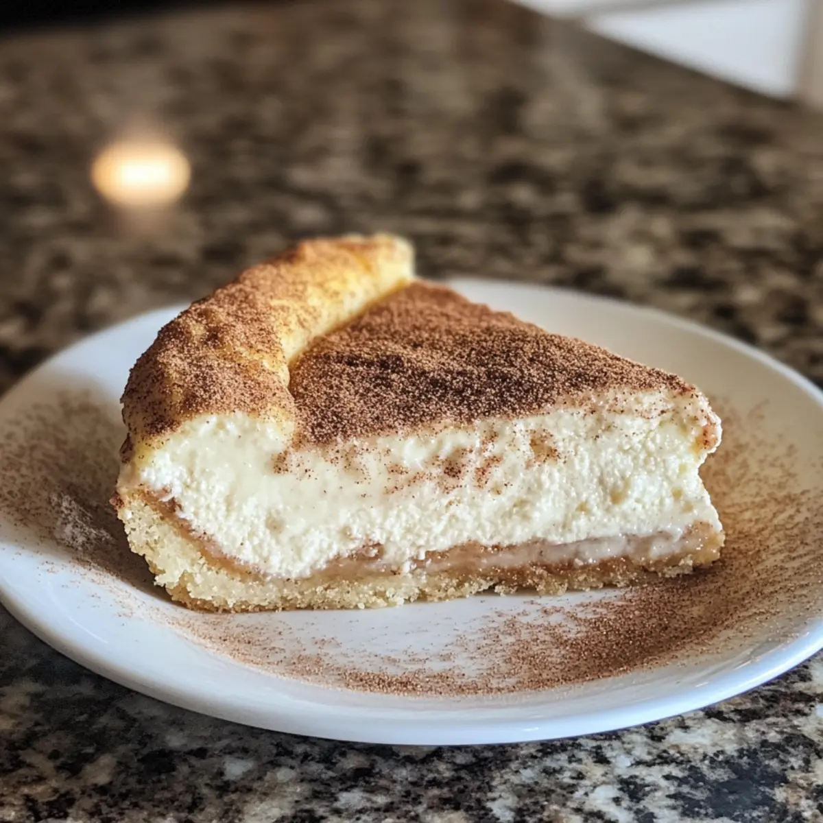 As I stood in my kitchen, nostalgia washed over me like a warm, comforting wave. The sweet scent of cinnamon floated through the air, instantly transporting me back to childhood fairs where I devoured churros with reckless abandon. Today, I’m excited to share a recipe that fuses those cherished memories with the creamy delight of cheesecake—meet my Churro Cheesecake! This easy-to-make dessert combines layers of flaky crescent roll dough, rich cream cheese, and a generous sprinkling of sweet cinnamon sugar. Not only does it serve up to 16 people, making it perfect for parties, but it’s also a fantastic make-ahead option that tastes even better after a night in the fridge. Are you ready to impress your friends and family with this delightful fusion treat? Let’s get baking! Why Is Churro Cheesecake a Must Try? Fusion of Flavors: Experience the irresistible blend of churro and cheesecake that delights the senses. Easy Preparation: This recipe is straightforward, making it perfect for both new and seasoned bakers. Crowd Pleaser: Serve this stunning dessert at your next gathering; everyone will rave about the unique combination! Make-Ahead Wonder: Prepare it a day in advance for even better flavor; it’s ideal for busy schedules. Pair it with fresh berries or drizzle with caramel for an added touch—like what you’d find in my Berry Swirl Cheesecake. You’ll definitely want to keep this delightful treat in your dessert rotation! Churro Cheesecake Ingredients For the Base Refrigerated Crescent Roll Dough – Provides a flaky, golden texture; you can use puff pastry for a different twist. For the Filling Cream Cheese – Essential for creaminess; ensure it’s softened for the best results. Granulated Sugar – Sweetens your cheesecake; feel free to swap in brown sugar for richer depth. Eggs – Large eggs help achieve structure; always use them at room temperature for smooth mixing. Vanilla Extract – Adds aromatic sweetness; opt for pure vanilla for an enriched flavor. For the Topping Cinnamon – Elevates the churro flavor in this cheesecake; fresh-ground cinnamon packs more punch. Granulated Sugar – Mix with cinnamon to create that signature churro sweetness; can also use brown sugar here for a twist. With these ingredients, you’ll create a delectable Churro Cheesecake that will surely be a hit at your gatherings! Step‑by‑Step Instructions for Churro Cheesecake Step 1: Prepare the Cinnamon-Sugar Mixture In a small bowl, combine a generous amount of granulated sugar with freshly ground cinnamon. Mix them thoroughly and let the mixture sit for about 10 minutes. This resting time enhances the flavors and ensures a delightful sweetness that will give your Churro Cheesecake that authentic churro taste. Step 2: Make the Base Layer Preheat your oven to 350°F (175°C). Unroll the refrigerated crescent roll dough onto a lightly greased baking sheet, carefully pressing the seams together to create a smooth, cohesive base. Ensure it is even, as this will provide a flaky foundation for your delicious cheesecake. Bake the base for 10 minutes, or until it’s lightly golden and puffy. Step 3: Prepare the Cheesecake Filling While the base is baking, take a mixing bowl and beat together softened cream cheese and granulated sugar until smooth and creamy. This should take about 2 minutes on medium speed. Next, add in the eggs, one at a time, mixing well after each addition, followed by the vanilla extract. Avoid overmixing; you want a lump-free consistency without any cracks. Step 4: Assemble the Churro Cheesecake Once the base layer has cooled slightly, gently spread the creamy cheesecake filling evenly over the crescent roll dough. Use a spatula for an even layer, ensuring the filling reaches the edges. Fold the dough edges over the filling, encasing it. Finally, sprinkle the cinnamon-sugar mixture generously on top, ensuring every bite has that churro magic. Step 5: Bake to Perfection Place the assembled Churro Cheesecake in the preheated oven and bake for about 25–30 minutes or until the filling is set and the top is a lovely golden brown. Keep an eye on it during the last few minutes to prevent over-baking. The edges should be firm, while the center remains slightly jiggly yet set. Step 6: Chill Before Serving Once baked, remove the Churro Cheesecake from the oven and allow it to cool at room temperature for about 30 minutes. This helps the texture settle. Then, refrigerate it for at least 4 hours or preferably overnight. Chilling enhances the flavors and creates a richer, creamier cheesecake experience that’s sure to impress everyone! What to Serve with Churro Cheesecake Enhance your dessert experience with delightful pairings that complement the creamy, sweet layers of Churro Cheesecake. Fresh Berries: Their vibrant acidity cuts through the richness, adding a pop of color and freshness to each bite. Vanilla Ice Cream: This classic pairing provides a creamy contrast, melting deliciously alongside the warm cinnamon-sugar topping. Chocolate Drizzle: A rich chocolate sauce elevates the experience, introducing a decadent layer of flavor that will satisfy any sweet tooth. Caramel Sauce: Drizzling caramel over the cheesecake enhances its sweetness, giving it that irresistible gooey texture. Coffee or Espresso: A steaming cup of coffee or espresso pairs beautifully, balancing the sweetness with a robust, bitter note. Whipped Cream: Light and fluffy whipped cream adds an airy texture to your dessert, creating a lovely contrast with the creaminess of the cheesecake. Sweet Red Wine: A chilled glass of sweet red wine complements the flavors, offering a sophisticated pairing that delights the palate. Cinnamon Hot Chocolate: Cozy and indulgent, a cup of cinnamon hot chocolate brings warmth and nostalgia, making dessert feel even more special. Chai Tea: The spicy notes in chai enhance the cinnamon flavor, making it a perfect companion for your Churro Cheesecake. Churro Cheesecake: Customize 