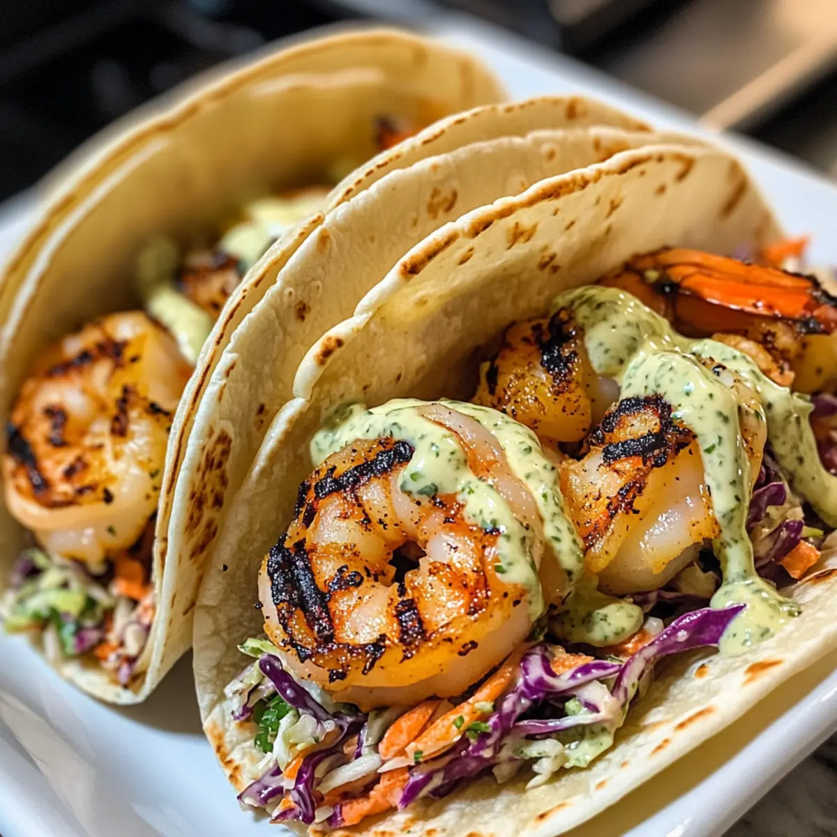 The aroma of smoky grilled shrimp evokes memories of summer evenings filled with laughter and delicious bites. As I fire up the grill, I can’t help but get excited about making my favorite dish: Cilantro Lime Shrimp Tacos with Creamy Slaw. This recipe not only brings together the bright, zesty flavors of fresh lime and cilantro but also promises a quick prep time that fits perfectly into my busy weeknight cooking routine. You’ll enjoy tender shrimp marinated in a perfect blend of spices, wrapped in soft tortillas, and topped with a crunchy slaw that adds a refreshing twist. Easy to prepare yet bursting with colorful flavor, these tacos are sure to become a favorite in your household. Curious to learn how to whip up this mouthwatering meal? Let’s get started! Why Are These Tacos So Irresistible? Bursting with flavor: The combination of juicy grilled shrimp and the zesty cilantro lime slaw brings an explosion of taste in every bite. Quick and Easy: Perfect for busy weeknights, this recipe comes together in no time—ideal for anyone weary of fast food. Versatile Options: Whether you prefer tacos with shrimp, chicken, or even tofu, you can easily customize this recipe to suit your tastes. Crowd-Pleasing: From family dinners to taco nights with friends, these tacos will impress everyone at the table. Fresh and Healthy: Packed with lean protein and fresh veggies, these tacos offer a delicious way to enjoy healthy eating without sacrificing flavor! For an amazing side option, consider whipping up some Garlic Shrimp Mashed to accompany your meal! Cilantro Lime Shrimp Tacos Ingredients For the Shrimp Shrimp – Use large, peeled, and deveined shrimp for a tender bite, fresh or frozen works perfectly. Lime Juice – Freshly squeezed lime juice enhances the flavor and provides the perfect zesty kick. Spices – A mix of chili powder, cayenne, oregano, cumin, onion powder, garlic powder, and smoked paprika elevates the shrimp’s flavor; feel free to use taco seasoning as a shortcut. For the Tortillas Tortillas – Choose between corn or flour tortillas depending on your preference; both hold the delightful flavor combination well. For the Slaw Slaw Mix – Use store-bought or homemade shredded cabbage for crunch; adding carrots can add an extra layer of texture. Red Onion – Finely diced red onion adds a mild sweetness and flavor depth to the slaw. Green Onion – Sliced green onions add a pop of color and a mild onion flavor that complements the dish. Fresh Cilantro – Essential for the cilantro lime sauce, it offers herbal freshness; parsley can be used as a substitute in a pinch. Jalapeño – Adjust the heat level to your liking; remove the seeds for a milder taste. For the Creamy Sauce Yogurt – Use plain yogurt for creaminess in the sauce; sour cream or mayo can be excellent alternatives for richness. Garlic – Minced garlic gives a flavor boost to the sauce, enhancing the overall taste profile. For Sweetness Mango or Pineapple – Diced mango or pineapple can be added for a sweet touch that perfectly balances the spiced shrimp; use as desired. This delightful combo of ingredients makes crafting Cilantro Lime Shrimp Tacos with Creamy Slaw a joyous experience, ensuring you’ll savor every bite! Step‑by‑Step Instructions for Cilantro Lime Shrimp Tacos with Creamy Slaw Step 1: Prepare the Cilantro Lime Sauce Start by making the creamy cilantro lime sauce. In a food processor, combine the fresh cilantro, yogurt, minced garlic, lime juice, and a pinch of salt. Blend until mostly smooth, but allow some texture for character. If you don’t have a food processor, you can mince the ingredients finely and whisk them together in a bowl for a more rustic feel. Step 2: Mix the Slaw In a large bowl, toss together your slaw mix—shredded cabbage and optional carrots—with about half of the prepared cilantro lime sauce. This will coat the veggies, infusing them with delicious flavor. Set aside the remaining sauce for later to drizzle on top of your tacos, ensuring every bite is packed with that zesty flavor. Step 3: Marinate the Shrimp In a separate bowl, add your large, peeled, and deveined shrimp. Sprinkle them with the spice mix, which includes chili powder, cumin, garlic powder, and smoked paprika. Drizzle with olive oil and lime juice, mixing well to ensure the shrimp are evenly coated. Allow them to marinate for about 15 minutes to absorb the flavors and enhance the taste of your Cilantro Lime Shrimp Tacos. Step 4: Preheat the Grill Preheat your grill to medium-high heat, aiming for a temperature of 375–400°F. Cleaning the grill grates and ensuring they are oiled will help prevent the shrimp from sticking, ensuring a beautiful cook. A preheated grill will give your shrimp the ideal char while sealing in their natural juices—perfect for our tacos! Step 5: Grill the Shrimp Once the grill is hot, place the marinated shrimp on the grates. Grill for 2-3 minutes on each side, watching them closely; they’ll turn a beautiful bright pink when cooked through. Avoid overcooking—juicy shrimp are essential for the best Cilantro Lime Shrimp Tacos. If grilling in batches, keep the cooked shrimp warm on a plate covered with foil. Step 6: Assemble the Tacos Warm your tortillas briefly on the grill or in a pan until pliable. To assemble each taco, lay a few grilled shrimp on a tortilla, then generously top with the slaw prepared earlier. Add a dollop of the reserved creamy cilantro lime sauce, a sprinkle of fresh cilantro, and a squeeze of lime juice for that extra zing. Enjoy your delicious creation! Cilantro Lime Shrimp Tacos Variations Feel free to get creative with this recipe; there are endless delicious twists you can explore! Chicken Swap: Replace shrimp with grilled chicken for a heartier option. Marinate chicken in the same spices for a flavorful alternative. Tofu Option: For a plant-based choice, use grilled tofu. Press and marinate tofu to absorb the spicy, zesty flavors just like 