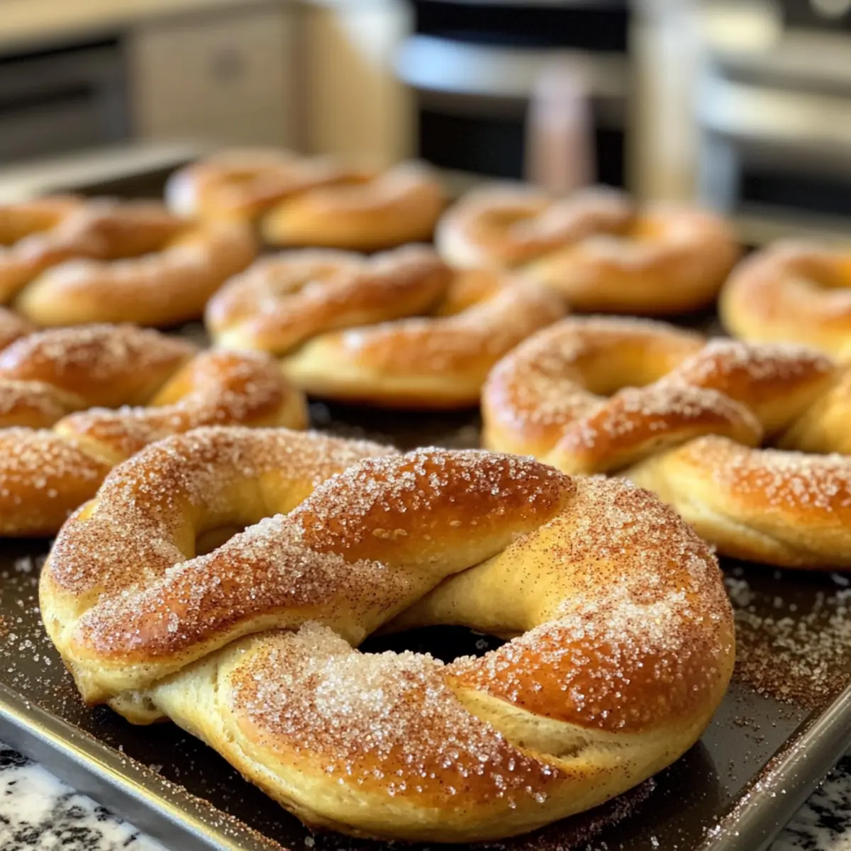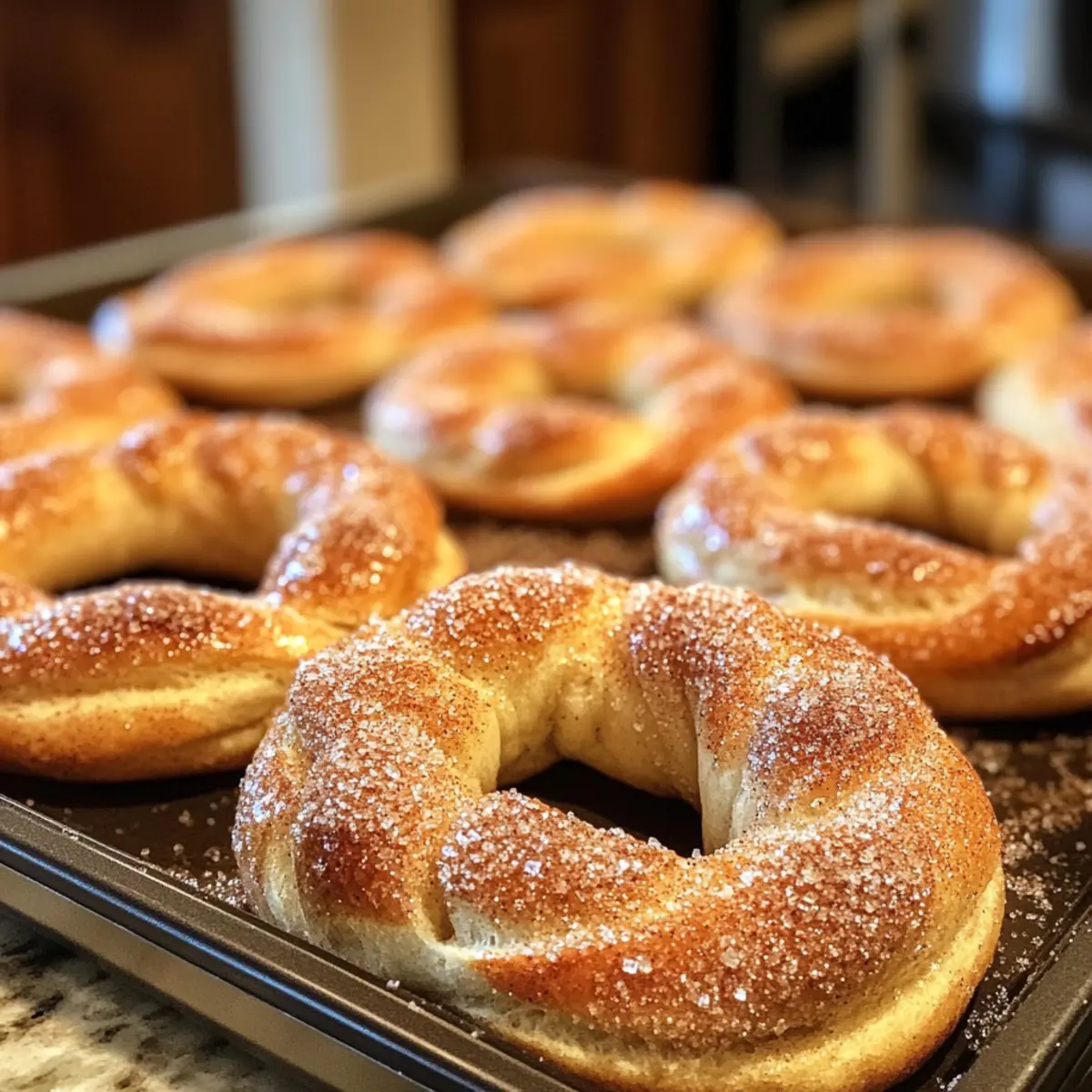 As the sweet aroma of cinnamon wafts through your kitchen, you can almost taste the nostalgia. There’s something truly special about preparing warm, homemade Cinnamon Sugar Soft Pretzels that transports me back to bustling fairs and cozy family gatherings. These easy cinnamon sugar pretzels are not only a crowd-pleaser but also a fun activity to share with loved ones, creating memories and laughter along the way. Plus, their soft, pillowy texture and delightful sweetness make them perfect for any occasion, whether it’s a movie night at home or a festive celebration. Ready to whip up a batch of happiness? Let’s dive into this comforting treat that’s sure to become a favorite in your home! Why Are These Pretzels Irresistible? Warm, Homemade Delight: Nothing beats the comforting aroma of fresh-baked pretzels wafting from your kitchen. Easily Customizable: Whether it’s drizzling chocolate or spreading cinnamon honey butter, the variations are endless! Perfect for Sharing: These pretzels are ideal for gatherings; everyone loves a warm, sweet treat! Quick & Simple: With minimal ingredients and straightforward steps, you’ll be enjoying your cinnamon sugar pretzels in no time. Childhood Memories: Relive those fair memories while making these nostalgic bites with family and friends. Versatile Pairing Options: Enjoy them as is, or serve with a warm caramel dip for an added touch. For more delightful recipes, don’t miss my Cinnamon Roll Pancakes or Soft Pretzel Dogs. Cinnamon Sugar Soft Pretzel Ingredients For the Dough • Active dry yeast – Essential for creating a soft, chewy texture that makes these cinnamon sugar pretzels so delightful. • Warm water – Activates the yeast; make sure it’s warm (not hot) for the best fermentation. • Granulated sugar – Adds sweetness and fuels the yeast process for a perfectly risen dough. • All-purpose flour – Provides the structure and chewiness that a great pretzel needs. • Salt – Enhances the overall flavor and balances the sweetness of the dough. • Unsalted butter (melted) – Adds richness and contributes to a beautiful golden finish. For the Pretzel Bath • Baking soda – Creates that signature chewy crust, crucial for true soft pretzels. For the Topping • Large egg (beaten) – Gives a lovely glossy finish when brushed on before baking. • Granulated sugar (for topping) – Sprinkles warmth and sweetness on the finished pretzels. • Ground cinnamon – Offers the warm, inviting spice that makes these pretzels irresistible! Now, let’s get ready to enjoy the magic of homemade cinnamon sugar soft pretzels! Step‑by‑Step Instructions for Cinnamon Sugar Soft Pretzels Step 1: Activate the Yeast In a mixing bowl, combine 1 cup of warm water (between 100°F to 110°F), 1 packet of active dry yeast, and 1 tablespoon of granulated sugar. Stir gently and let it sit for 5-10 minutes until it becomes frothy and bubbly, indicating that the yeast is active and ready to help our cinnamon sugar soft pretzels rise beautifully. Step 2: Prepare the Dry Ingredients In a large bowl, whisk together 3.5 cups of all-purpose flour and 1 teaspoon of salt. This combination enhances the dough’s flavor and builds its structure. Make a well in the center and be ready to add the activated yeast mixture, ensuring our pretzels will have that delightful chewiness. Step 3: Form the Dough Once the yeast is foamy, pour it into the bowl with the flour mixture, then add 2 tablespoons of melted unsalted butter. Stir everything together until a shaggy dough forms. As you mix, you’ll notice it coming together; this is your cinnamon sugar soft pretzel dough forming right before your eyes. Step 4: Knead the Dough Transfer the dough onto a floured surface and knead for 5-7 minutes, adding flour as needed. The dough should become smooth and elastic. Once it reaches the right consistency, shape it into a ball. This step helps develop the gluten, which is crucial for the chewy texture of the pretzels. Step 5: Let the Dough Rise Place the kneaded dough in a greased bowl, covering it with a damp towel. Allow it to rise in a warm spot for 1 to 1.5 hours, or until it has doubled in size. You’ll know it’s ready when it feels puffy and airy, perfectly suited for making your cinnamon sugar soft pretzels. Step 6: Shape the Pretzels After the dough has risen, punch it down to release the air. Divide it into 8 equal portions and roll each portion into an 18-inch rope. Twist each rope into a pretzel shape, placing them on a parchment-lined baking sheet. This is where the magic of your cinnamon sugar soft pretzels begins to take shape! Step 7: Preheat the Oven While you’re shaping the pretzels, preheat your oven to 375°F (190°C). This ensures your pretzels will bake evenly, developing a golden-brown crust that is as appealing as it is delicious, enticing everyone with the aroma of freshly baked treats. Step 8: Boil the Pretzels In a large pot, bring 10 cups of water to a boil and carefully stir in 1/4 cup of baking soda. Dip each pretzel into the boiling water for 30 seconds, ensuring they puff slightly. This crucial step gives the pretzels their characteristic chewy exterior and prepares them for their sweet topping. Step 9: Add the Toppings Remove the pretzels from the boiling water and place them back on the baking sheet. Brush each one with a beaten egg to achieve that glossy finish. Then, generously sprinkle them with a mixture of granulated sugar and ground cinnamon, ensuring each pretzel is beautifully coated for that irresistible flavor. Step 10: Bake the Pretzels Bake the pretzels in the preheated oven for 12-15 minutes, or until they are golden brown and fragrant. Keep an eye on them as they bake; that lovely golden color will be your signal that it’s almost time to enjoy your warm cinnamon sugar soft pretzels. Step 11: Cool and Serve Once baked, let the pretzels cool slightly on a wire rack for a few minutes. This helps them set but keeps them w