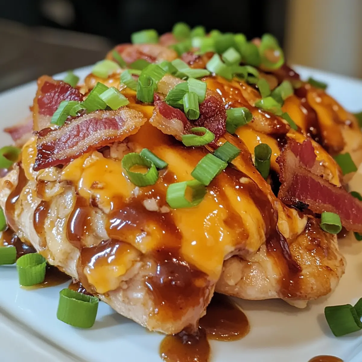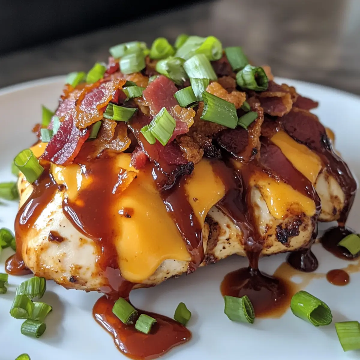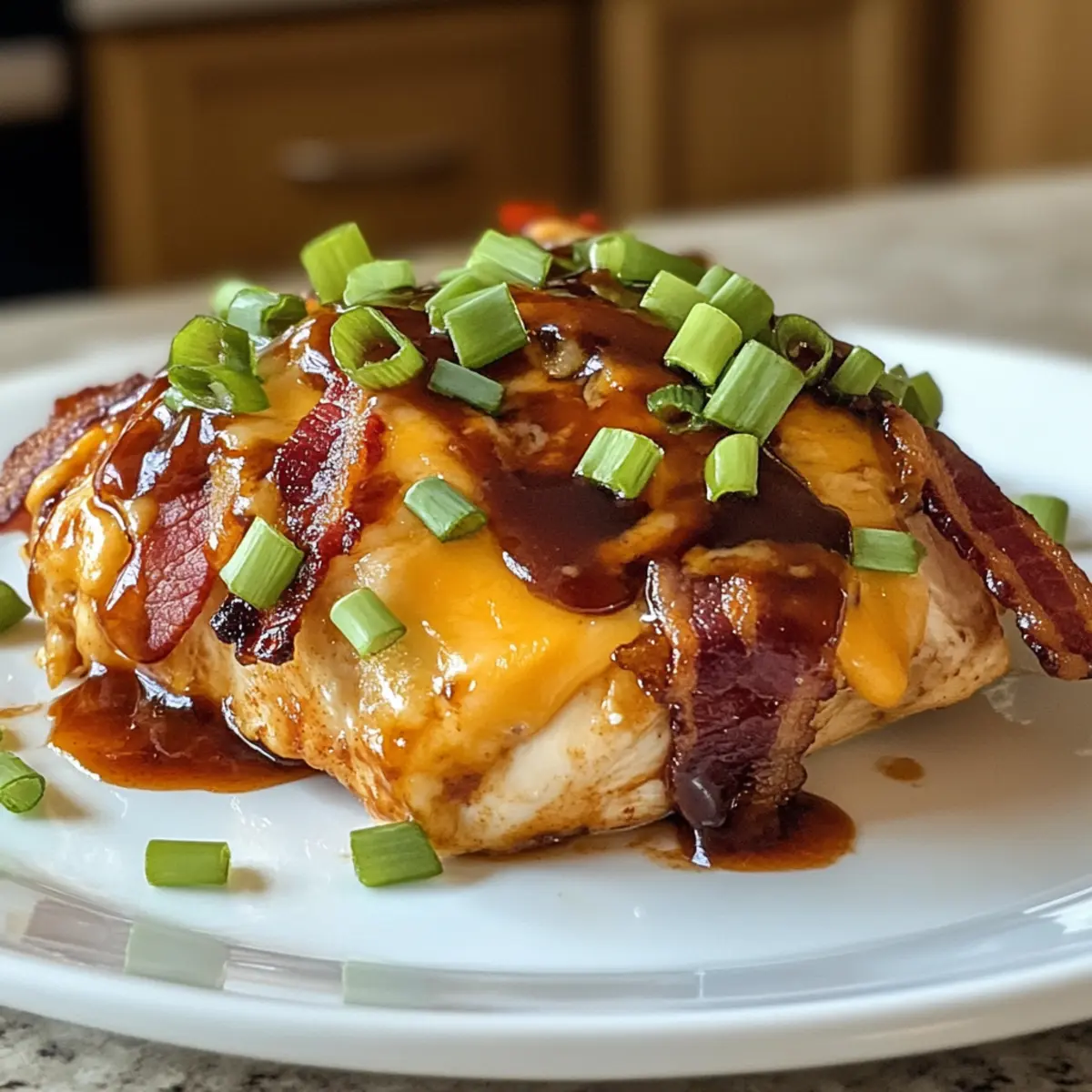 As I savored the tantalizing aroma wafting through my kitchen, I knew I was about to embark on a culinary adventure with my Cowboy BBQ Bacon Cheddar Chicken. This dish transforms ordinary weeknight dinners into an extraordinary feast, thanks to its smoky BBQ flavors, crispy bacon, and gooey cheddar. Not only is it a crowd-pleaser that will turn even the pickiest eaters into enthusiastic fans, but it also comes together quickly, making it perfect for busy evenings. Imagine biting into juicy chicken coated in tangy BBQ sauce, each mouthful a delightful blend of savory and cheesy goodness. Ready to level up your dinner game? Let’s dive into this mouthwatering recipe that’s bound to impress! Why is Cowboy BBQ Chicken the Best? Irresistible Flavor: The combination of smoky BBQ sauce, crispy bacon, and melted cheddar makes this dish a flavor explosion! Quick & Easy: With simple ingredients and straightforward steps, you can whip up this mouthwatering dinner in no time. Crowd-Pleasing Appeal: Perfect for family gatherings or dinner parties, it guarantees to impress even the pickiest eaters. Versatile Pairings: Serve with roasted vegetables or fluffy mashed potatoes to soak up the BBQ goodness; your meal will shine! Unique Twist: Unlike your typical chicken recipes, the blend of flavors creates a dish that feels special and festive. This Cowboy BBQ Bacon Cheddar Chicken will have everyone asking for seconds! Cowboy BBQ Bacon Cheddar Chicken Ingredients For the Chicken • Boneless, skinless chicken breasts – The tender base for this dish that absorbs all the delicious flavors. • Olive oil – Helps achieve a perfect golden sear while adding a touch of richness. • Garlic powder – Infuses aromatic depth that melds beautifully with smoky bacon. • Onion powder – Enhances the savory notes without adding texture, balancing the dish. • Smoked paprika – Provides the essential smoky flavor that defines this cowboy classic. • Salt – Draws out natural flavors and balances the sweetness of BBQ sauce. • Black pepper – Adds a mild kick to contrast the richness of cheese and bacon. For Toppings • Bacon – Crispy and smoky, it adds delightful crunch and an irresistible flavor boost. • Shredded cheddar cheese – Melts beautifully, delivering creamy richness and sharpness. • Barbecue sauce – The star ingredient that ties everything together with its tangy sweetness. • Green onions, chopped – Freshness and color contrast, brightening up the dish. • Red pepper flakes (optional) – For those who crave an extra kick in their Cowboy BBQ Bacon Cheddar Chicken. Step‑by‑Step Instructions for Cowboy BBQ Bacon Cheddar Chicken Step 1: Preheat Your Oven Begin by preheating your oven to 400°F (200°C). This step is crucial as it prepares the cooking environment for your Cowboy BBQ Bacon Cheddar Chicken. While waiting, get your kitchen in order and gather all your ingredients so they are easily accessible during the cooking process. Step 2: Cook the Bacon In a skillet over medium heat, cook your bacon until it becomes crispy, which should take about 5–7 minutes. As it cooks, the aroma will fill your kitchen, teasing your taste buds! Once crispy, remove the bacon from the skillet and let it cool on paper towels. Crumble the cooked bacon into smaller pieces once it has cooled slightly. Step 3: Prepare the Chicken Next, rub your boneless, skinless chicken breasts with a drizzle of olive oil. Generously season both sides of the chicken with garlic powder, onion powder, smoked paprika, salt, and black pepper. This seasoning mix will ensure that your Cowboy BBQ Bacon Cheddar Chicken is packed with flavor. Step 4: Sear the Chicken Heat a large oven-safe skillet over medium-high heat and carefully add the seasoned chicken. Sear each side for about 4–5 minutes until golden-brown and nice and crisp. This step creates a delicious crust that locks in moisture and flavor, making your chicken extra juicy. Step 5: Chop Green Onions and Prepare BBQ Sauce While the chicken is searing, chop the green onions and set them aside for garnish. You can also prepare your favorite BBQ sauce during this time. Having everything ready will help speed up the process as the chicken moves to the next stage. Step 6: Add Toppings Once the chicken has been seared to perfection, pour your BBQ sauce over the chicken in the skillet. Then, sprinkle the shredded cheddar cheese and crumbled bacon generously on top. This combination brings that mouthwatering richness that defines Cowboy BBQ Bacon Cheddar Chicken. Step 7: Bake to Perfection Transfer the skillet to your preheated oven and bake for 10–12 minutes. The chicken should reach an internal temperature of 165°F (75°C), ensuring it’s fully cooked, while the cheese melts beautifully over the top creating a gooey layer. Step 8: Garnish and Rest Remove the skillet from the oven, and garnish your Cowboy BBQ Bacon Cheddar Chicken with freshly chopped green onions and optional red pepper flakes if you love a bit of heat. Let it rest for a few minutes before serving; this helps to retain all those delightful juices inside the chicken. What to Serve with Cowboy BBQ Bacon Cheddar Chicken As the savory aroma fills your kitchen, it’s time to think about the perfect sides to accompany your flavorful chicken masterpiece. Creamy Mashed Potatoes: Their velvety texture holds onto the BBQ sauce beautifully, making each bite utterly satisfying. Roasted Vegetables: Colorful, caramelized veggies add a fresh crunch, balancing the richness of the chicken for a wholesome meal. Fluffy Rice: A hearty bed of rice absorbs the tangy BBQ sauce perfectly, ensuring no flavor goes to waste. Cook it with broth for added flavor! Caesar Salad: Crisp romaine and tangy dressing provide a refreshing contrast, lightening up the meal while enhancing flavor. Cornbread Muffins: These slightly sweet, buttery delights pair exceptionally with BBQ flavors, creating a comforting, homey vibe at the 