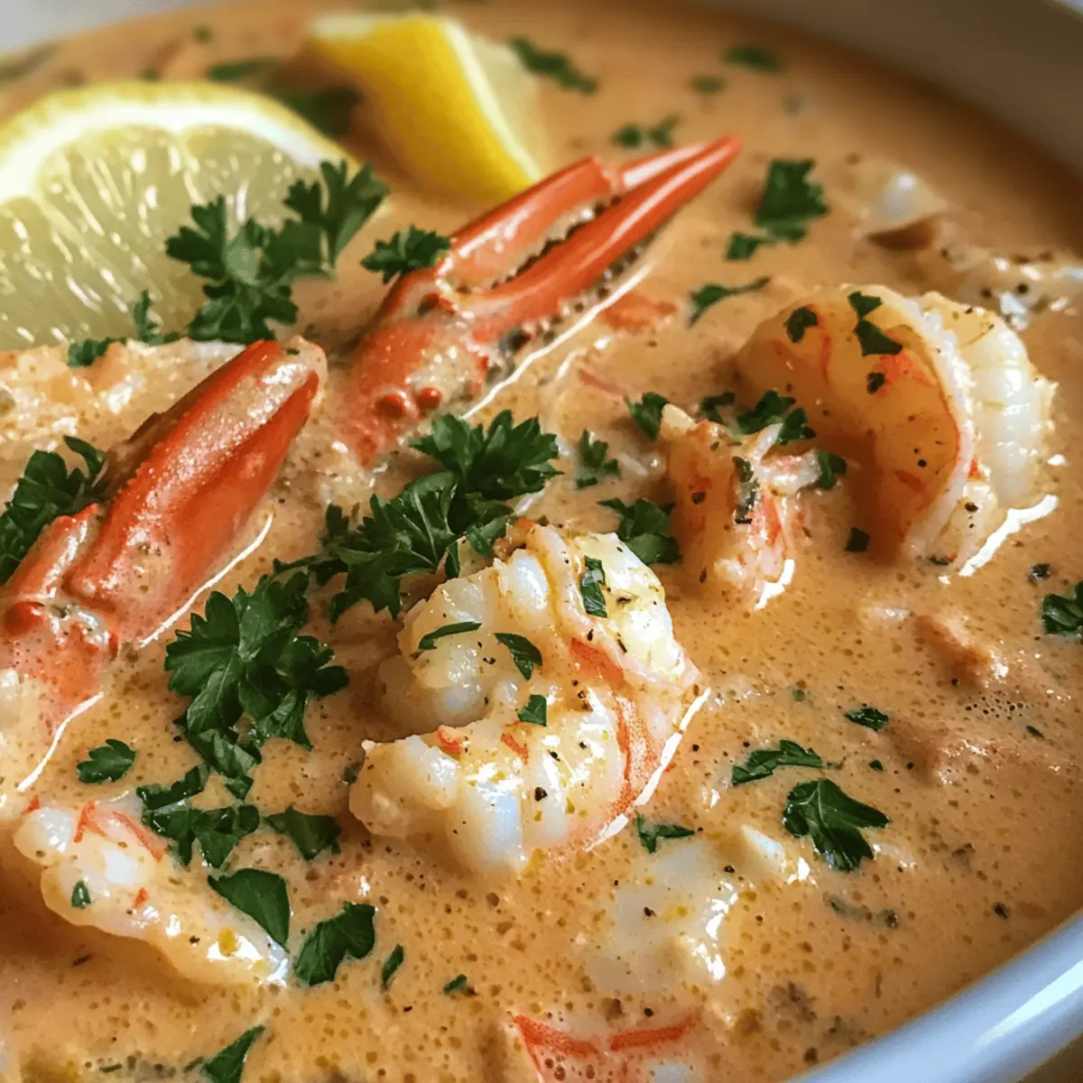 The aroma wafting from the pot instantly transports me to a quaint seaside bistro, where the waves gently lap against the shore. Today, I’m excited to share my recipe for Crab and Shrimp Seafood Bisque, a luxuriously creamy dish that feels indulgent yet can be made right in your kitchen. Not only is this bisque surprisingly easy to whip up, but it’s also easily customizable to suit your taste. Imagine gathering around the table, savoring each velvety spoonful that strikes the perfect balance between rich seafood flavors and fragrant herbs. This recipe is your passport to creating a restaurant-quality experience at home, whether you’re hosting a special occasion or simply enjoying a cozy night in. Ready to elevate your cooking game? Let’s dive in! Why is This Bisque So Special? Luxurious Flavor: Experience the richness of crab and shrimp in every spoonful, combined with fragrant herbs for an indulgent taste. Easy to Prepare: Despite its restaurant-quality essence, this bisque is surprisingly simple to make—perfect for even novice cooks. Customizable Options: Mix and match seafood or include your favorite veggies; the recipe is easily tailored to your preferences. Comfort in a Bowl: The creamy texture and delicate balance of flavors create a wonderful taste sensation reminiscent of cozy coastal dinners. Perfect for Any Occasion: Be it date night or a friendly gathering, this dish is a crowd-pleaser, just like my Cookies Cream Cupcakes for dessert! Crab and Shrimp Seafood Bisque Ingredients For the Soup Base • Butter – Adds richness and flavor; substitute with olive oil for a lighter option. • Olive Oil – Provides a base for sautéing; can be replaced with other cooking oils. • Onion – For depth and sweetness; use shallots for a milder flavor. • Celery – Adds a fresh, fragrant crunch; omit if desired. • Carrots – Contributes sweetness and color; substitute with parsnips for a different flavor. • Garlic – Enhances overall aroma and taste; fresh garlic is preferred, but powdered works in a pinch. For Thickening and Flavor • Tomato Paste – Deepens flavor; can be replaced with diced tomatoes for a lighter taste. • Flour – Thickens the bisque; use gluten-free flour or cornstarch for gluten-free adaptation. • Seafood or Chicken Broth – Forms the soup base; homemade or low-sodium store-bought is recommended. • Old Bay Seasoning – Adds a traditional seafood flavor; a mix of paprika and cayenne can spice it up. • Paprika – Offers warmth and color; smoked paprika adds even more depth. • Bay Leaf – Infuses depth of flavor; be sure to remove before serving. • Salt & Pepper – Essential for seasoning; always adjust to taste based on broth’s saltiness. For the Main Ingredients • Heavy Cream – Creates a rich, velvety texture; substitute with half-and-half or coconut cream for a lighter alternative. • Shrimp – The primary protein that brings sweetness; fresh is best, but frozen can work if thawed. • Crab Meat – Adds sweetness and luxury; fresh lump crab is ideal, while imitation changes the flavor profile. For Garnishing • Fresh Parsley or Chives – Adds garnish and freshness; feel free to use any fresh herb you prefer. • Lemon Wedges – Provides acidity and brightness, enhancing flavors when served. This Crab and Shrimp Seafood Bisque will not only warm your heart but impress your taste buds with every delightful spoonful! Step‑by‑Step Instructions for Crab and Shrimp Seafood Bisque Step 1: Prepare the Seafood Begin by peeling and deveining the shrimp, ensuring they are clean and ready to be transformed into the delicious Crab and Shrimp Seafood Bisque. Take a moment to pick through the crab meat, discarding any shell fragments you might find. Set both seafood aside, as they will be added later for that decadent finish. Step 2: Sauté the Vegetables In a large pot or Dutch oven, heat 2 tablespoons of butter and 2 tablespoons of olive oil over medium heat. Once the butter is melted and bubbling, add chopped onions, diced celery, and sliced carrots. Sauté these vegetables for about 5-7 minutes until they are soft and aromatic, creating a fragrant base for your bisque. Step 3: Add Aromatics Stir in 2 cloves of minced garlic to the softened vegetables, cooking for an additional minute until the aroma fills your kitchen. This step enhances the overall flavor profile of the Crab and Shrimp Seafood Bisque, ensuring that every spoonful carries a burst of deliciousness. Keep stirring gently to prevent the garlic from burning. Step 4: Incorporate Tomato Paste and Flour Add 2 tablespoons of tomato paste to the pot, mixing well with the vegetables. Allow it to cook for 1-2 minutes, pulling out its rich flavors, before sprinkling in 2 tablespoons of flour to coat the mixture evenly. This will help thicken your bisque, creating that desirable luxurious texture. Step 5: Add Broth and Seasonings Gradually pour in 4 cups of seafood or chicken broth, stirring as you add to combine everything smoothly. Bring the mixture to a gentle simmer, then introduce 2 teaspoons of Old Bay seasoning, 1 teaspoon of paprika, a bay leaf, and salt and pepper to taste. Allow the bisque to simmer for 10 minutes, letting the flavors meld beautifully. Step 6: Blend for Smoothness If you prefer a silky texture, now’s the time to blend the bisque. Using an immersion blender or carefully transferring it in batches to a countertop blender, puree the soup until smooth. Return it to the pot and keep it gently simmering, ensuring it maintains the warm, inviting element of your Crab and Shrimp Seafood Bisque. Step 7: Finish with Cream and Seafood Lower the heat and stir in 1 cup of heavy cream, creating that wonderfully creamy consistency that makes this bisque so indulgent. Gently add the prepared shrimp and crab meat, cooking them for 5-7 minutes until the shrimp turn opaque and everything is heated through, ensuring a tender and flavorful seafood experience. Step