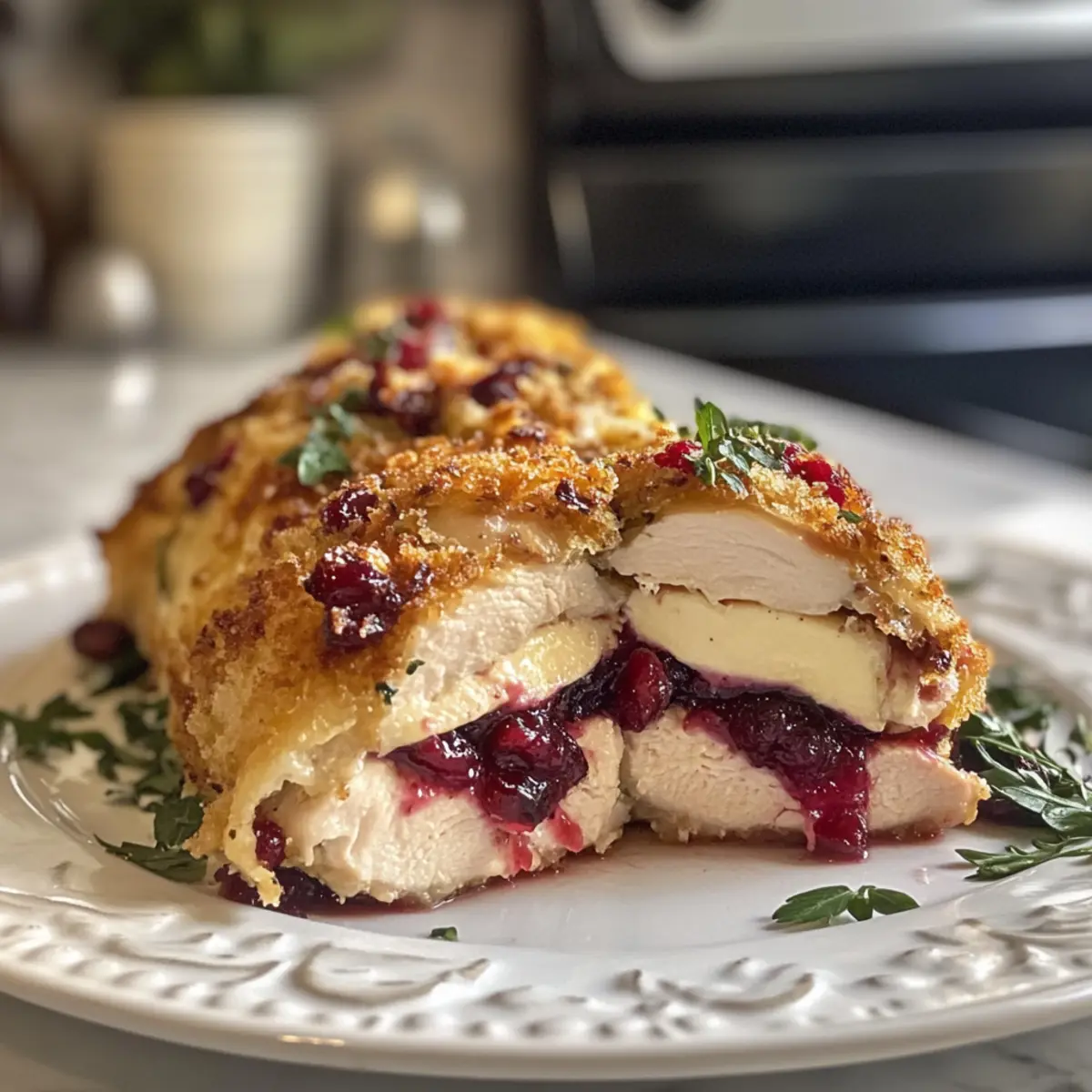 • Gluten-Free Switch: For a gluten-free version of your Cranberry Brie Stuffed Chicken, substitute regular panko breadcrumbs with gluten-free breadcrumbs without sacrificing crunch.