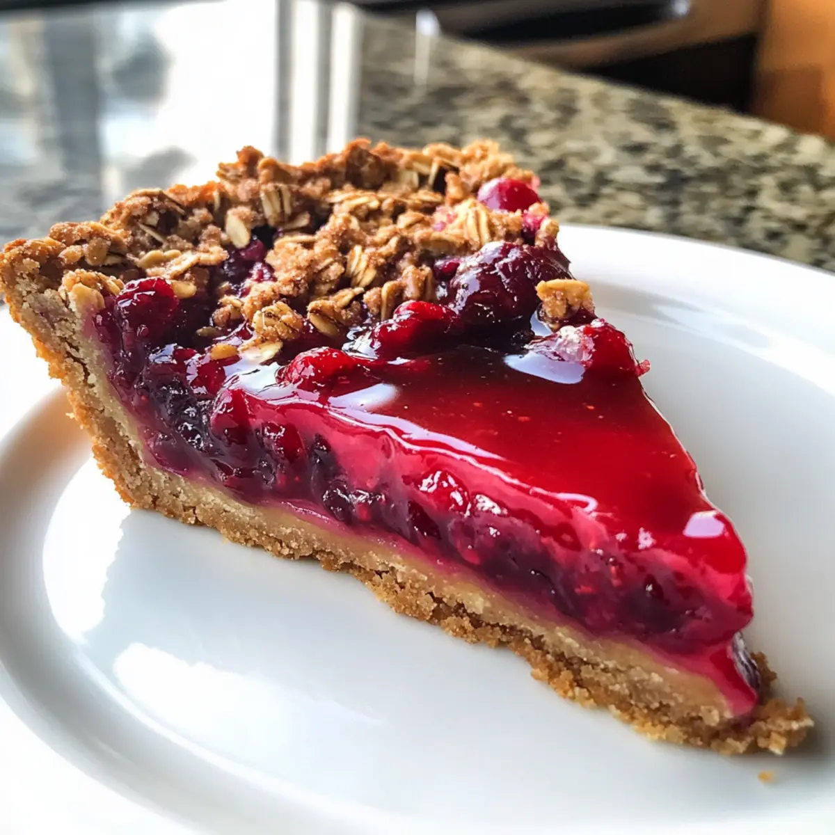 Every time I slice into this Cranberry Curd Tart, I’m instantly transported to cozy holiday gatherings filled with laughter and warmth. It features a wonderfully creamy cranberry filling paired with the delightful crunch of an oatmeal cinnamon crust that brings just the right amount of comfort to any table. This silky smooth tart not only looks stunning with its vibrant magenta hue, but it’s also incredibly easy to prepare—perfect for those busy fall and winter festivities! Plus, it’s a crowd-pleaser that impresses everyone, whether you’re serving it at Thanksgiving or just enjoying a cozy evening at home. Are you curious to learn how to craft this seasonal masterpiece? Let’s dive into the recipe! Why is this tart a must-try? Sophisticated yet simple: This Cranberry Curd Tart is perfect for beginners and seasoned bakers alike, making it accessible for everyone. Unique flavor pairing: The tart cranberries and sweet oranges create a delightful contrast that will have everyone raving about your dessert. Eye-catching presentation: Its vibrant magenta hue makes it a showstopper on any holiday table, providing a stunning visual feast. Versatile dessert: Whether it’s Thanksgiving or a winter gathering, this tart is a seasonal favorite that suits any occasion. Make-ahead friendly: The cranberry filling can be prepared up to two weeks in advance, saving you time for other festive tasks, much like the preparation for a delicious Cranberry Orange Bundt. Crowd-pleaser: Its combination of textures and flavors means that everyone, from kids to grandpas, will love it! Cranberry Curd Tart Ingredients For the Cranberry Filling • Sugar – Sweetens the filling; you can swap it for brown sugar for a richer taste. • Fresh Cranberries – The star ingredient; frozen cranberries are a great alternative if you have them on hand. • Orange Juice – Adds brightness; always choose fresh juice for optimal flavor. • Orange Zest – Enhances the citrus notes; zest before juicing to make it easier. • Eggs – Provides structure and richness; using whole large eggs will keep the tart from tasting eggy. • Unsalted Butter – Adds creaminess; if using salted butter, simply reduce the additional salt in the recipe. For the Oatmeal Cinnamon Crust • Quick Cooking Oats – Forms the base; quick oats create a finer texture, while rolled oats should be ground down. • All-Purpose Flour – Adds structure; gluten-free flour blends work well if needed. • Powdered Sugar – Sweetens and binds the crust; granulated sugar with a touch of cornstarch can be a quick substitute. • Ground Cinnamon – Infuses flavor in both crust and filling; adjust to preference, adding more for a spicier taste. • Fine Sea Salt – Balances sweetness; use half the amount if table salt is what you have. Enjoy the process of crafting this delightful Cranberry Curd Tart—it’s sure to become a cherished holiday tradition! Step‑by‑Step Instructions for Cranberry Curd Tart Step 1: Prepare the Cranberry Filling In a medium saucepan, combine fresh cranberries, orange juice, and orange zest. Cook over medium-low heat for 15–20 minutes, stirring occasionally until the cranberries burst and become soft. You’ll know it’s ready when you have a vibrant, thick mixture. Once done, transfer the contents to a blender and puree until smooth; strain through a sieve to remove any solids. Step 2: Add Eggs for Structure Allow the cranberry puree to cool slightly before adding the eggs. Whisk in the eggs gradually to prevent curdling. Then, return the mixture to the saucepan and cook on medium-low heat, stirring continuously until thickened and reaching an internal temperature of 160°F. The filling should coat the back of a spoon and have a luscious consistency. Step 3: Incorporate Butter for Creaminess Once thickened, strain the curd again into a mixing bowl. Add the unsalted butter pieces and stir until fully melted and incorporated into the warm filling. This step enriches the cranberry curd tart, giving it a silky smooth texture. Let the mixture cool at room temperature before transferring it to the refrigerator. Step 4: Make the Oatmeal Cinnamon Crust In a food processor, blend the dry ingredients for the crust: quick cooking oats, all-purpose flour, powdered sugar, ground cinnamon, and fine sea salt. Pulse until well combined and the oats are finely ground. Next, add the cold unsalted butter and blend until the mixture resembles coarse crumbs, forming a soft dough. Step 5: Shape and Chill the Crust Press the dough firmly into a tart pan with a removable bottom, ensuring an even layer across the bottom and up the sides. Chill the crust in the refrigerator for at least 30 minutes to help it hold its shape during baking. Preheat your oven to 350°F while the crust chills. Step 6: Blind Bake the Crust After chilling, blind bake the oatmeal cinnamon crust for about 30 minutes. Place a piece of parchment paper over the crust and fill it with pie weights or dried beans to prevent bubbling. When golden and firm to the touch, remove from the oven and let cool slightly before adding the cranberry filling. Step 7: Finish the Tart Pour the cooled cranberry filling into the pre-baked crust, spreading it evenly. Bake the tart in the same 350°F oven for 20–22 minutes, until the filling is just set and slightly jiggles in the center. Remove from the oven and allow it to cool at room temperature, then chill in the refrigerator for 4–8 hours before serving. Make Ahead Options These Cranberry Curd Tarts are perfect for meal prep enthusiasts! You can prepare the cranberry filling up to two weeks in advance; just store it in an airtight container in the refrigerator to keep it fresh and vibrant. The oatmeal cinnamon crust can also be made ahead; shape and blind bake it, then store it covered at room temperature for up to 3 days. When you’re ready to finish the tart, simply pour the chilled cranberry filling into the baked crust, bake 