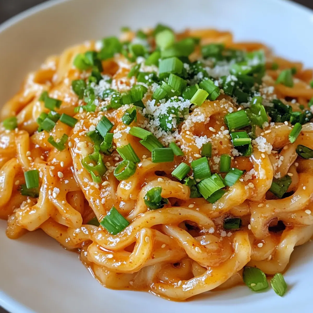 Delight in Creamy Gochujang Udon Noodles, a quick 20-minute dish that balances spice and creaminess perfectly.
