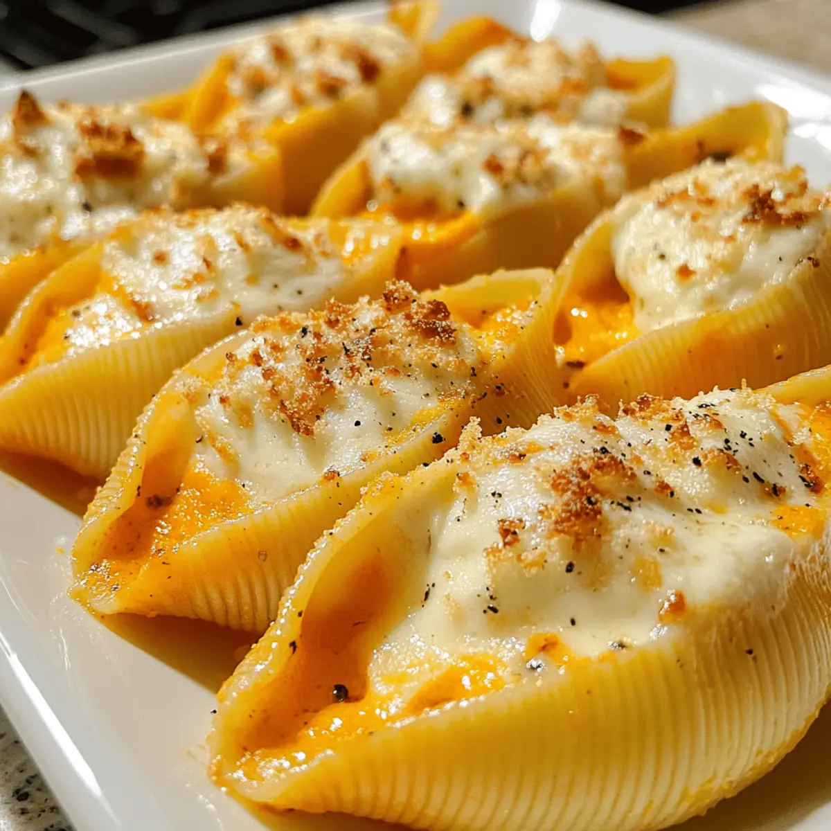 As the leaves start to turn golden and the air takes on a crispness that whispers of cozy evenings, I find myself gravitating toward dishes that embody the warmth of the season. Enter my Creamy Pumpkin Ricotta Stuffed Shells – the ultimate comfort food that marries rich flavors with comforting textures. This dish is not only easy to prepare, making it perfect for busy weeknights, but it also serves as a delightful centerpiece for family gatherings, guaranteed to impress everyone at the table. With a luscious filling of pumpkin and ricotta nestled within tender pasta shells, each bite feels like a warm hug on a plate. What’s better than devouring a cozy slice of autumn? Let’s dive into this culinary embrace together! Why Will You Love This Recipe? Deliciously Unique: These creamy pumpkin ricotta stuffed shells offer a delightful twist on traditional pasta dishes that will have your taste buds dancing this fall! Customizable Ingredients: Use what you have on hand! Feel free to experiment and make it your own, whether you prefer goat cheese or throw in some spinach for added nutrition. Crowd-Pleasing Comfort: Perfect for family dinners or hosting friends; this dish is sure to impress, much like our Ricotta Stuffed Shells or Cheesecake Stuffed Red Velvet Cookies. Easy to Prepare: With simple steps and readily available ingredients, you can whip this up even on busy weeknights! Fall Flavor Experience: Indulge in the comforting warmth of pumpkin and sage, perfectly embodying the essence of autumn in every bite! Creamy Pumpkin Ricotta Stuffed Shells Ingredients For the Pasta • Jumbo Pasta Shells – The main structure for the dish. Substitution: Manicotti or cannelloni can be used if jumbo shells are unavailable. For the Filling • Pumpkin Puree – Provides creaminess and seasonal flavor. Substitution: Homemade pumpkin puree can be made by roasting and blending a pumpkin. • Ricotta Cheese – Adds creamy texture. Substitution: Cottage cheese can be used for a lighter option; blend until smooth first. • Garlic Powder – Adds flavor base. Fresh garlic can be substituted for a stronger taste. • Dried Sage – Offers herbal notes that complement pumpkin. Substitution: Use fresh sage, thyme, or Italian seasoning for variation. • Ground Nutmeg – Adds warmth and seasonal spice. Can omit if not preferred. • Salt and Pepper – Essential for overall flavor. Adjust based on personal preference. • Egg – Binds the filling together. Can be omitted for a vegan version; use a flaxseed substitute. For Topping • Shredded Mozzarella – Melts beautifully over the shells for flavor and texture. Suggestion: Mix with provolone or sharp white cheddar for more depth. • Parmesan Cheese – Enhances flavor with nuttiness. Can be omitted or replaced with nutritional yeast for a dairy-free option. • Marinara Sauce – Keeps the dish moist during baking and adds tomato flavor. Alternative: Use Alfredo sauce for a creamy twist. • Olive Oil – Adds richness and aids browning. Alternative: Melted butter can be used. • Fresh Parsley or Sage (for garnish) – Enhances presentation and flavor. Optional, for serving. With these ingredients at your fingertips, you’re ready to embark on a culinary adventure that encapsulates the cozy essence of fall through our Creamy Pumpkin Ricotta Stuffed Shells! Step‑by‑Step Instructions for Creamy Pumpkin Ricotta Stuffed Shells Step 1: Preheat Oven Begin by preheating your oven to 375°F (190°C), ensuring a perfectly heated environment for your Creamy Pumpkin Ricotta Stuffed Shells. This step is crucial for achieving that beautiful golden melt on top. While the oven warms up, prepare your ingredients so everything is within reach. Step 2: Cook the Pasta In a large pot, bring salted water to a boil and cook the jumbo pasta shells according to package directions until al dente, usually about 8–10 minutes. Once they are slightly firm to the bite, drain the shells and rinse them under cold water to stop the cooking process and prevent sticking. Set them aside to cool. Step 3: Prepare the Filling In a spacious mixing bowl, combine the pumpkin puree, ricotta cheese, half of the shredded mozzarella, Parmesan, garlic powder, dried sage, ground nutmeg, salt, pepper, and the egg. Mix until the mixture is creamy and well-combined, creating a rich filling that embodies the flavors of fall within your Creamy Pumpkin Ricotta Stuffed Shells. Step 4: Assemble the Baking Dish Spread 1 cup of marinara sauce evenly over the bottom of a 9×13-inch baking dish. This sauce not only adds moisture during baking but also enhances the flavor profile of the stuffed shells. Make sure to cover the entire bottom to prevent sticking and provide a delicious base for your dish. Step 5: Stuff the Shells Carefully take each cooled pasta shell and generously fill it with the creamy pumpkin ricotta mixture using a spoon. Place the stuffed shells in the baking dish with the filling side facing up. Aim to fit the shells snugly, as this helps maintain their shape and keeps them from drying out during baking. Step 6: Top the Shells Once all shells are stuffed, pour the remaining marinara sauce over the tops of the shells, ensuring they are well-coated. Sprinkle the remaining mozzarella cheese generously over each shell, allowing it to melt and bubble beautifully in the oven. Drizzle a bit of olive oil on top to enhance browning and add richness. Step 7: Bake Cover the baking dish with aluminum foil to prevent the cheese from over-browning initially, then place it in the preheated oven. Bake for 25 minutes, then remove the foil and continue baking for an additional 10 minutes. Look for the cheese to be melted and golden, with a bubbly texture that promises deliciousness in each bite. Step 8: Rest and Garnish After removing the dish from the oven, allow the Creamy Pumpkin Ricotta Stuffed Shells to rest for about 5 minutes. This resting period helps the filling set, making it easier to ser