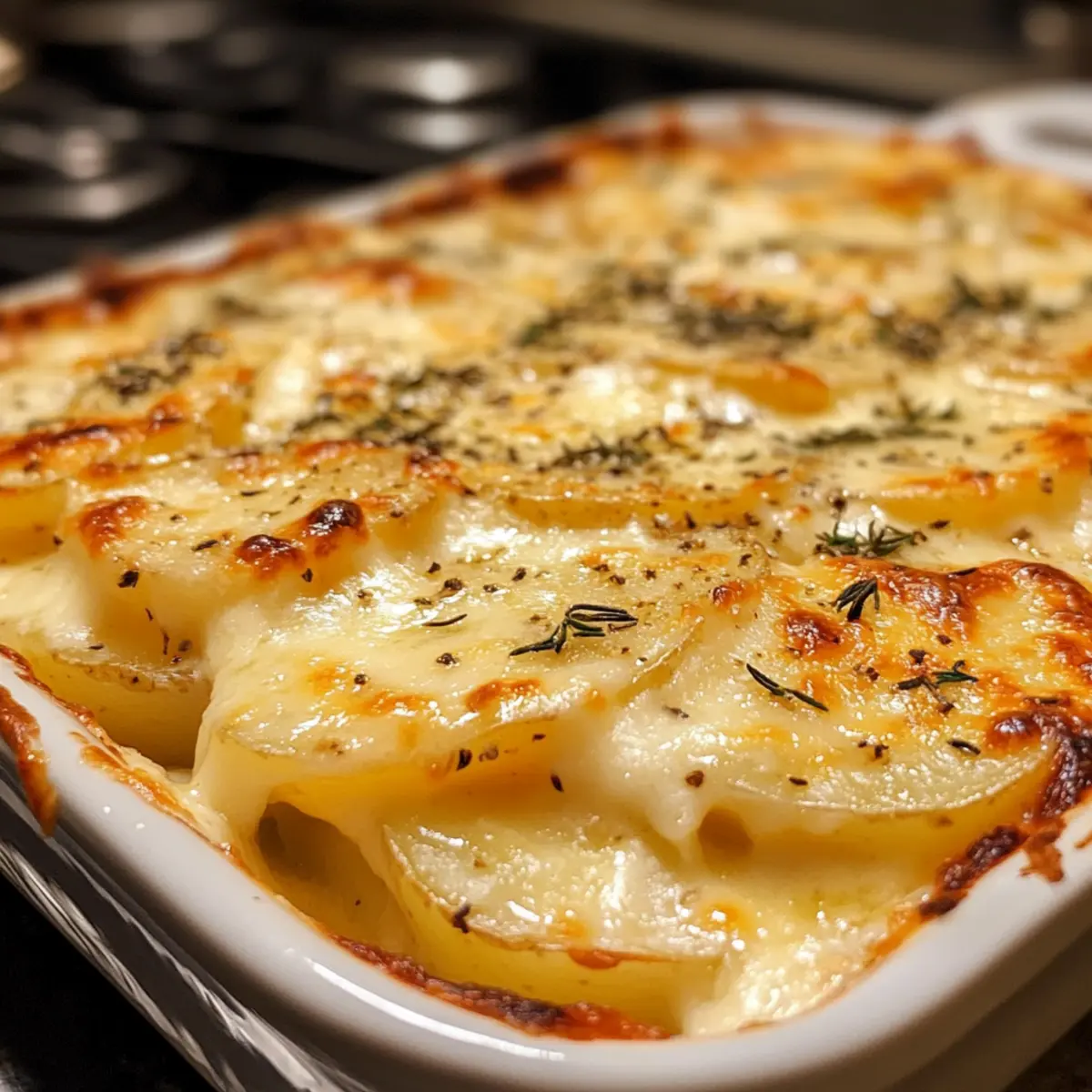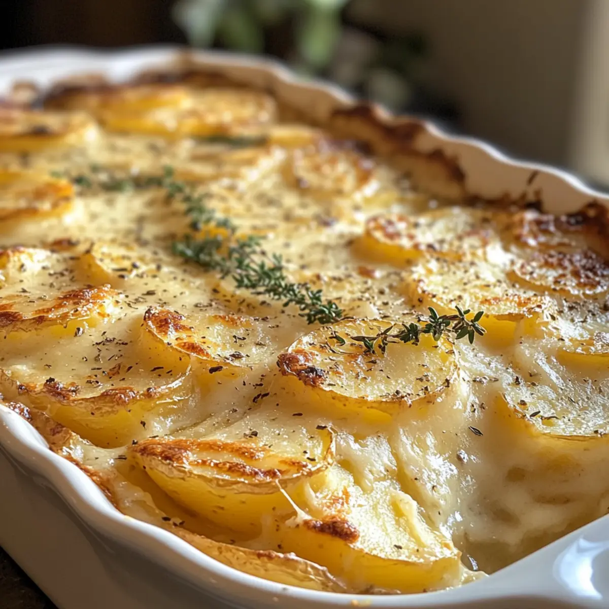 A waft of warming aromas filled my kitchen as I prepared to unveil a side dish that truly stole the show: Easy Creamy Scalloped Potatoes. With layers of tender Yukon gold potatoes nestling in a silky garlic cream sauce, this recipe is comfort food at its finest. Perfectly cheesy and easy to make ahead, these scalloped potatoes not only highlight the richness of each ingredient but also offer a gluten-free option for all to enjoy. Whether it’s a cozy family dinner or a festive holiday feast, this dish easily adapts to any occasion. Are you ready to elevate your cooking game with a comforting classic? Let’s dive in! Why Are Creamy Scalloped Potatoes Irresistible? Comforting Layers: Each spoonful reveals tender potatoes enveloped in a divine garlic cream sauce that’s simply irresistible. Make-Ahead Magic: Prepare these scalloped potatoes a day in advance for ultimate convenience, perfect for busy weeknights or holiday gatherings. Versatile Pairing: They complement everything from a succulent roast chicken to a festive holiday spread, ensuring you’re covered for any meal. Gluten-Free Delight: With easy substitutions, even gluten-free friends can indulge in this cozy side without compromise. Crowd-Pleasing Appeal: Whether you’re hosting a family dinner or a potluck, these creamy scalloped potatoes are sure to win hearts around the table. Creamy Scalloped Potatoes Ingredients • Key ingredients to create cheesy bliss! For the Potatoes Yukon Gold Potatoes – Their creamy texture is perfect for scalloping; russet potatoes can be used for a fluffier result. For the Sauce Unsalted Butter – This rich component enhances the sauce’s flavor; olive oil can provide a lighter option. Garlic – Freshly minced garlic adds aromatic depth; garlic powder can substitute but may change the flavor. All-Purpose Flour – This builds a roux for the sauce; use cornstarch or rice flour for a gluten-free version. Heavy Cream – Ensures a silky texture; almond milk thickened with cornstarch offers a dairy-free substitution. Parmesan Cheese – This nutty cheese contributes a delicious crust; cheddar or Gruyère can be used for a richer flavor. Fresh Thyme – Provides an herbaceous note; use dried thyme at a ratio of 1:3 for a suitable alternative. Kosher Salt – Elevates the overall flavor; regular salt will work in a pinch. Black Pepper – Adds a hint of spice; feel free to omit for a milder taste. For the Topping Extra Parmesan – A sprinkle on top enhances the cheesy experience and ensures a lovely browning during baking. Step‑by‑Step Instructions for Creamy Scalloped Potatoes Step 1: Preheat and Prepare the Dish Start by preheating your oven to 400°F (200°C). While it heats, take a ceramic baking dish and grease it lightly with butter to prevent sticking. This will ensure that your creamy scalloped potatoes slide out easily when serving, maintaining their lovely layers and buttery goodness. Step 2: Slice the Potatoes Peel the Yukon gold potatoes and slice them thinly using a mandoline or a sharp knife—aim for about 1/8 inch thickness. Layering the potatoes in even slices will help them cook uniformly in the oven, resulting in tender bites enveloped in the creamy sauce. Set the sliced potatoes aside as you prepare the sauce. Step 3: Sauté the Garlic In a large pot over medium heat, melt 4 tablespoons of unsalted butter. Once melted, add minced garlic and sauté for about 1 minute until fragrant, stirring constantly to avoid burning. The aroma of the garlic will enhance the rich flavor of your creamy scalloped potatoes, adding depth to the sauce. Step 4: Create the Roux Sprinkle in ¼ cup of all-purpose flour, stirring it into the melted butter and garlic to create a roux. Cook this mixture for 1-2 minutes, allowing it to bubble and thicken slightly. This step is crucial as it forms the base of your creamy sauce, giving it a velvety texture that coats the potatoes beautifully. Step 5: Add the Cream Gradually whisk in 2 cups of heavy cream, continuing to stir vigorously as the mixture thickens—this should take about 5 minutes. Watch for the sauce to start bubbling gently and to coat the back of a spoon. The creamy consistency should be smooth and luscious, perfect for enveloping the layers of potatoes. Step 6: Incorporate Cheese and Seasonings Once the cream thickens, stir in 1 cup of grated Parmesan cheese, 1 teaspoon of fresh thyme, and a generous pinch of kosher salt and black pepper. Mix well until the cheese is melted and the sauce is smooth. This cheesy, herb-infused flavor will elevate your creamy scalloped potatoes to a comforting masterpiece. Step 7: Combine Potatoes and Sauce Carefully fold the sliced potatoes into the creamy mixture, ensuring every slice is evenly coated in the heavenly sauce. This step ensures that every bite of your creamy scalloped potatoes is bursting with flavor. The coated potatoes should glisten with the rich sauce, setting you up for a delicious bake. Step 8: Arrange in Baking Dish Start arranging the coated potato slices upright in a greased baking dish, creating an attractive layered effect. Once all the potatoes are neatly in place, pour any remaining creamy sauce over the top, ensuring all the layers are well covered. Sprinkle an additional ½ cup of Parmesan on top for a golden, cheesy crust. Step 9: Bake the Dish Cover the baking dish with aluminum foil and place it in your preheated oven. Bake for 30 minutes, then remove the foil and continue baking for another 30 minutes. You’ll know your creamy scalloped potatoes are ready when the top is golden brown and bubbly, creating an irresistible visual appeal. Step 10: Rest Before Serving Once baked to perfection, remove the dish from the oven and let it rest for 10 minutes before serving. This resting period allows the sauce to thicken slightly, making it easier to serve without falling apart. Your creamy scalloped potatoes will be perfectly comforting and ready to be shared with family or frien