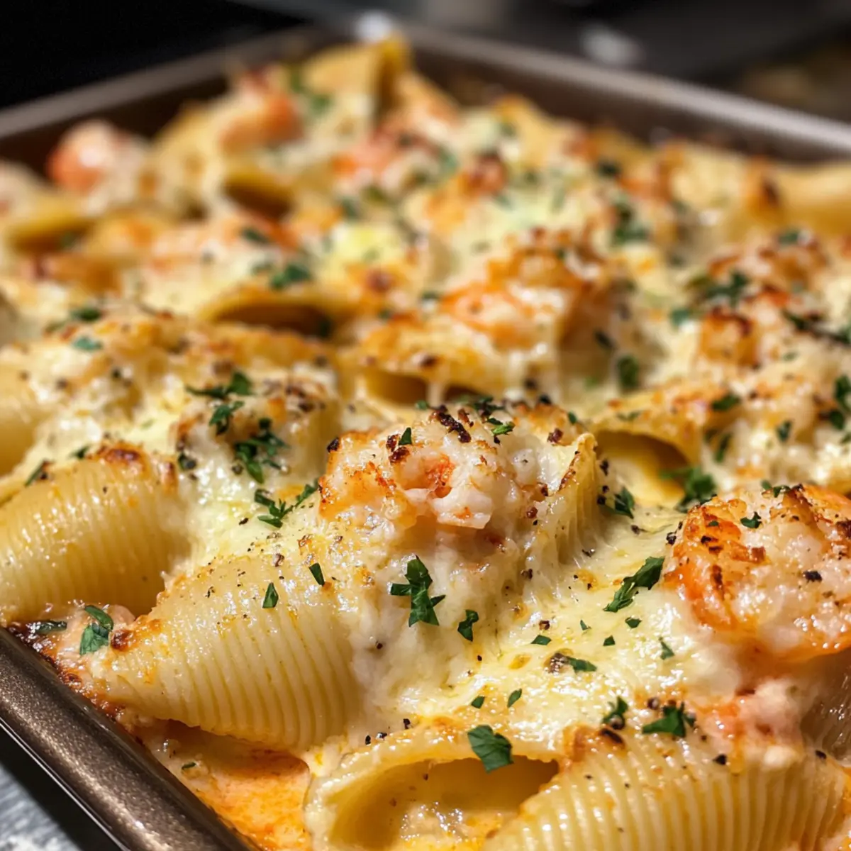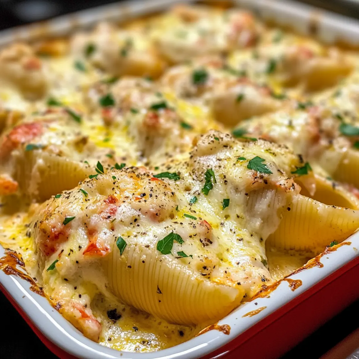 As I rummaged through the pantry, my eyes landed on a box of jumbo pasta shells, and a delightful idea began to swirl in my mind. What better way to create a comforting meal than with creamy seafood stuffed shells? This dish has quickly become my go-to for family dinners and special occasions, receiving rave reviews every time it graces the table. With a sensational filling of lobster, crab, and shrimp enveloped in a luscious creamy sauce, it transports you straight to a cozy seaside restaurant, minus the drive. Not only is this recipe a true crowd-pleaser, but it’s also wonderfully versatile, allowing you to swap in your favorite seafood or add a personal twist. Ready to discover how to whip up this comforting masterpiece? Let’s dive in! Why are Creamy Seafood Stuffed Shells a Must-Try? Comforting Indulgence: Each bite of these Creamy Seafood Stuffed Shells is like a warm hug, thanks to the rich filling of succulent lobster, sweet crab, and tender shrimp enveloped in a creamy sauce. Customizable Delight: Feel free to get creative by substituting your favorite seafood or even incorporating veggies like spinach for added nutrition. Perfect for Gatherings: This dish is a guaranteed hit at parties or family dinners, elevating any spread. It pairs wonderfully with a fresh green salad or garlic bread. Quick Prep Time: With straightforward steps, you’ll have this gourmet meal ready to enjoy in no time. Say goodbye to fast food and hello to home-cooked goodness! Saucy Goodness: The luscious sauce that envelops the stuffed shells is simply irresistible, ensuring every mouthful is bursting with flavor and comfort. Care to explore other stuffed delights? Check out these Ricotta Stuffed Shells for another comforting journey! Creamy Seafood Stuffed Shells Ingredients For the Filling Jumbo Pasta Shells – A perfect vessel for holding the creamy seafood blend. Lobster Meat – Opt for fresh for the most luxurious flavor in your stuffed shells. Crab Meat – Adds a delightful sweetness; fresh crab is recommended for best taste. Shrimp – Choose peeled and deveined shrimp for convenience and mild, complementary flavor. Cream Cheese – Provides a rich, creamy texture; swap for light cream cheese if desired. Mozzarella Cheese – Freshly shredded mozzarella offers the best meltability and texture. For the Sauce Butter – Essential for sautéing and enriching the sauce with flavor. Flour – Acts as a thickening agent; gluten-free flour works too if needed. Heavy Cream – Creates a luscious, creamy sauce; half-and-half can be used as a light alternative. Parmesan Cheese – Adds a nutty depth to the flavor of your sauce. Garlic – The aromatic base that elevates the entire dish. Salt and Pepper – Simple seasonings that enhance the overall flavors of these creamy seafood stuffed shells. Step‑by‑Step Instructions for Creamy Seafood Stuffed Shells Step 1: Prepare Seafood In a large skillet, melt 2 tablespoons of butter over medium heat. Add minced garlic and sauté until fragrant, about 1 minute. Then, fold in the lobster and crab, cooking for an additional 2–3 minutes until heated through. Once done, transfer the mixture to a bowl and set aside to cool slightly while you prepare the filling for the Creamy Seafood Stuffed Shells. Step 2: Mix Filling In a mixing bowl, blend the cooked seafood mixture with 8 ounces of cream cheese and 1 cup of shredded mozzarella until smooth and well combined. Ensure there are no lumps in the filling, allowing the flavors to meld together beautifully. This creamy mixture will serve as the luscious filling for your jumbo pasta shells, providing a rich taste in every bite. Step 3: Cook Pasta Bring a large pot of salted water to a boil and cook 12–15 jumbo pasta shells according to package instructions, until al dente. Drain the shells gently in a colander and rinse them briefly under cold water to stop the cooking process. Allow the shells to cool completely, making them easier to handle when stuffing them with the creamy seafood mixture. Step 4: Make Sauce Return the skillet to medium heat and melt 4 tablespoons of butter. Whisk in ¼ cup of flour until smooth and cook for about 1 minute. Gradually pour in 1½ cups of heavy cream and ½ cup of grated Parmesan cheese, whisking constantly. Continue cooking until the sauce thickens and is free of lumps, which should take about 3–5 minutes. This creamy sauce will be the perfect complement to the Creamy Seafood Stuffed Shells. Step 5: Assemble Preheat your oven to 375°F (190°C). Spread a thin layer of the creamy sauce onto the bottom of a 9×13-inch baking dish. Carefully stuff each cooled jumbo shell with the seafood filling, placing them evenly in the dish. Once all shells are filled, pour the remaining creamy sauce over the top, ensuring that each shell is generously coated. Step 6: Bake Cover the baking dish with aluminum foil and bake in the preheated oven for 20 minutes. After this time, carefully remove the foil and bake for an additional 10 minutes until the sauce is bubbly and golden. Keeping an eye on the shells will help prevent overbaking, ensuring they stay moist and delicious. Step 7: Serve Remove the dish from the oven and allow the Creamy Seafood Stuffed Shells to cool for about 5 minutes. This brief resting time will help the sauce set slightly and make serving easier. Garnish with fresh herbs, if desired, and dive into this comforting feast that is sure to impress your family and friends! Expert Tips for Creamy Seafood Stuffed Shells Gentle Handling: Be careful when cooking and stuffing the jumbo pasta shells. Overcooking can lead to breakage, so aim for an al dente texture. Fresh is Best: Always opt for fresh lobster, crab, and shrimp to elevate the flavor of your Creamy Seafood Stuffed Shells. Canned seafood may lack the same richness. Sauce Consistency: If your sauce seems too thick, whisk in a bit more heavy cream or broth for the perfect consistency. The right sauce enhances the stuff