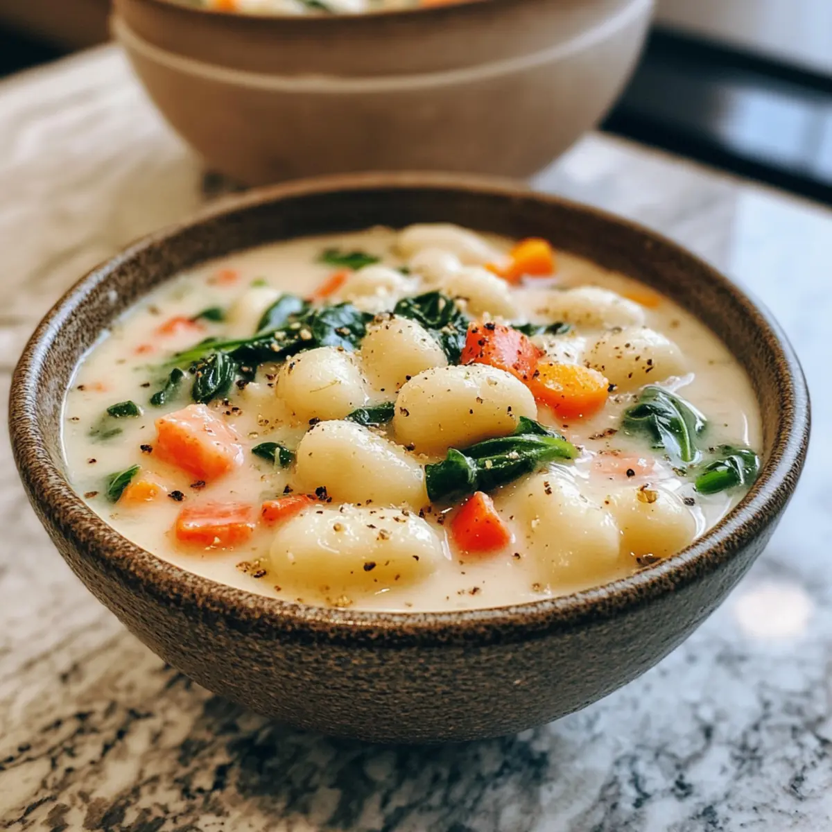 These Creamy Vegetarian Gnocchi Soup preparations are perfect for meal prep enthusiasts! You can chop your vegetables (onion, carrots, celery) and store them in an airtight container in the fridge up to 3 days ahead, which saves precious time on busy weeknights. Additionally, you can prepare the soup base (olive oil, sautéed vegetables, and broth) up to 24 hours in advance, keeping it refrigerated. Just remember to add the gnocchi, cream (or coconut cream), and spinach when you’re ready to serve to maintain the soup’s creamy texture and vibrant color. This way, you’ll have delicious, homemade warmth ready with minimal effort when it’s time to eat!