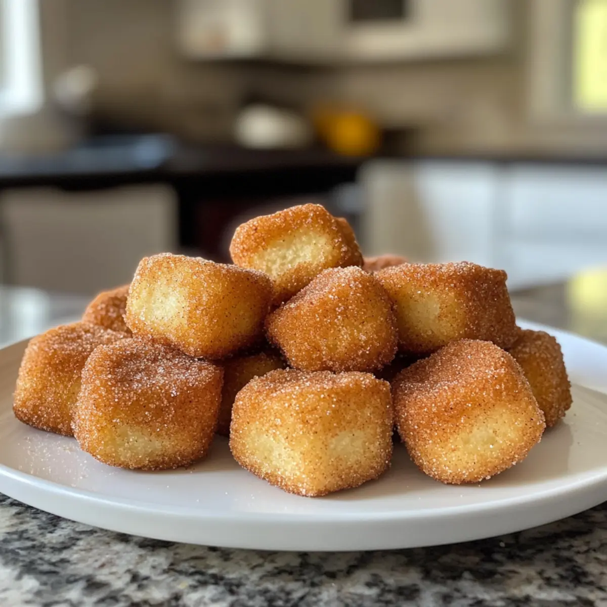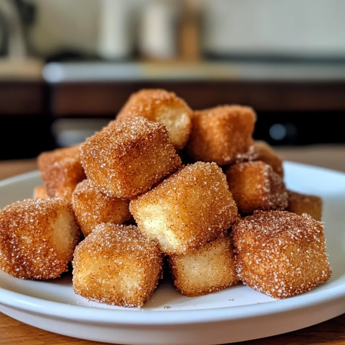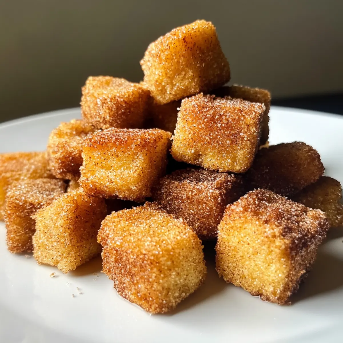 A waft of warm cinnamon fills the air as I fry these delightful bites, and I can’t help but sneak a taste. Introducing my Crispy Angel Cake Churro Bites—a blissful union of angel food cake and the beloved churro, bringing together two sweet favorites in one irresistible treat. Not only are these bites quick and easy to whip up, but they also cater to gluten-free and vegan diets, ensuring everyone can indulge in their crispy, sugary charm. Imagine serving them warm, dusted with cinnamon sugar, and dipped in chocolate sauce on a cozy evening, transforming any moment into a celebration. Curious to dive into this fun twist on dessert? Let’s get started! Why Are These Churro Bites Irresistible? Simplicity at Its Best: In just a few steps, you can create these scrumptious bites that everyone will rave about. Crispy, Light Texture: The airy angel food cake gives these churros a unique twist, making them delightfully edible clouds. Vegan and Gluten-Free: Perfect for any dietary needs, these bites invite everyone to the dessert table. Quick to Make: Ready in under 30 minutes, they’re the perfect solution for unexpected guests or a late-night craving. Endless Customization: Whether you opt for Berry Bliss or a Nutty Delight version, you can enjoy these bites in countless ways. Each bite is a little piece of heaven, guaranteed to satisfy your sweet tooth. Don’t forget to serve them with warm chocolate sauce for that extra indulgence! Crispy Angel Cake Churro Bites Ingredients For the Cake Bites • Angel Cake Mix – Choose a gluten-free variety to ensure everyone can enjoy these delectable bites. • Sugar – Use regular sugar or substitute with coconut sugar for a less processed option. • Cinnamon – This warm spice is a must for authentic churro flavor; feel free to experiment by adding nutmeg or cardamom for extra warmth. • Vegetable Oil – Essential for frying; canola or coconut oil works wonders here. For the Coating • Cinnamon Sugar Mixture – Combine sugar and cinnamon to create the sweet coating that makes these Crispy Angel Cake Churro Bites irresistible. For Dipping (Optional) • Chocolate Sauce – An indulgent choice that elevates your dessert experience; warm it for ultimate drizzling! Gather these ingredients, and you’re on your way to creating a delightful treat that everyone will love! Step‑by‑Step Instructions for Crispy Angel Cake Churro Bites Step 1: Prepare the Cake Mix Begin by preheating your oven according to the angel cake mix instructions. Prepare the gluten-free angel cake mix as directed, using a mixing bowl and a whisk. Pour the batter into a greased cake pan and bake until golden brown and a toothpick comes out clean, usually around 25-30 minutes. Allow the cake to cool completely, ensuring its airy texture remains intact. Step 2: Form the Cake Bites Once the cake is cooled, scoop out small, uniform portions of the angel cake using a melon baller or your hands. Gently roll each portion into a small ball, ensuring they are compact yet light. The Crispy Angel Cake Churro Bites should be bite-sized, about the size of a golf ball, making them perfect for dipping and sharing. Step 3: Create the Cinnamon Sugar Coating In a separate bowl, combine sugar and cinnamon to create your churro coating. Mix these together well until evenly blended. This sweet mixture will enhance the flavor of your Crispy Angel Cake Churro Bites, adding delicious warmth and sweetness that complements the light texture of the angel food cake. Step 4: Heat the Oil In a deep frying pan, carefully heat vegetable oil over medium heat. Aim for a temperature of about 350°F (175°C), which you can check with a kitchen thermometer. The oil should shimmer when it’s ready. Frying at the correct temperature is crucial to achieve that crispy exterior without making the bites greasy. Step 5: Fry the Cake Bites Gently place a few of the cake balls into the hot oil, making sure not to overcrowd the pan. Fry each batch for 3-4 minutes, turning occasionally until they are golden brown and crisp on all sides. The sizzling sound and delightful aroma will indicate they’re cooking beautifully, so keep an eye on them! Step 6: Coat in Cinnamon Sugar Using a slotted spoon, remove the fried bites from the oil and let the excess drip off before transferring them to a plate lined with paper towels. While still warm, immediately roll the bites in the cinnamon sugar mixture, coating them generously. This step ensures each Crispy Angel Cake Churro Bite is deliciously sweet and sugary. Step 7: Serve and Enjoy Your Crispy Angel Cake Churro Bites are now ready to be served! Arrange them on a platter and consider offering a small bowl of warm chocolate sauce for dipping. The combination of crispy, sweet bites and rich chocolate elevates this delightful treat, perfect for any gathering or cozy night in. Crispy Angel Cake Churro Bites Variations Get ready to make these delectable bites even more exciting with a few creative twists! Berry Bliss: Add diced strawberries or blueberries to the angel cake mix for a burst of fruity sweetness. These fruity flavors can transform every bite into a summer delight, keeping things fresh and vibrant. Nutty Delight: Swap out the cinnamon sugar for a luxurious chocolate drizzle topped with crushed nuts. This variation adds a rich, nutty texture that compliments the airy cake perfectly! Flavor Infusion: Experiment with flavored angel cake mixes like lemon or chocolate to change up the taste. With just a simple swap, you can take your dessert on a delightful flavor voyage. Coconut Bliss: Top your churro bites with toasted coconut flakes after frying for an added crunch and tropical flair. The coconut’s chewiness contrasts beautifully with the airy cake within. Spiced Up: Why not add a pinch of cayenne pepper to your cinnamon sugar for a sneaky spicy kick? This unexpected heat gives your churro bites an exciting twist that’s sure to impress. For more dessert inspiration