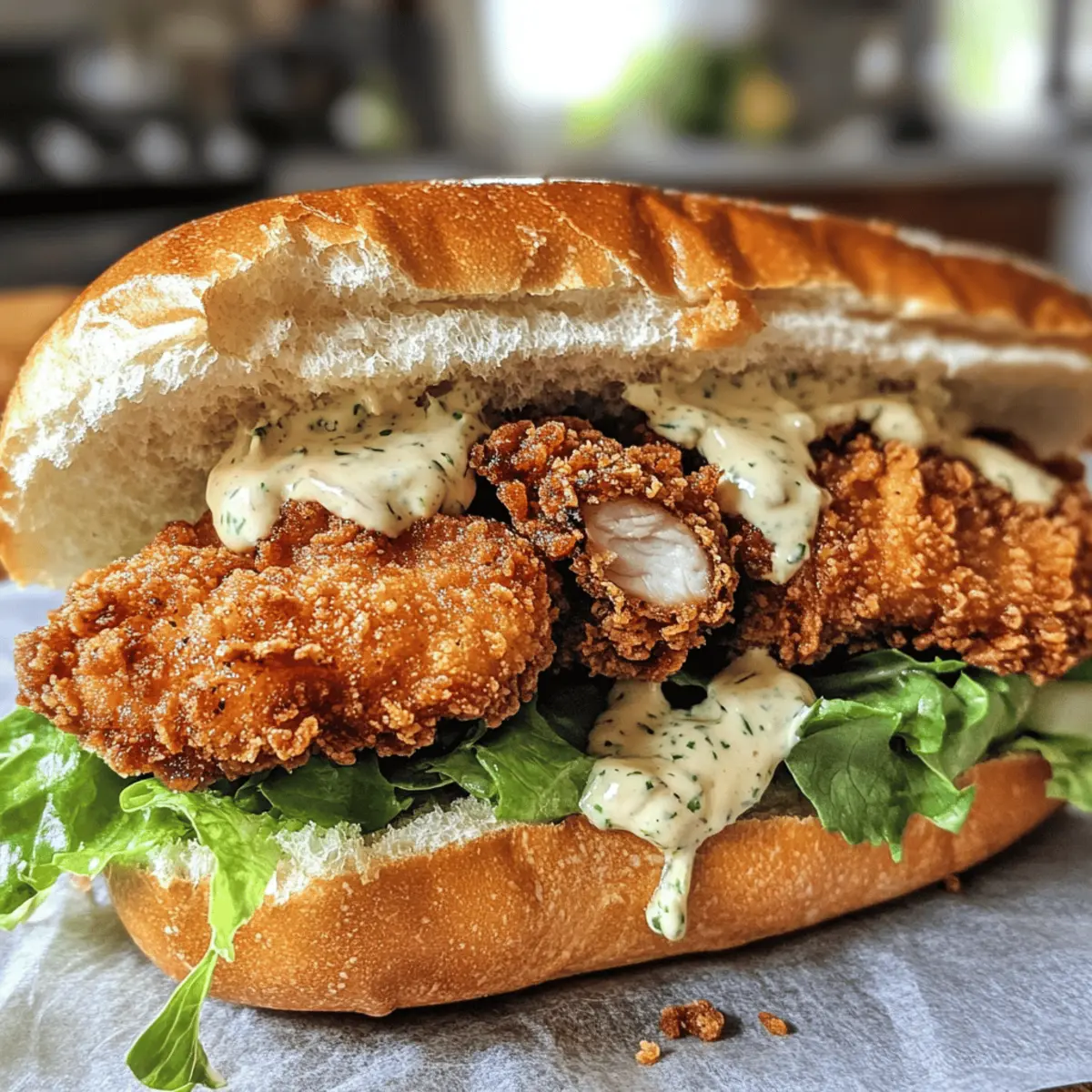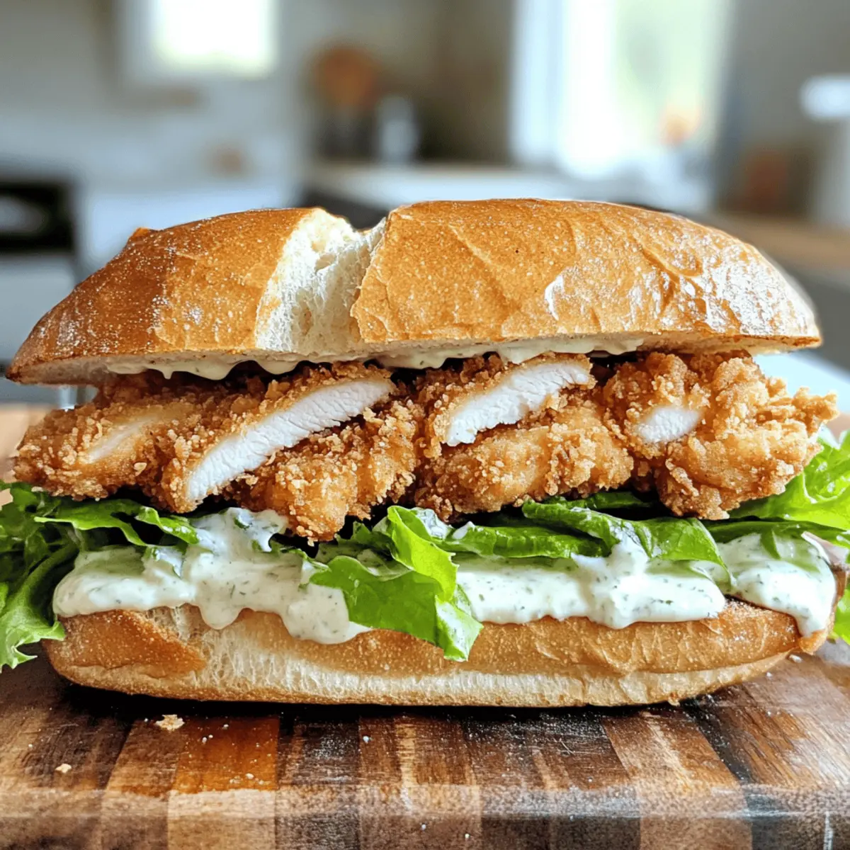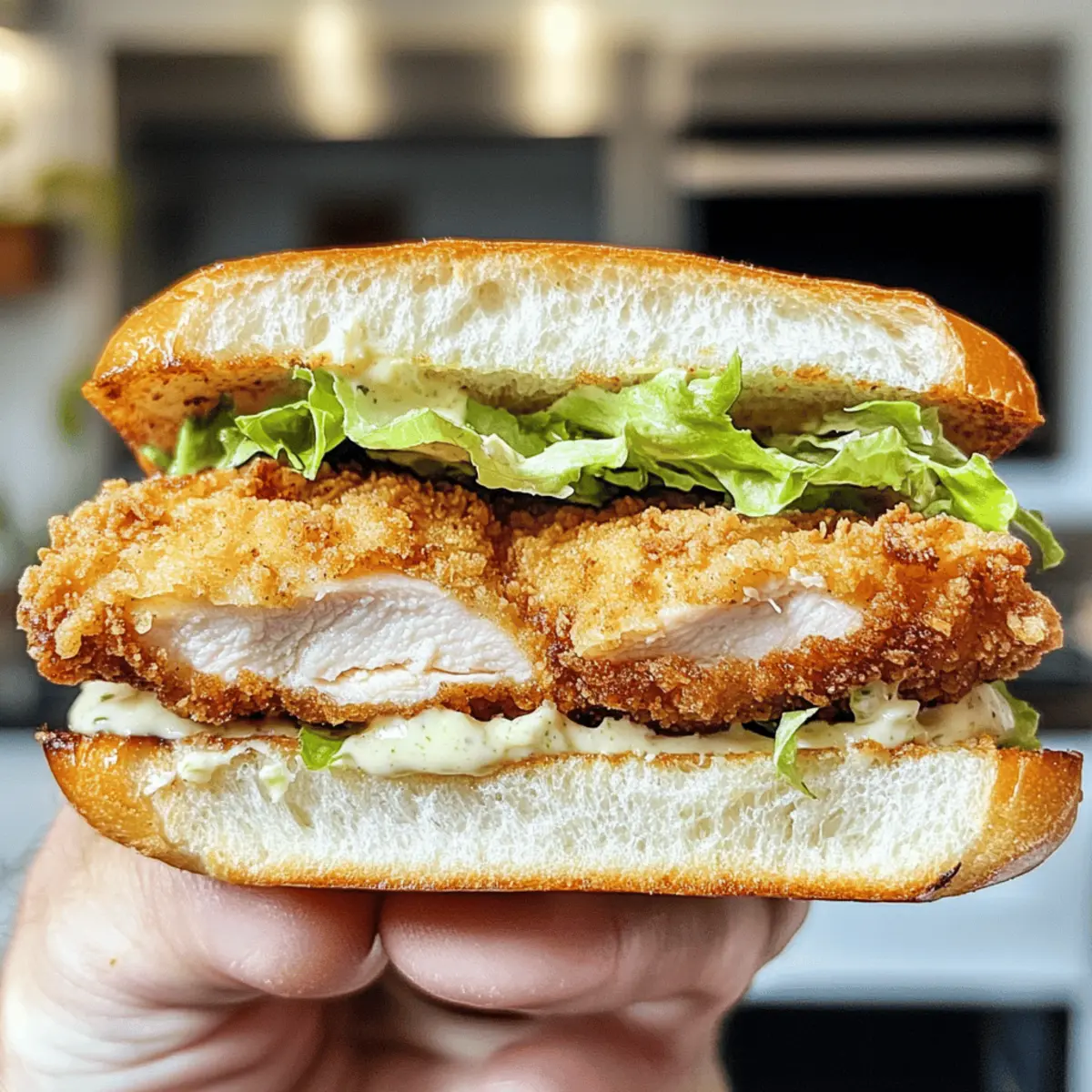 You can almost hear the sizzle as the golden-brown chicken cutlets hit the hot oil, can’t you? That’s the kind of moment that kicks off my Crispy Chicken Caesar Sandwich—a delightfully handheld twist on the classic salad that transforms comfort food into a quick meal. This recipe brings together crunchy, fried chicken, crisp romaine lettuce, and rich Caesar dressing, all snugly packed between crusty baguette slices. Not only is it a scrumptious option for lunch or dinner, but it’s also a fun way to impress guests or enjoy a cozy night in. With minimal prep time and maximum flavor, this sandwich is sure to become a staple in your kitchen. So, who says comfort food can’t be convenient? Are you ready to dive into this delicious creation? Why Choose This Crispy Chicken Sandwich? Deliciously Unique: This Crispy Chicken Caesar Sandwich takes the beloved salad and turns it into a handheld masterpiece that’s as satisfying as it is easy to eat. Quick and Easy: With straightforward instructions, you can whip this up in no time—perfect for those rushed weeknight dinners or spontaneous lunch cravings. Flavor Explosion: The crunchy, golden-fried chicken pairs perfectly with the creamy Caesar dressing and fresh romaine, creating a delightful mélange of tastes you’ll crave again and again. Impressive Presentation: Whether for a family meal or a gathering, this sandwich is sure to be a crowd pleaser—just like my Buffalo Chicken Taquitos! Versatile Options: Feel free to experiment by switching up the bread or adding your choice of cheese. You can even use chicken thighs for a juicier bite, just like in my Hot Honey Chicken for a twist! Healthier Alternative: With the option to make your Caesar dressing using Greek yogurt, you can indulge without the guilt—making this sandwich as nutritious as it is delicious. Crispy Chicken Caesar Sandwich Ingredients For the Dressing Caesar Dressing – Adds creaminess and rich flavor; consider making homemade for freshness. Full-Fat Mayonnaise – Provides a rich base for the dressing; no substitutes are recommended. Greek Yogurt – Adds tanginess and is a lower-calorie alternative to extra mayo; can use sour cream if needed. Dijon Mustard – Offers depth of flavor; replace with yellow mustard if necessary. Worcestershire Sauce – Enhances umami in the dressing; no substitutes suggested. Lemon Juice – Adds acidity for balance; freshly squeezed is best, but bottled works too. Parmesan Cheese (freshly grated) – Brings umami to the dressing; Grana Padano can be used as a milder alternative. Garlic – Contributes pungency to the dressing; garlic powder can substitute if fresh isn’t available. For the Chicken Chicken Cutlets – The main protein; pound to even thickness for consistent cooking; whole breasts can be sliced appropriately. All-Purpose Flour – Used for dredging the chicken to help the breading stick; gluten-free flour can substitute. Panko Crumbs – Provides extra crunch; while regular breadcrumbs can work, they won’t be as crispy. Eggs – Binds the breading mixture to the chicken; no direct substitutes are mentioned. For the Sandwich Romaine Hearts – Adds freshness and crunch; iceberg lettuce can be used if preferred. French Baguettes – The bread base is crucial for texture; ciabatta or sourdough are great alternatives. Feel free to get creative with these ingredients to craft your very own Crispy Chicken Caesar Sandwich masterpiece! Step‑by‑Step Instructions for Crispy Chicken Caesar Sandwich Step 1: Prepare Caesar Dressing In a mixing bowl, combine full-fat mayonnaise, Greek yogurt, Dijon mustard, Worcestershire sauce, freshly squeezed lemon juice, grated Parmesan cheese, and minced garlic. Whisk until the mixture is creamy and well-blended, ensuring smooth consistency. Reserve a portion of this dressing to toss with chopped romaine lettuce later. This creamy dressing will create a rich and flavorful layer in your Crispy Chicken Caesar Sandwich. Step 2: Prep the Chicken Pound chicken cutlets to an even thickness of about 1/2 inch, which ensures they cook evenly. Season both sides generously with salt and pepper to enhance flavor. This step is crucial for creating juicy, well-seasoned fried chicken that will be the star of your Crispy Chicken Caesar Sandwich. Set the seasoned cutlets aside while you prepare the breading station. Step 3: Breading Station Setup Set up your breading station with three shallow bowls. In the first bowl, place all-purpose flour seasoned with salt and pepper. In the second bowl, whisk together eggs until well-beaten. In the third bowl, add panko breadcrumbs for that irresistible crunch. Organizing your station efficiently will make the process smooth as you coat the chicken cutlets for frying. Step 4: Cook the Chicken Heat about 1/2 inch of oil in a large skillet over medium-high heat until it shimmers, around 350°F (175°C). Dredge each chicken cutlet in flour, shaking off excess, then dip it into the beaten eggs, followed by pressing it into panko breadcrumbs for a generous coating. Carefully place the breaded cutlets in the hot oil and fry for 4-5 minutes on each side, or until they turn golden brown. Drain the cooked chicken on a wire rack to retain crispness. Step 5: Assemble Sandwich Slice your French baguettes in half horizontally. Spread the reserved Caesar dressing generously on both sides of the bread to amplify the flavor. Begin layering by placing the crispy chicken cutlet on the bottom half, topped with a handful of the perfectly dressed romaine salad. Sprinkle extra grated Parmesan cheese over the salad for added texture and flavor, then cap it with the top half of the baguette. Step 6: Serve Immediately Once assembled, serve these Crispy Chicken Caesar Sandwiches immediately while the chicken is still warm and crispy. Enjoy them fresh to savor the delightful contrast of textures: crunchy chicken, creamy dressing, and crisp lettuce, all encased in the crusty baguette. Perfec